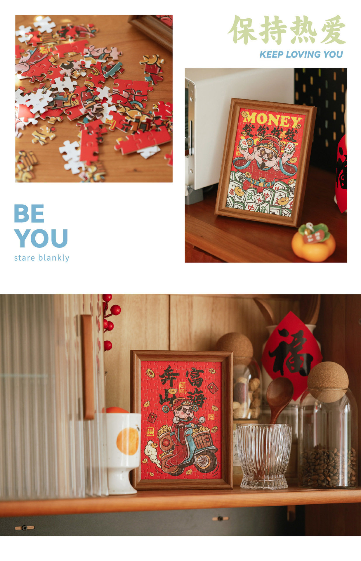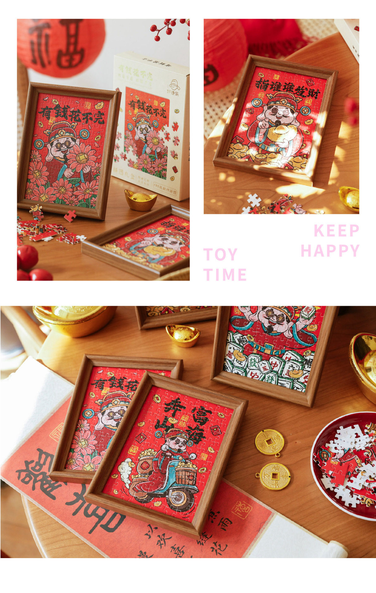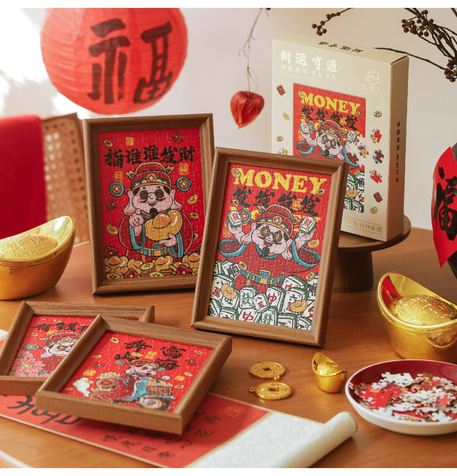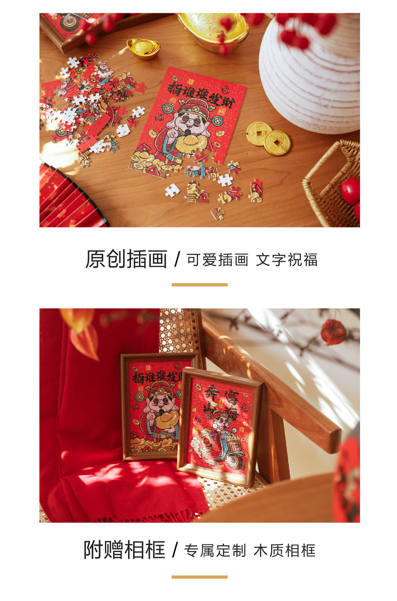 God of Wealth Jigsaw Puzzle Photo Frame 108 New Year Spring Festival Gift Framed Picture Frame Desktop Room Decoration Table