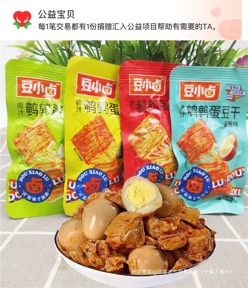 | Packaging specifications | Bean braised quail dried tofu flavor mixed flavor*250g,Bean braised quail dried tofu flavor mix*500,Bean braised quail dried tofu with five flavors*500g,Bean braised quail dried tofu spicy flavor*500g,Bean braised quail egg dried tofu sauce scent*500g,Bean braised quail dried tofu barbecue flavor*500g,Bean braised quail dried tofu flavor mix*1000g,Bean braised quail dried tofu spicy*1000g,Bean braised quail eggs with dried beans and five flavors*1000g,Bean braised quail egg dried tofu bbq flavor*1000g,Bean braised quail egg dried tofu sauce scent*1000g,Bean braised quail egg dried tofu flavor mix*1500g,Bean braised quail dried tofu spicy flavor*1500g,Bean braised quail eggs with dried beans and five flavors*1500g,Bean braised quail egg dried tofu bbq flavor*1500g,Bean braised quail egg dried tofu sauce scent*1500g,Bean braised quail egg dried tofu flavor mix*2000g,Bean braised quail egg dried tofu flavor mix*2500g |