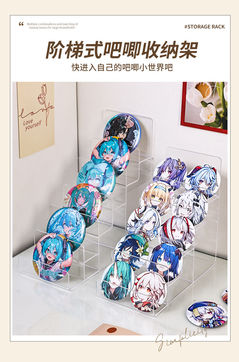 Acrylic Yum Display Rack Desktop Transparent Brand Millet Storage Rack Ladder Shelf Peripheral Badge Storage Rack