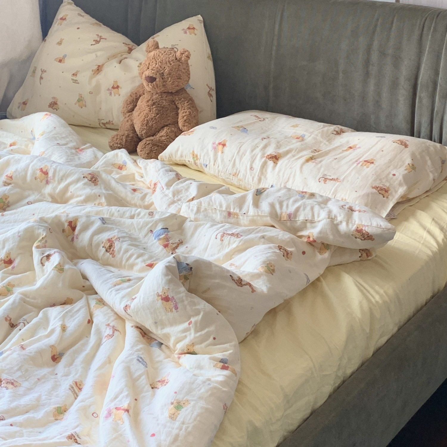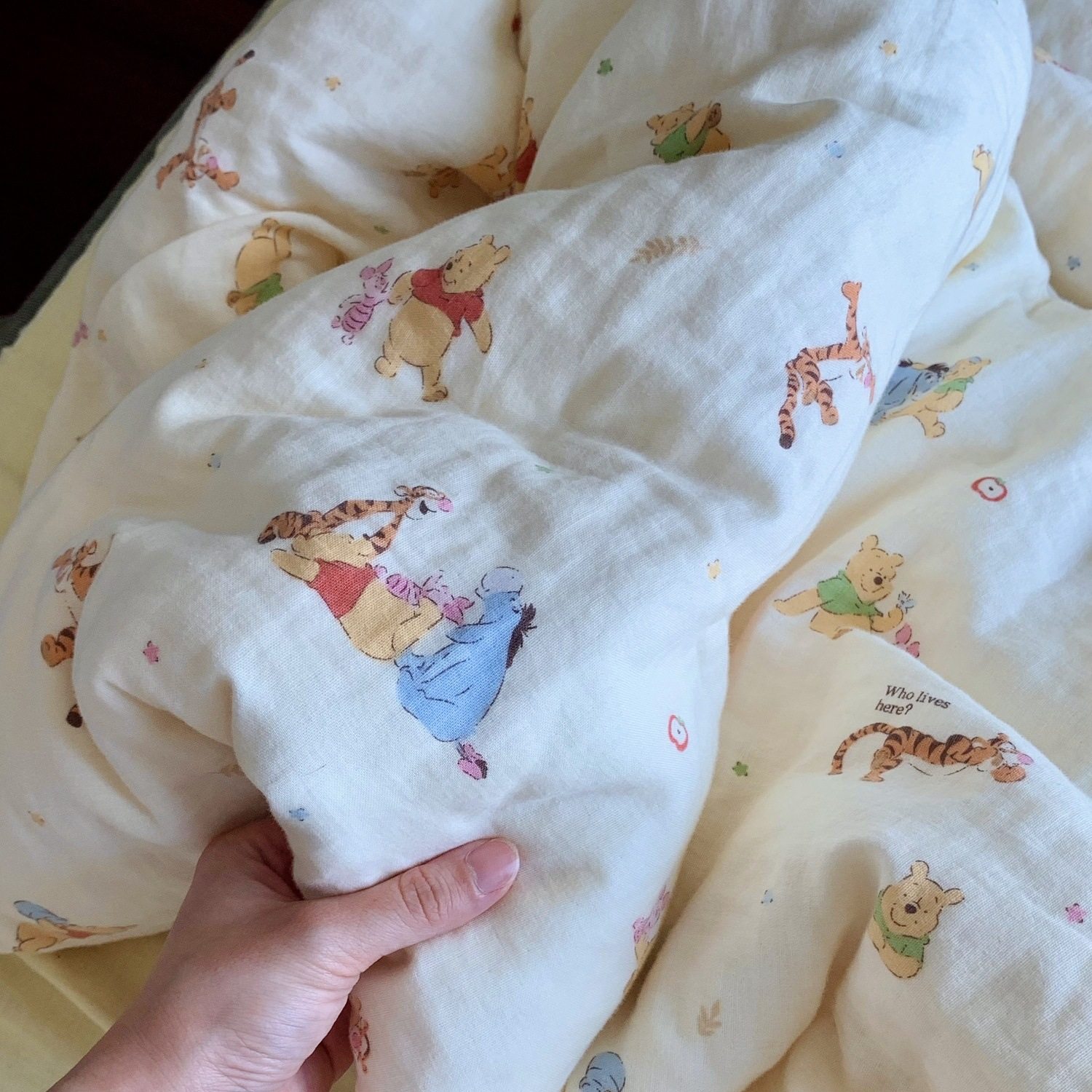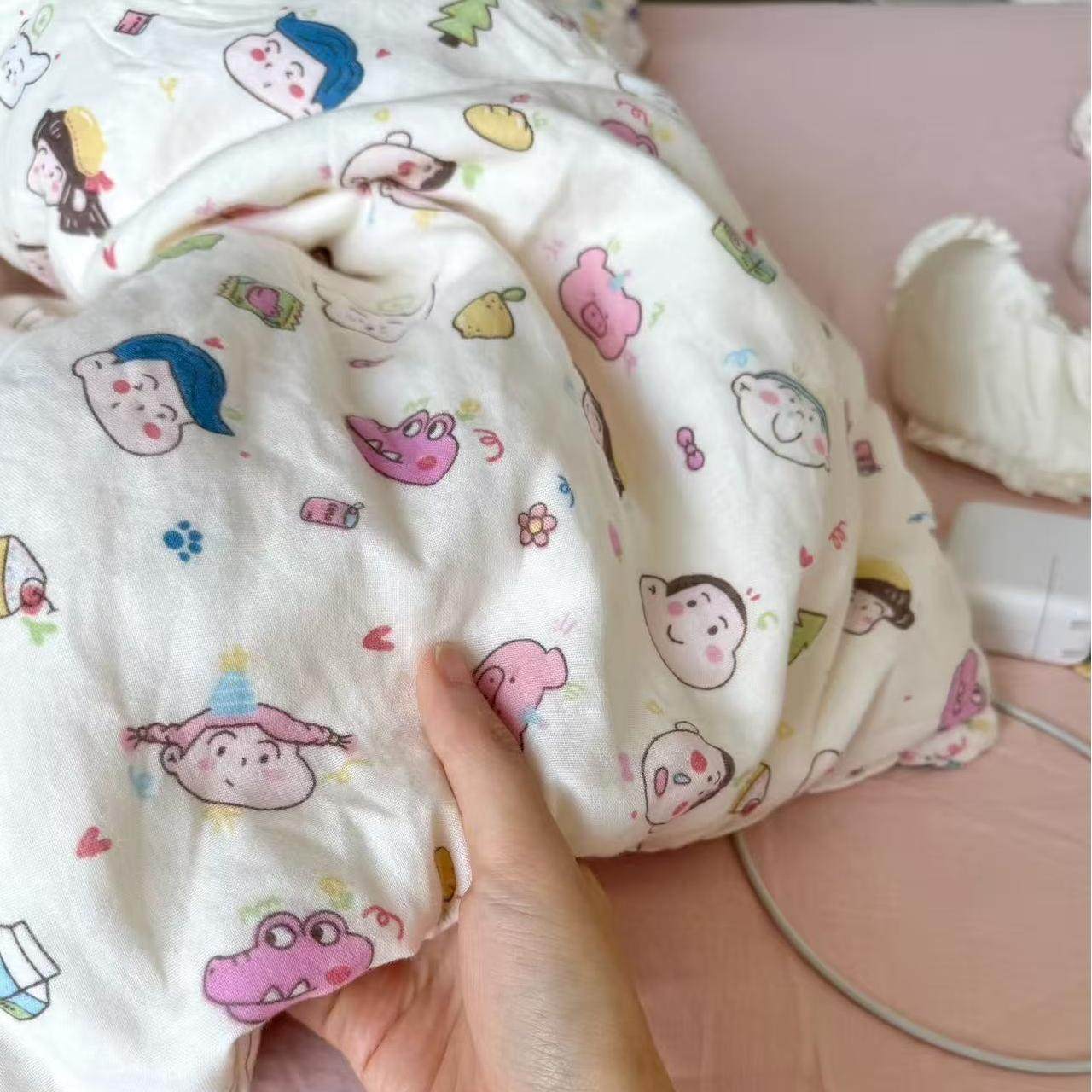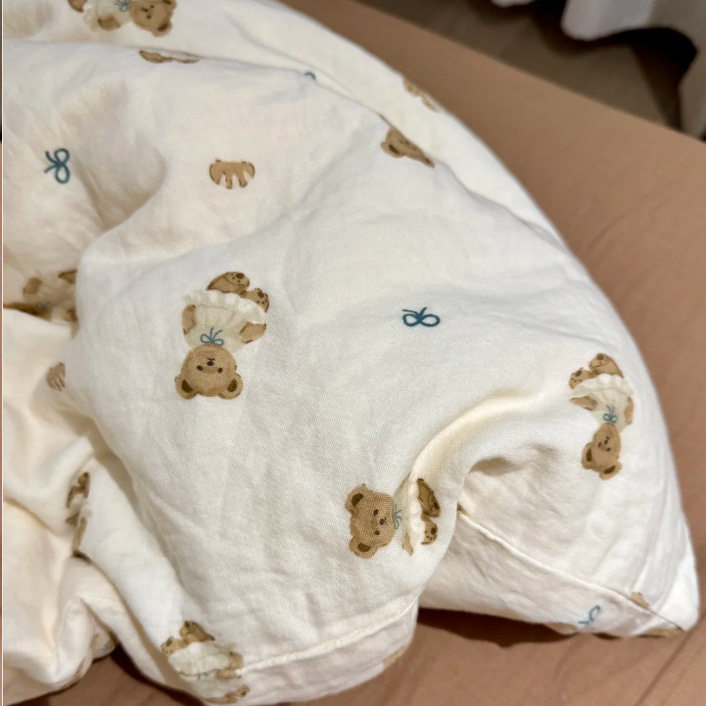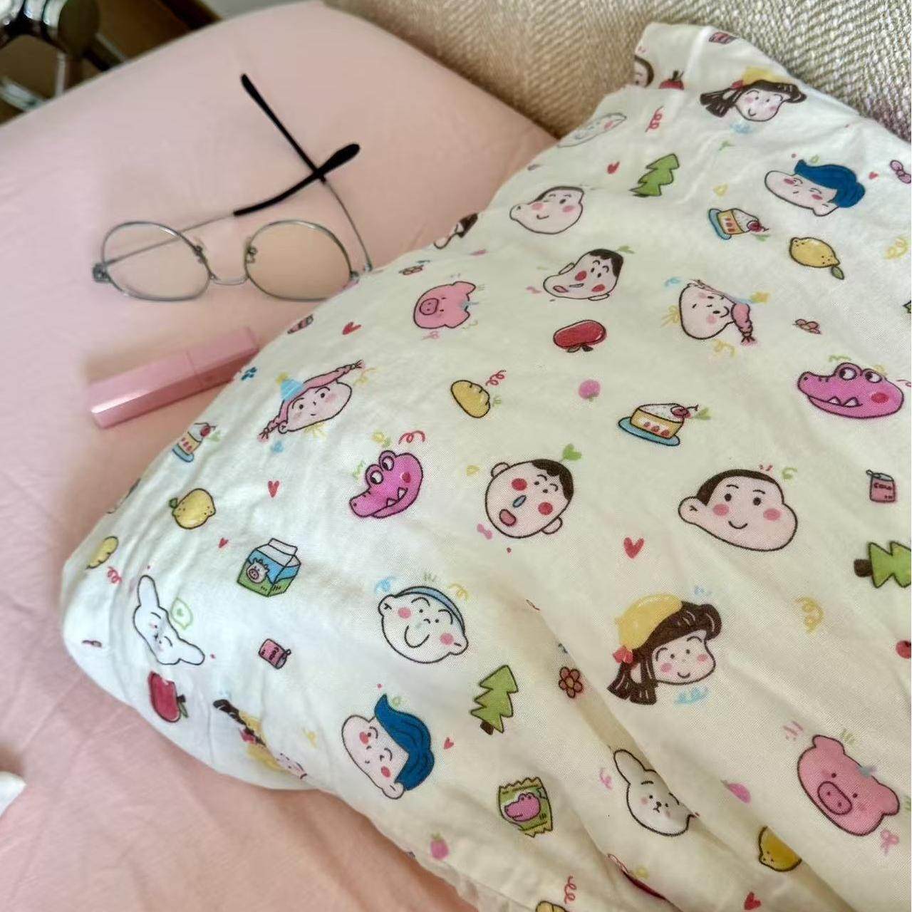 Class a Maternal and Infant-Grade Pure Cotton Double-Layer Gauze Four-Piece Set, Pure Cotton Gauze Dormitory Three-Piece Set, Skin-Friendly, Breathable, Cartoon Print
