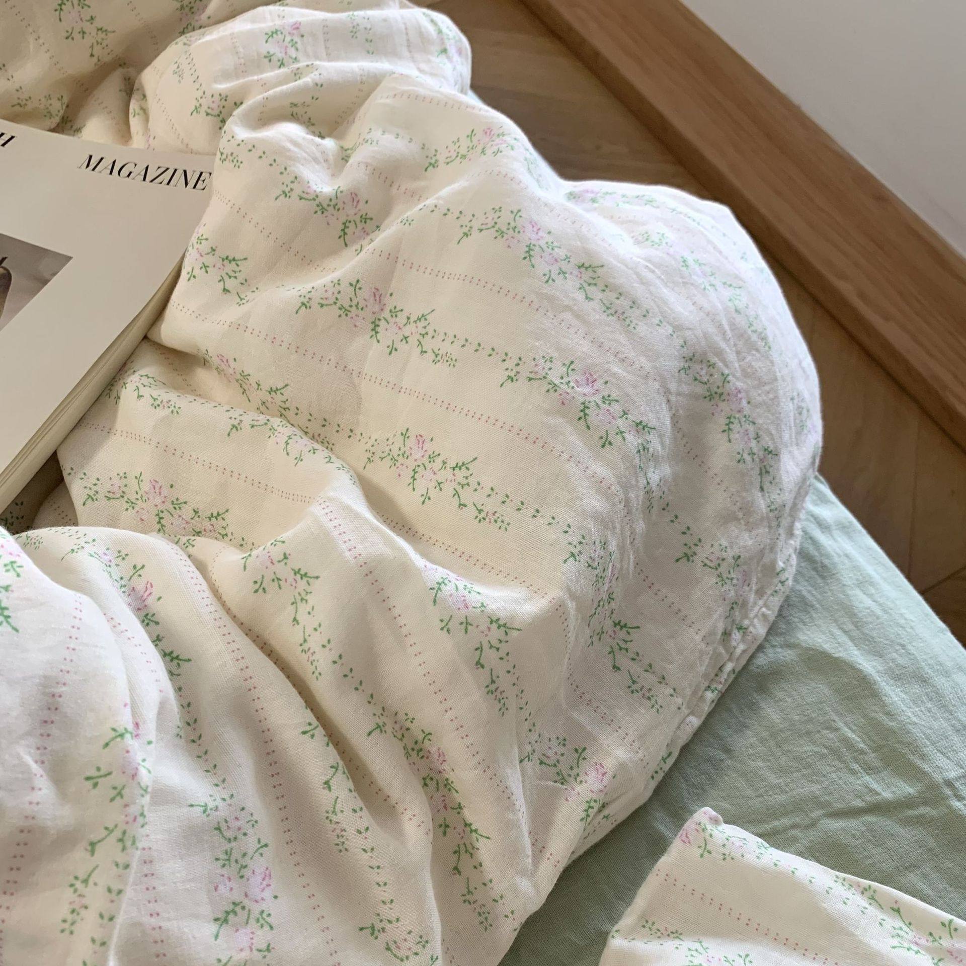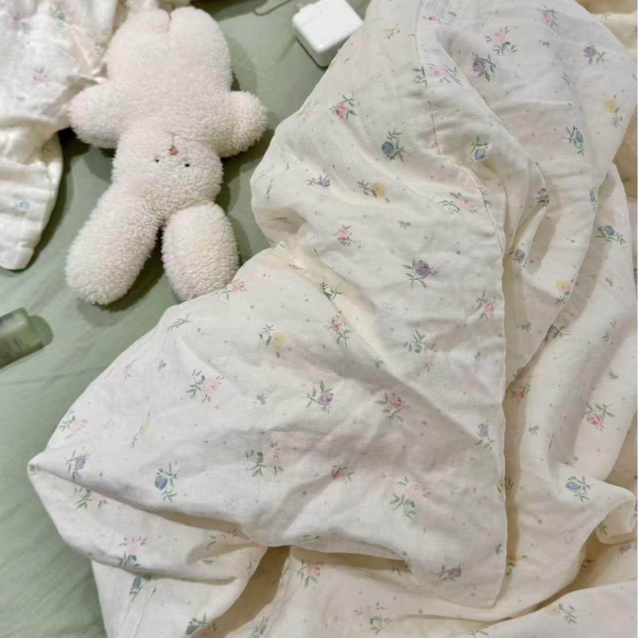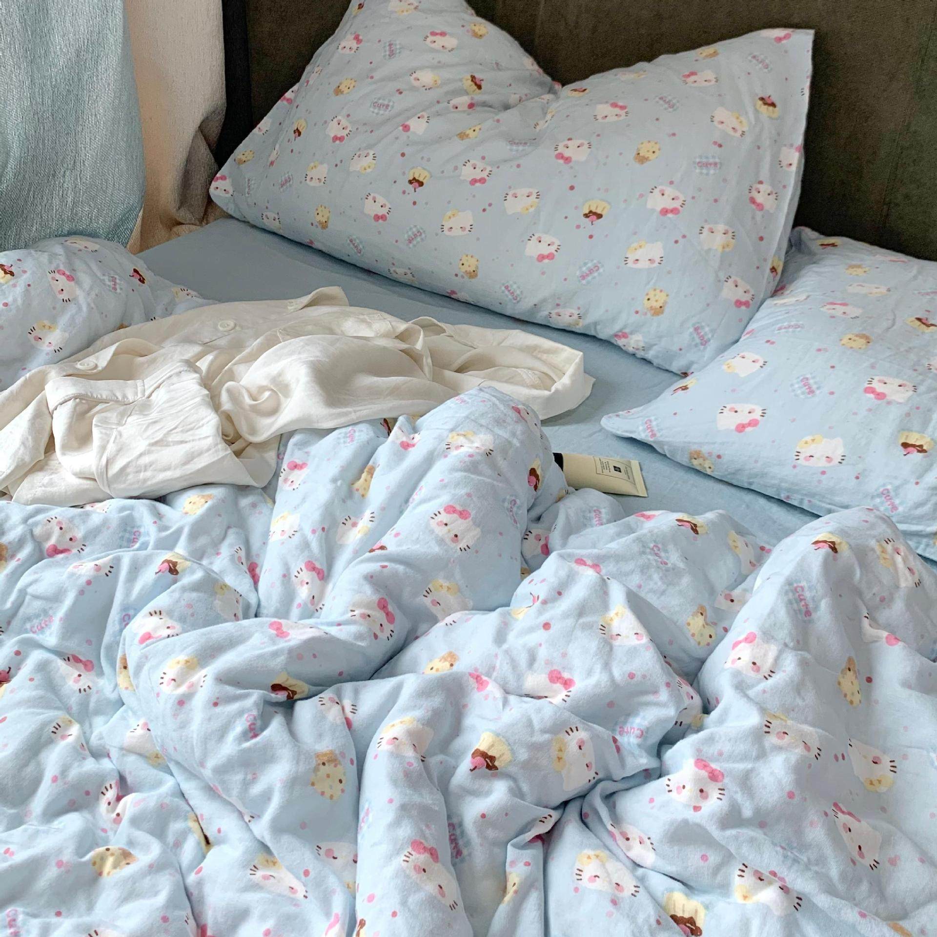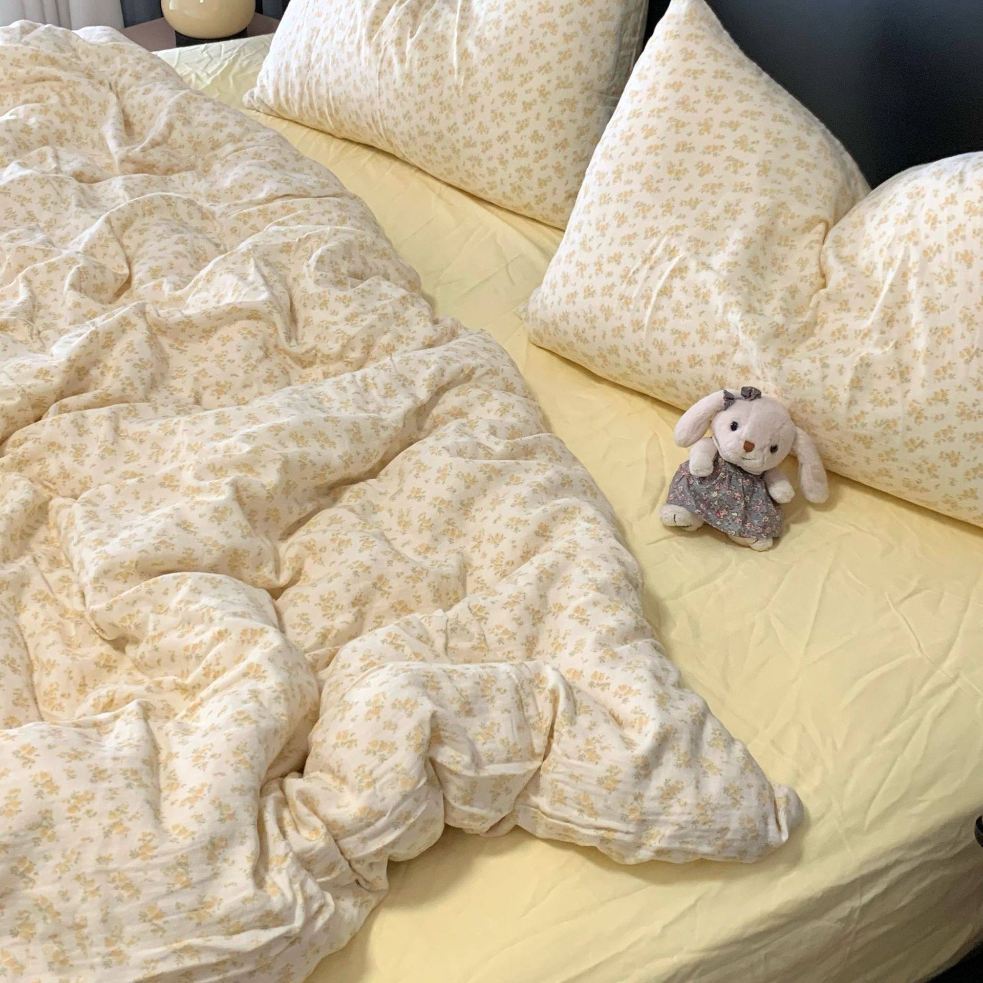 Class a Maternal and Infant-Grade Pure Cotton Double-Layer Gauze Four-Piece Set, Pure Cotton Gauze Dormitory Three-Piece Set, Skin-Friendly, Breathable, Cartoon Print