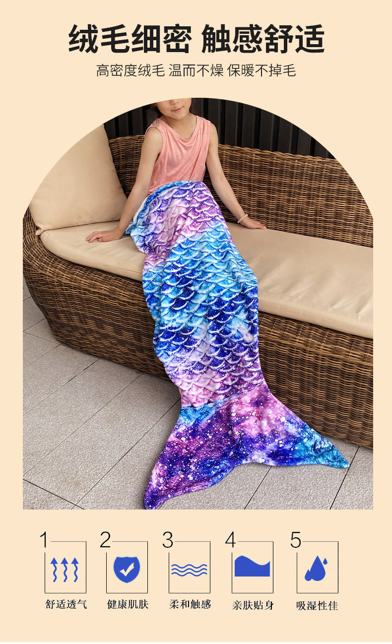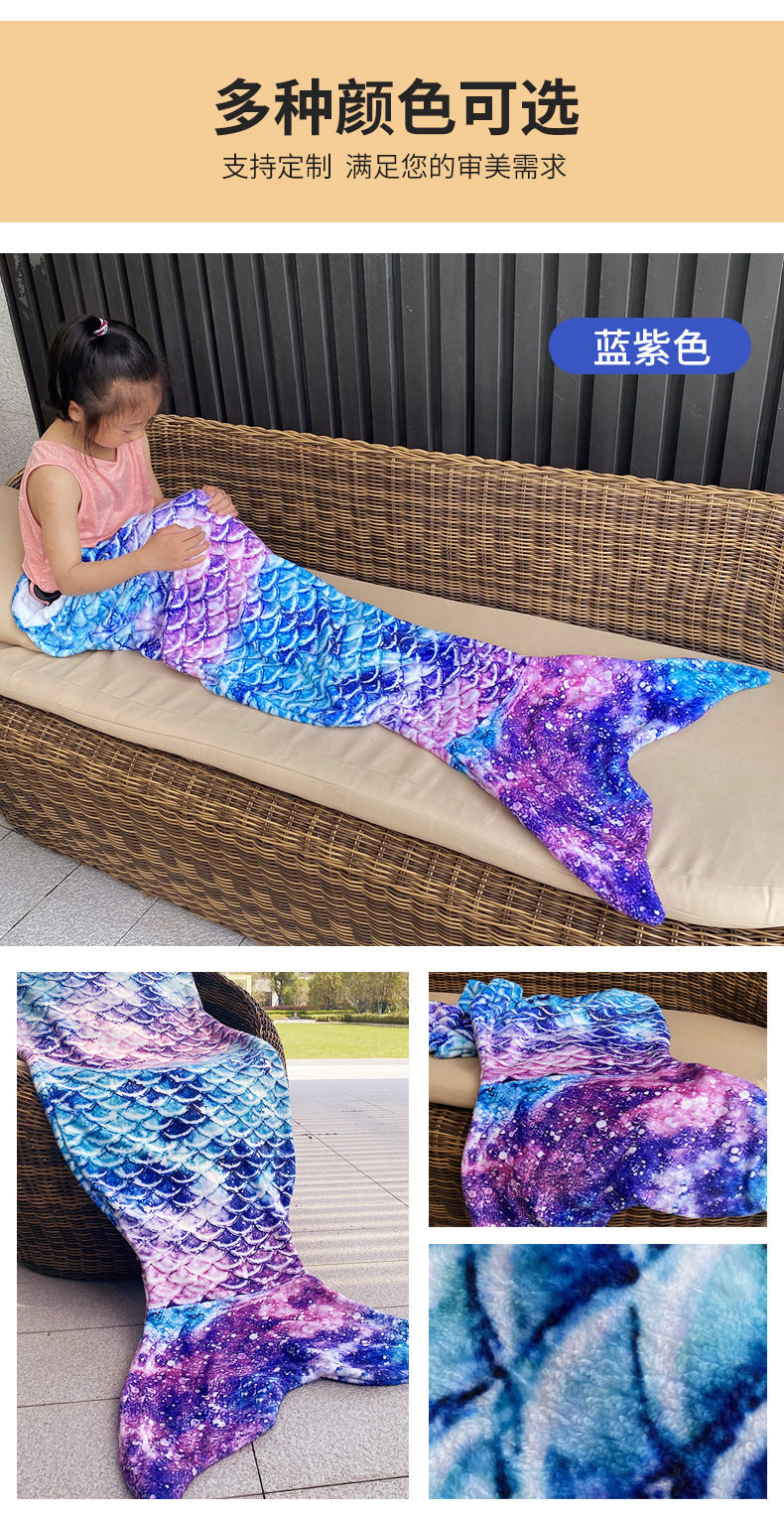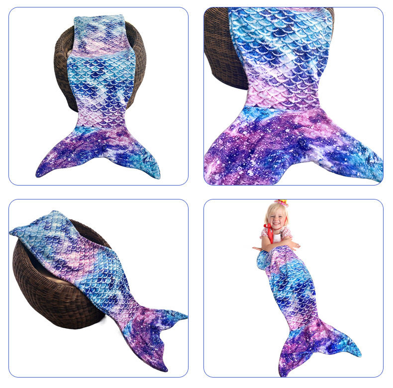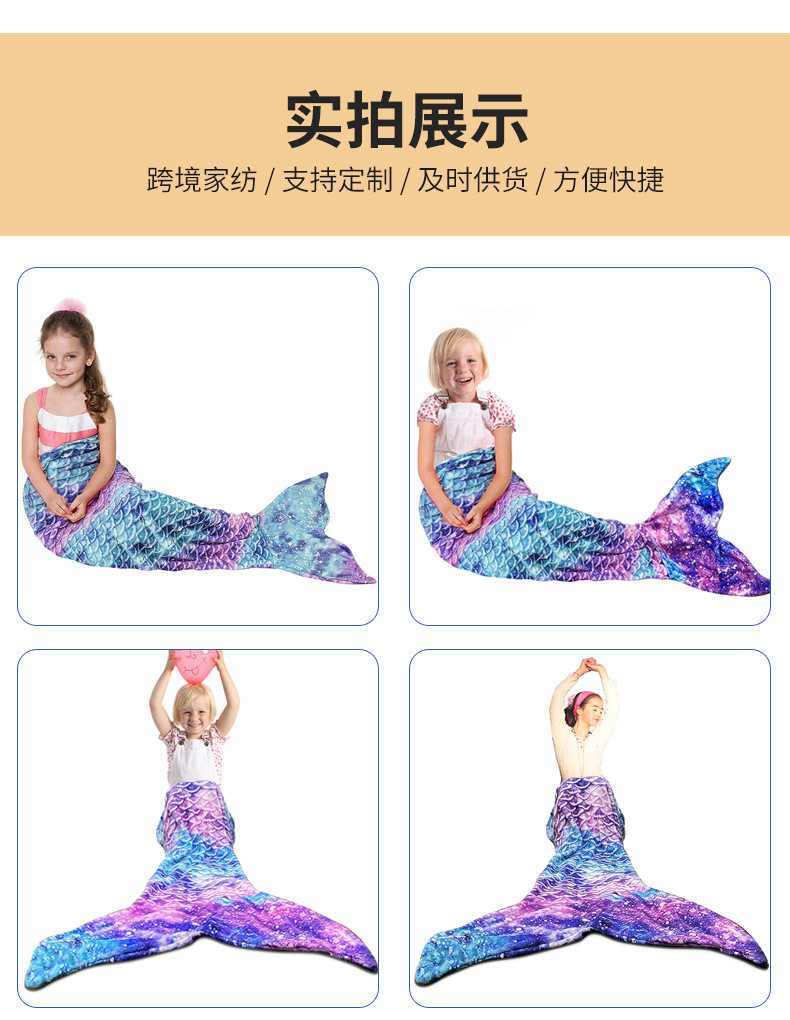 Factory wholesale mermaid tail children's sleeping bag mermaid blanket baby kick-proof flannel children's blanket