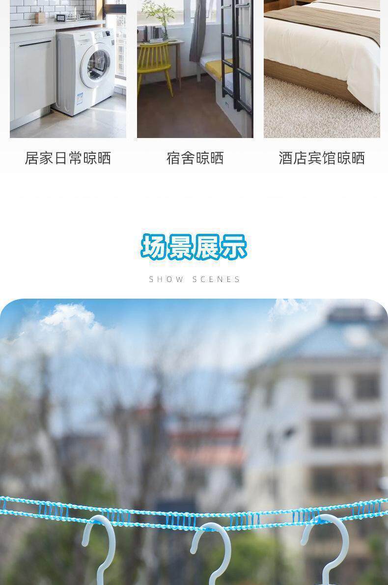Thick clothesline indoor and outdoor non-perforated sandal line windproof non-slip drying clothes rope drying quilt wear-resistant