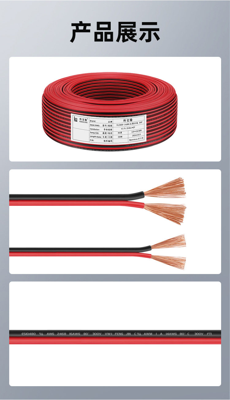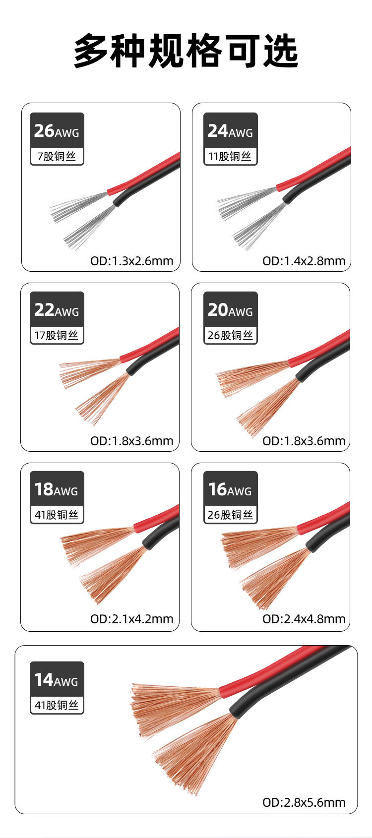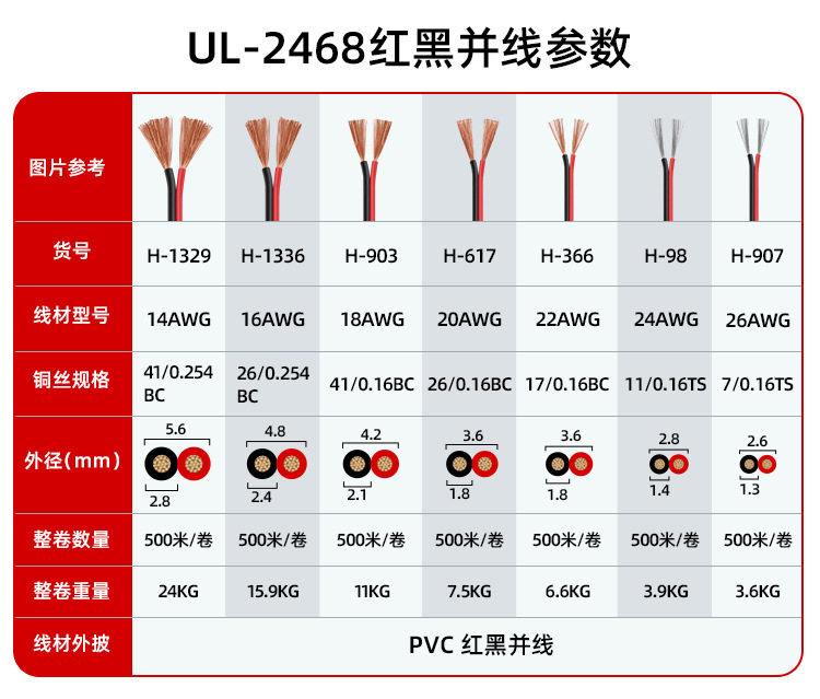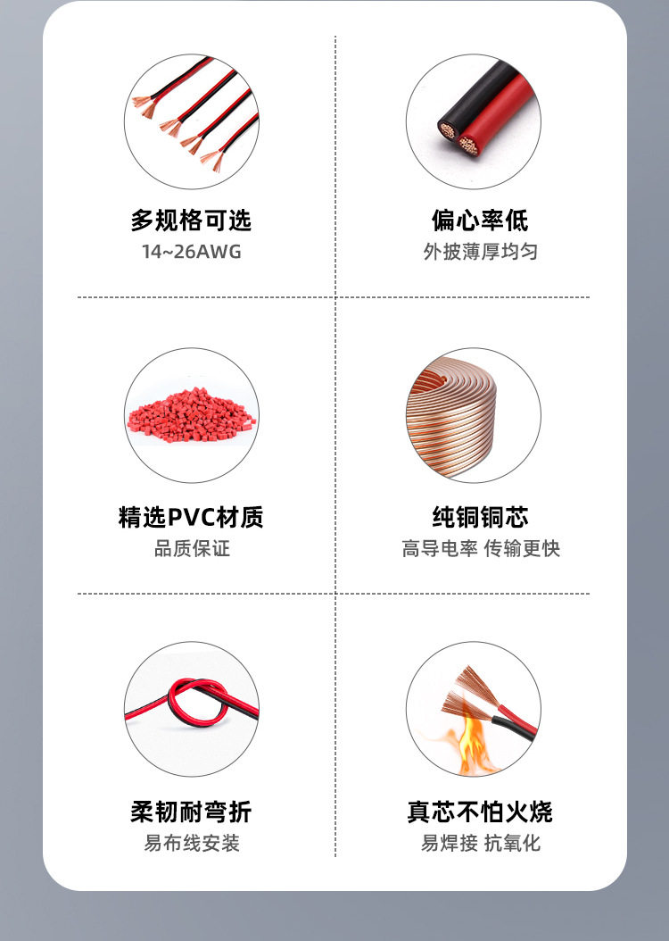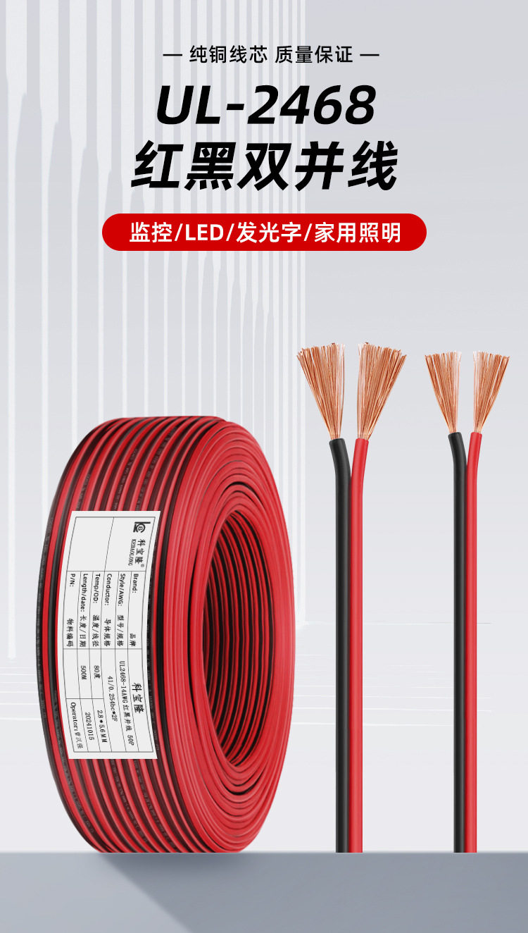Wholesale standard UL2468 red and black cable 14 16 18 20 22 24 26AWG parallel double parallel electronic cable