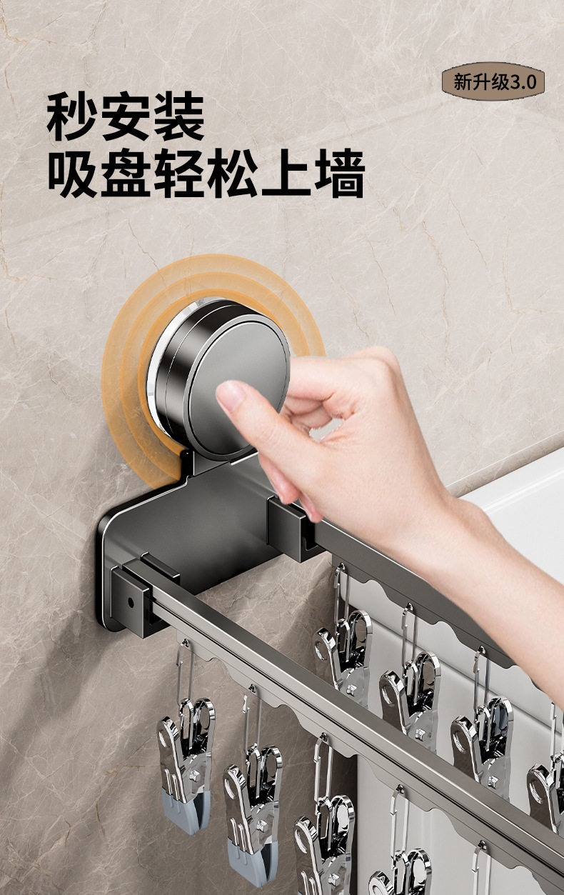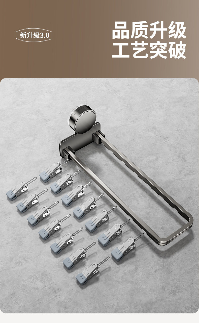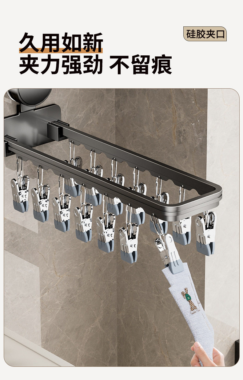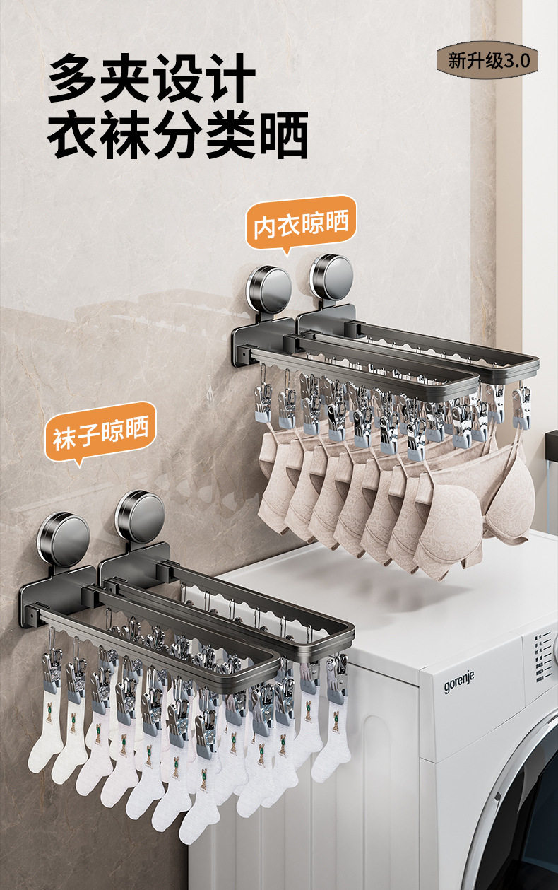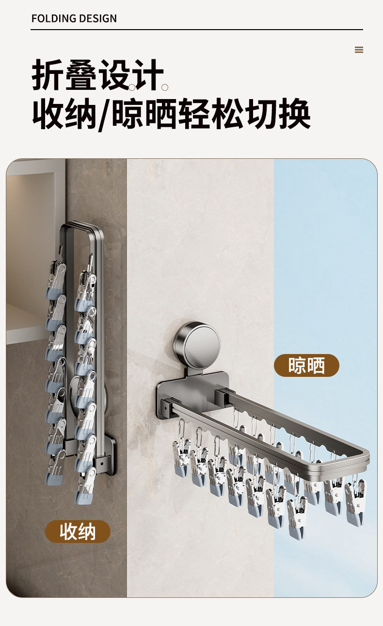 Folding Sucker Drying Rack Multi-clip Household Balcony Non-perforated Wall Hanging Inner Clothes Socks Clip Drying Rack Artifact