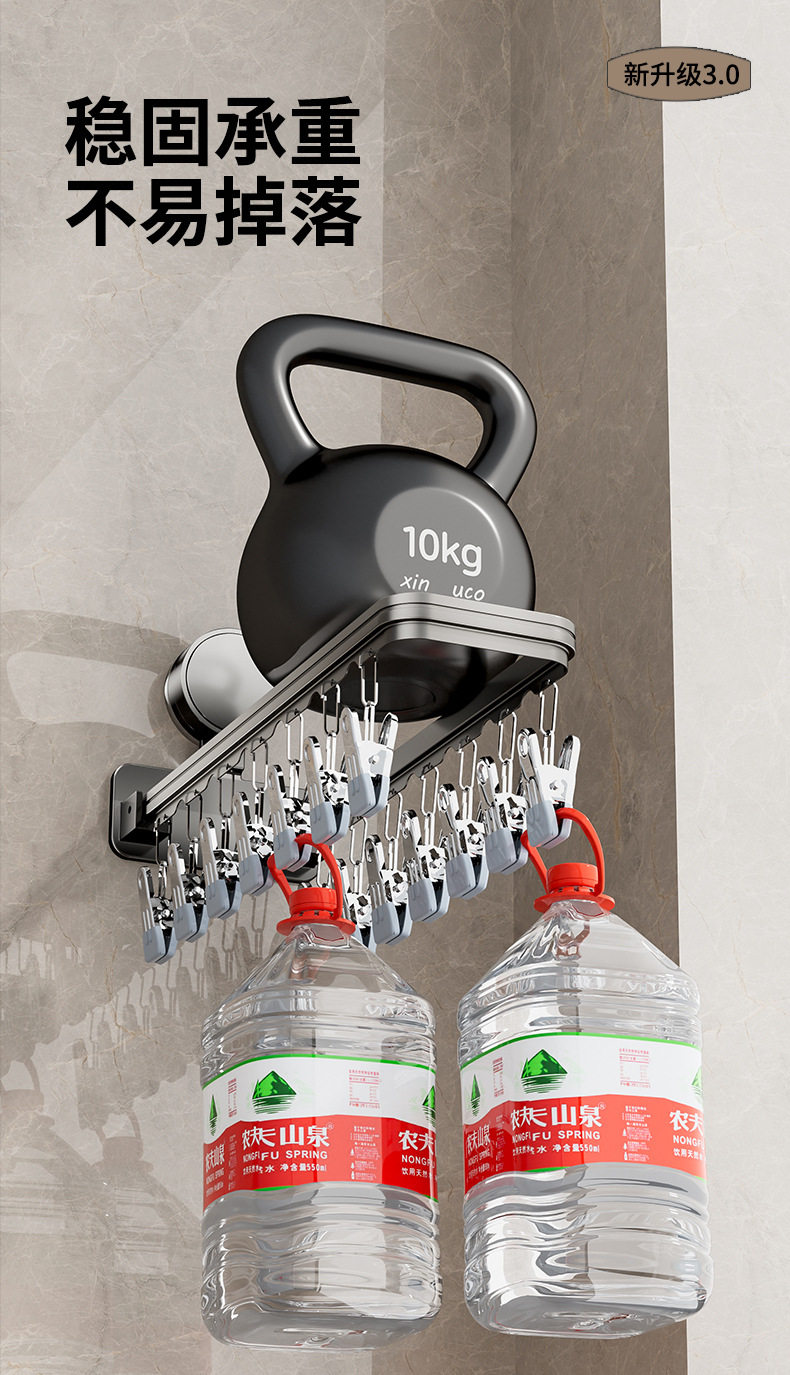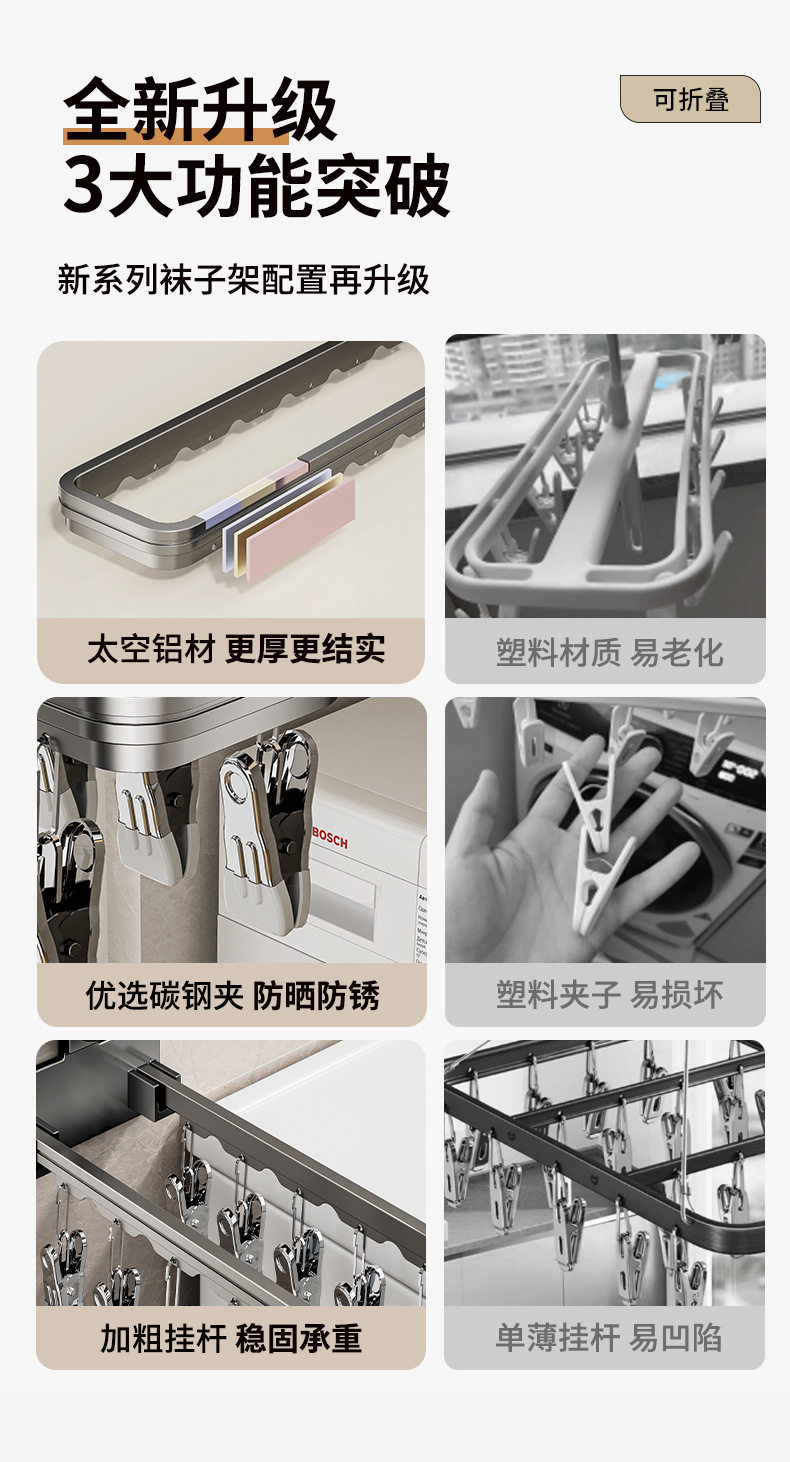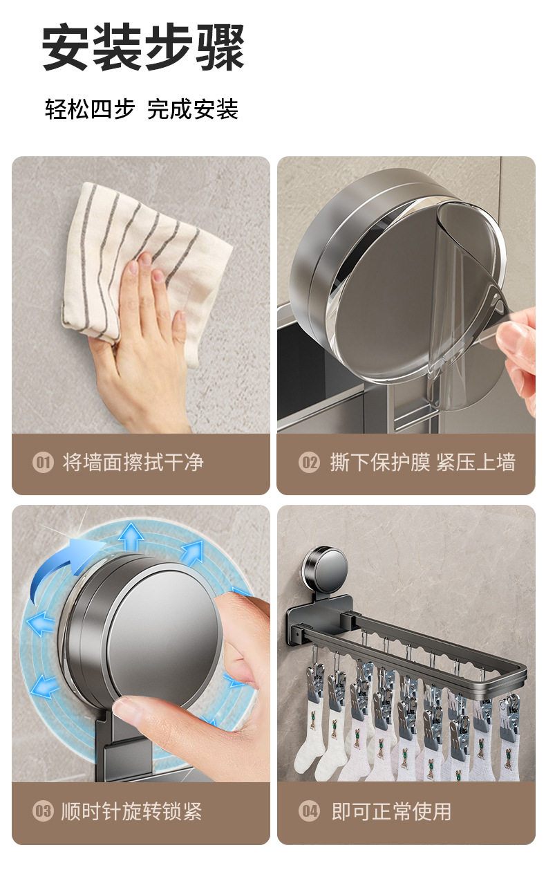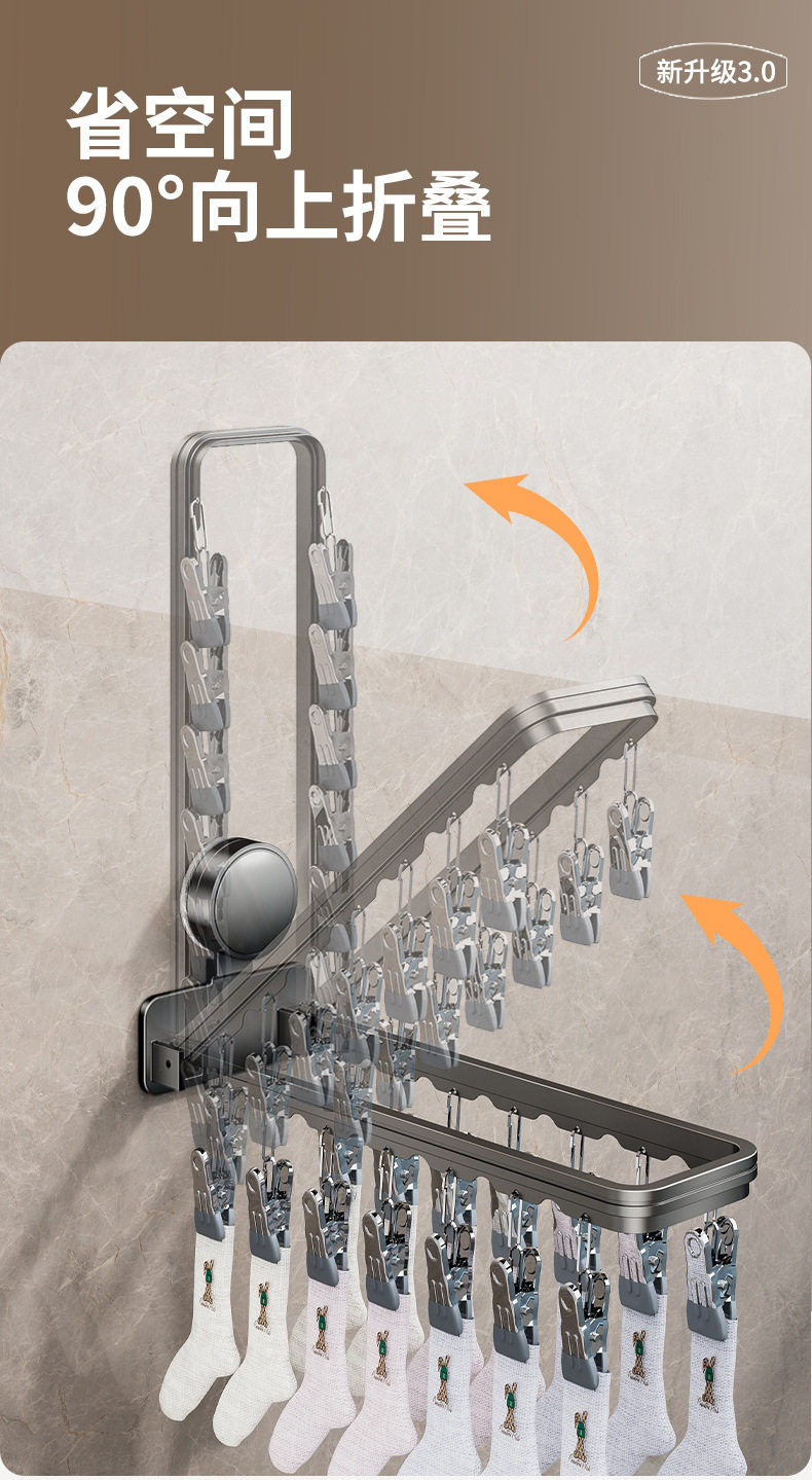 Folding Sucker Drying Rack Multi-clip Household Balcony Non-perforated Wall Hanging Inner Clothes Socks Clip Drying Rack Artifact