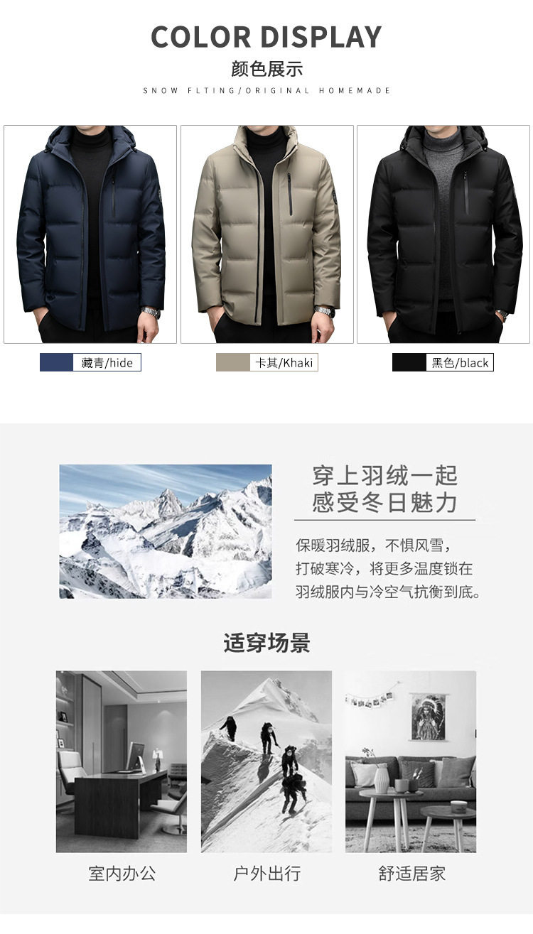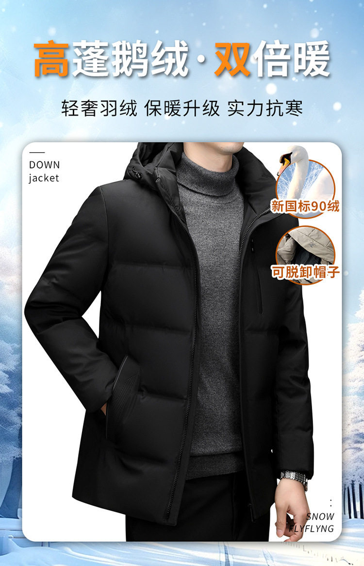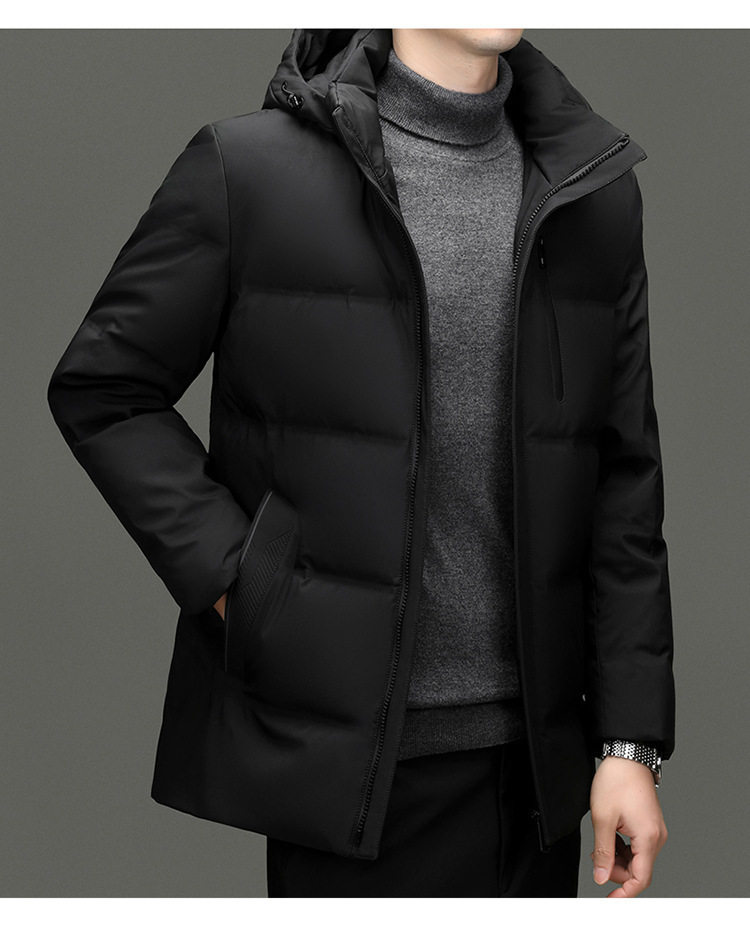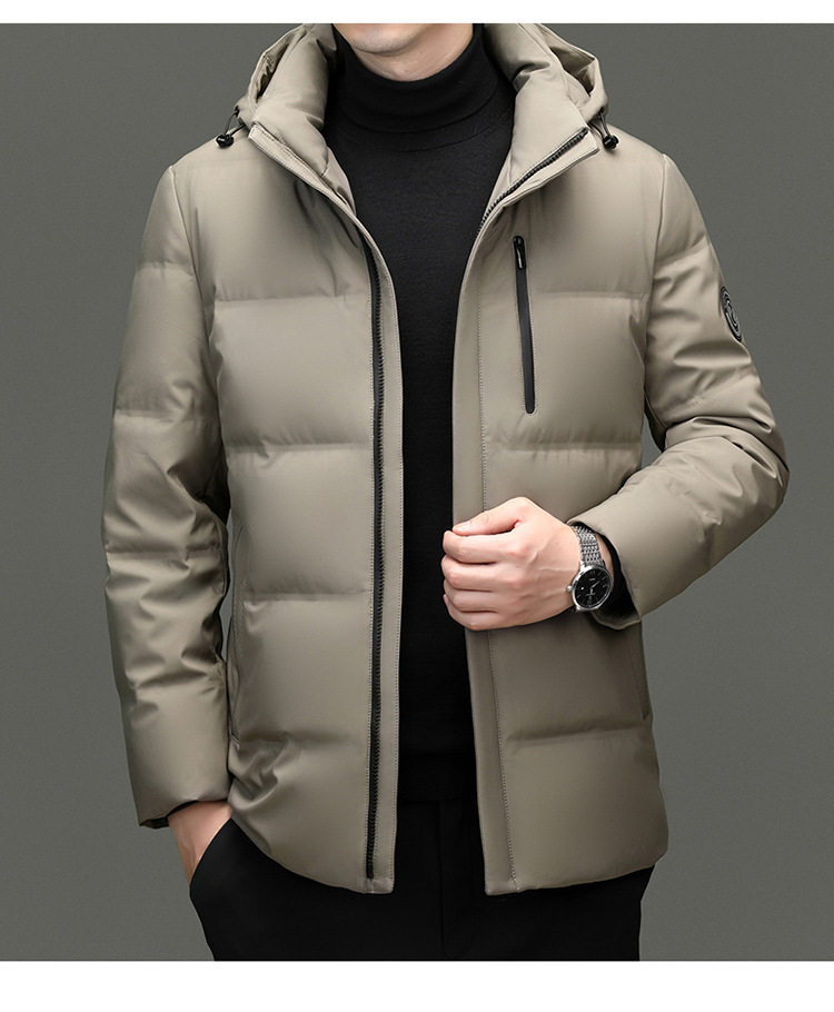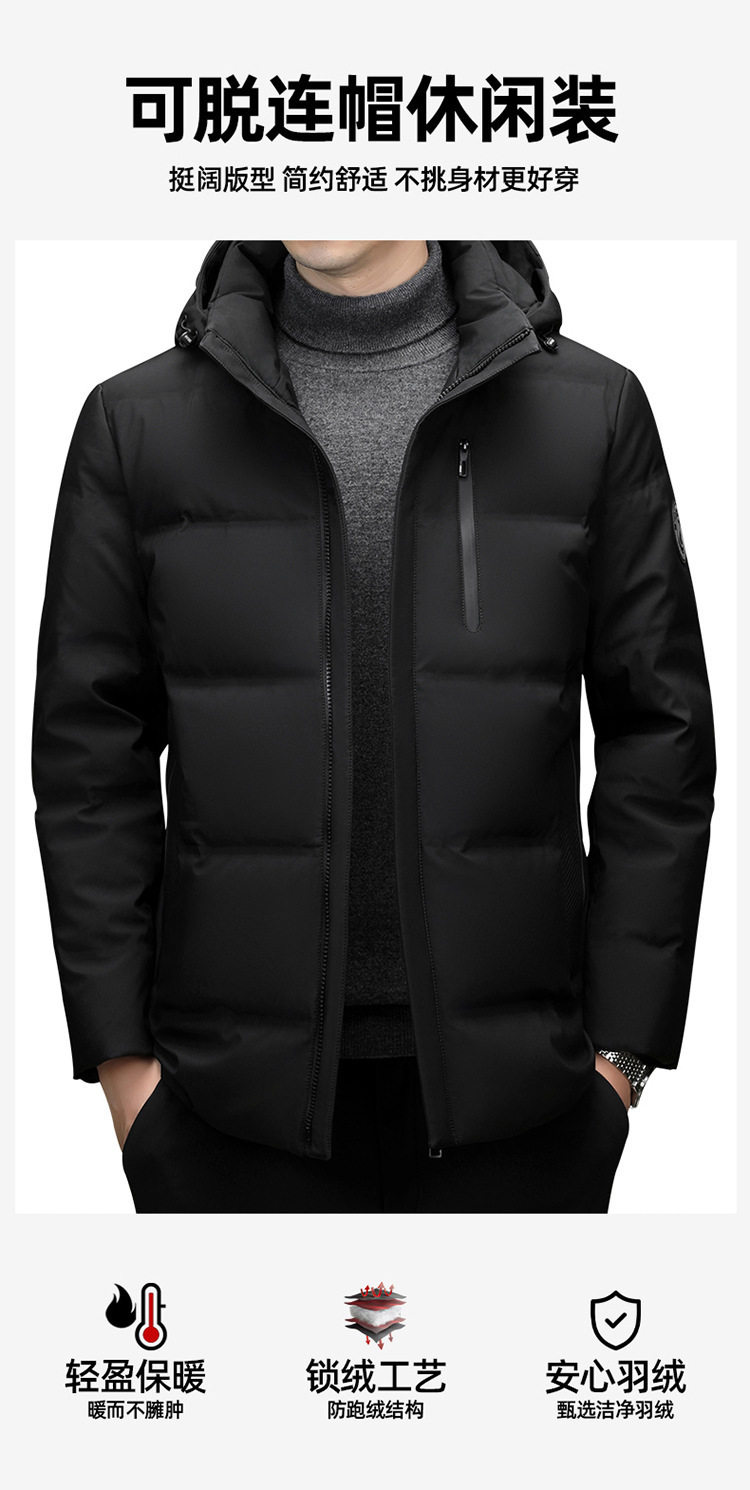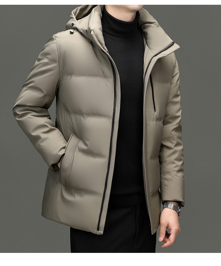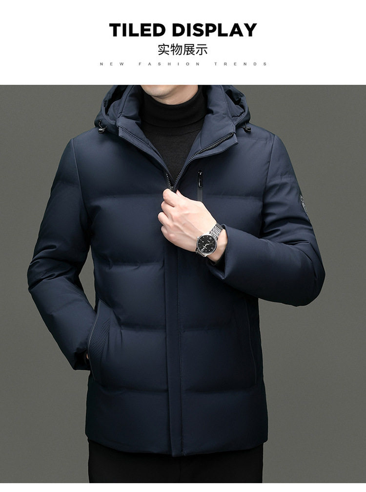 High-End Goose down Jacket for Men, Winter 2025 New Style, Business Casual Hooded Warm Coat for Middle-Aged Dads