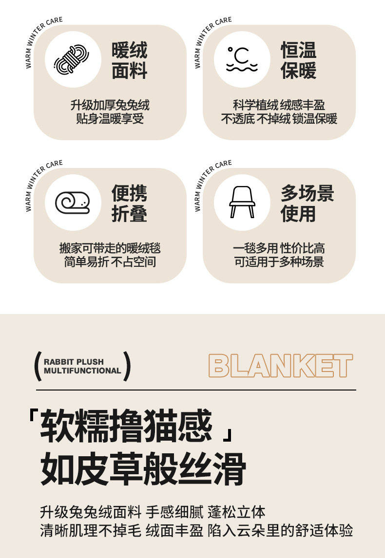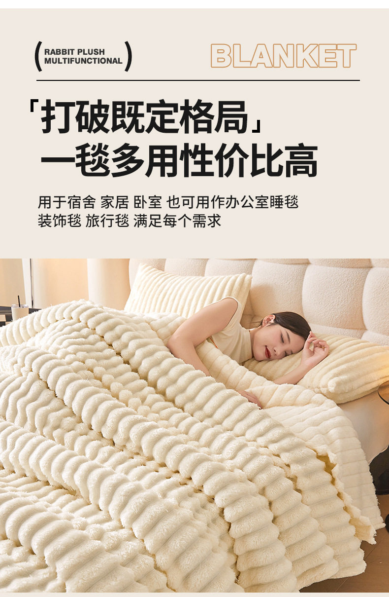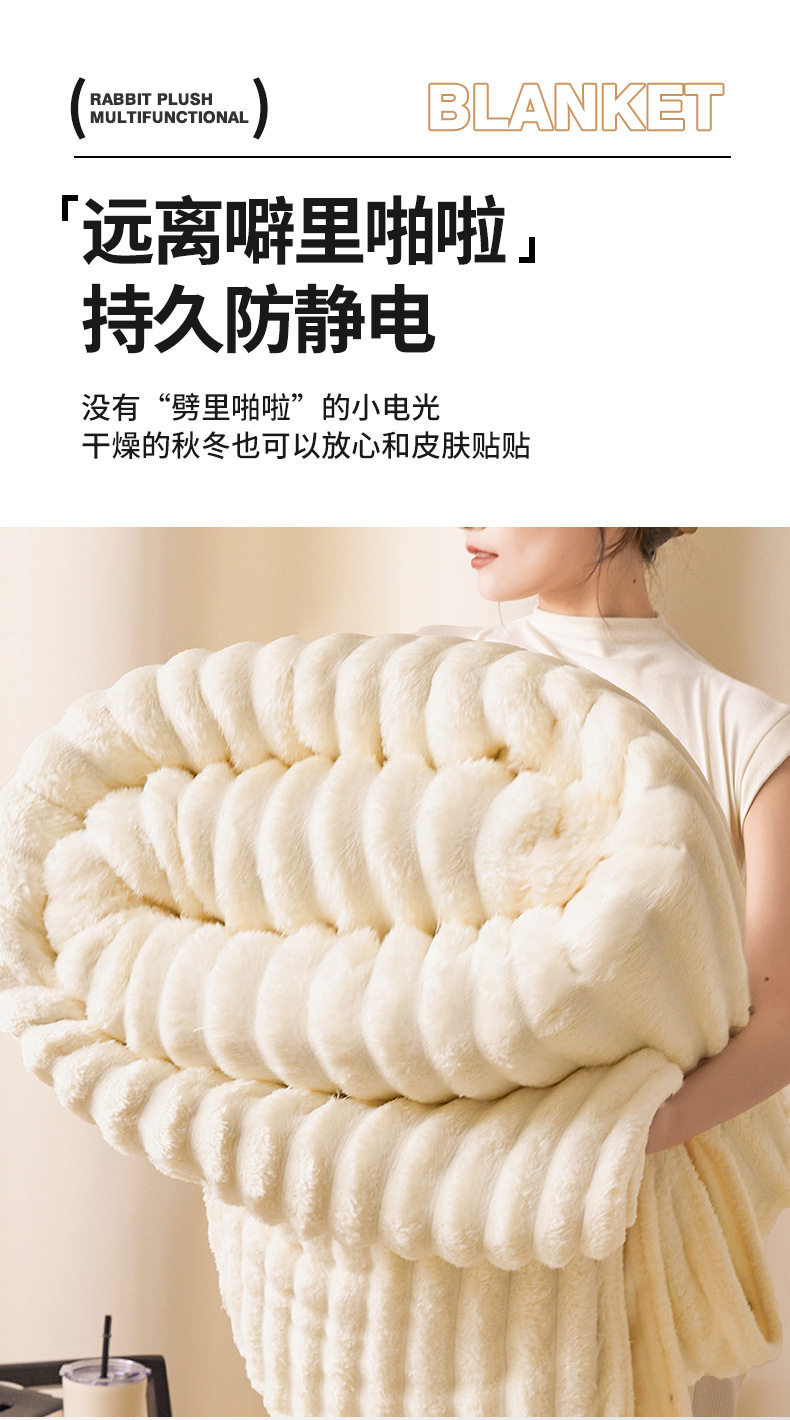 2025 New Rabbit Plush Blanket Nap Office Blanket Winter Thickened Coral Fleece Air-conditioning Quilt Sofa Blanket