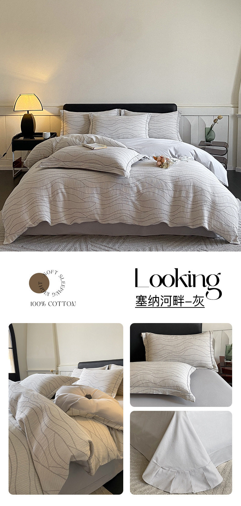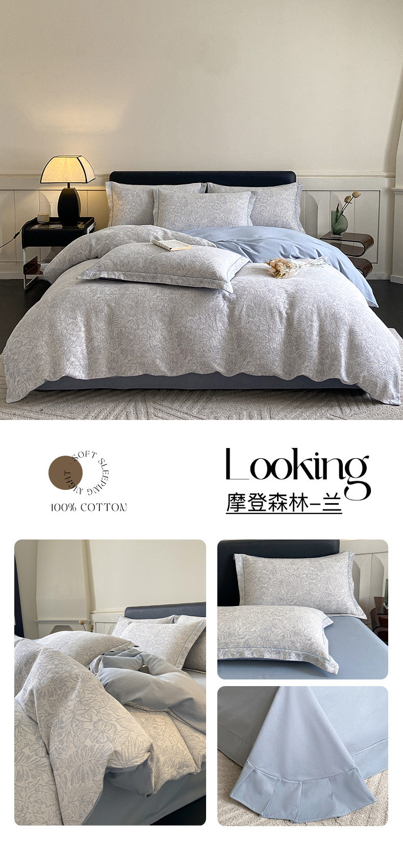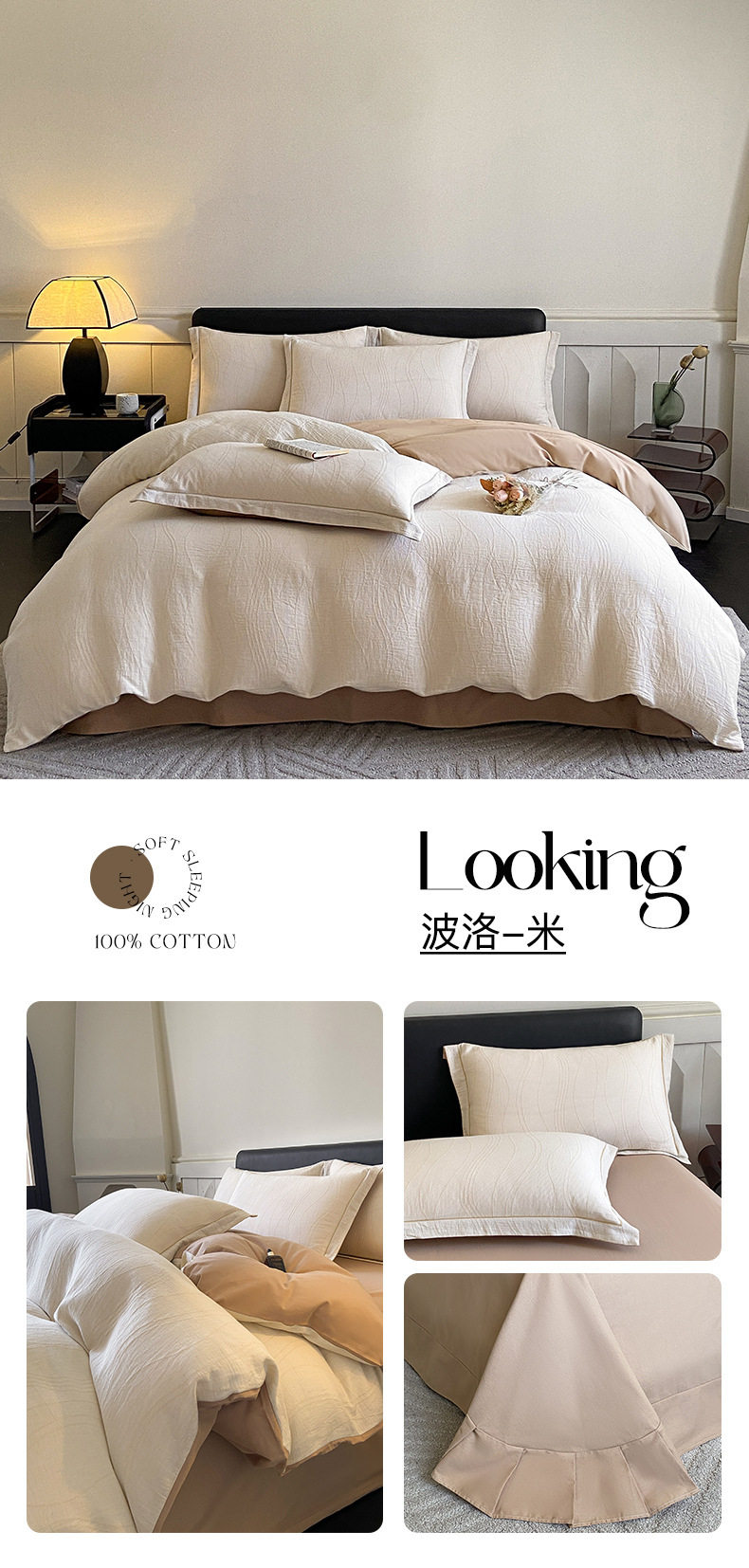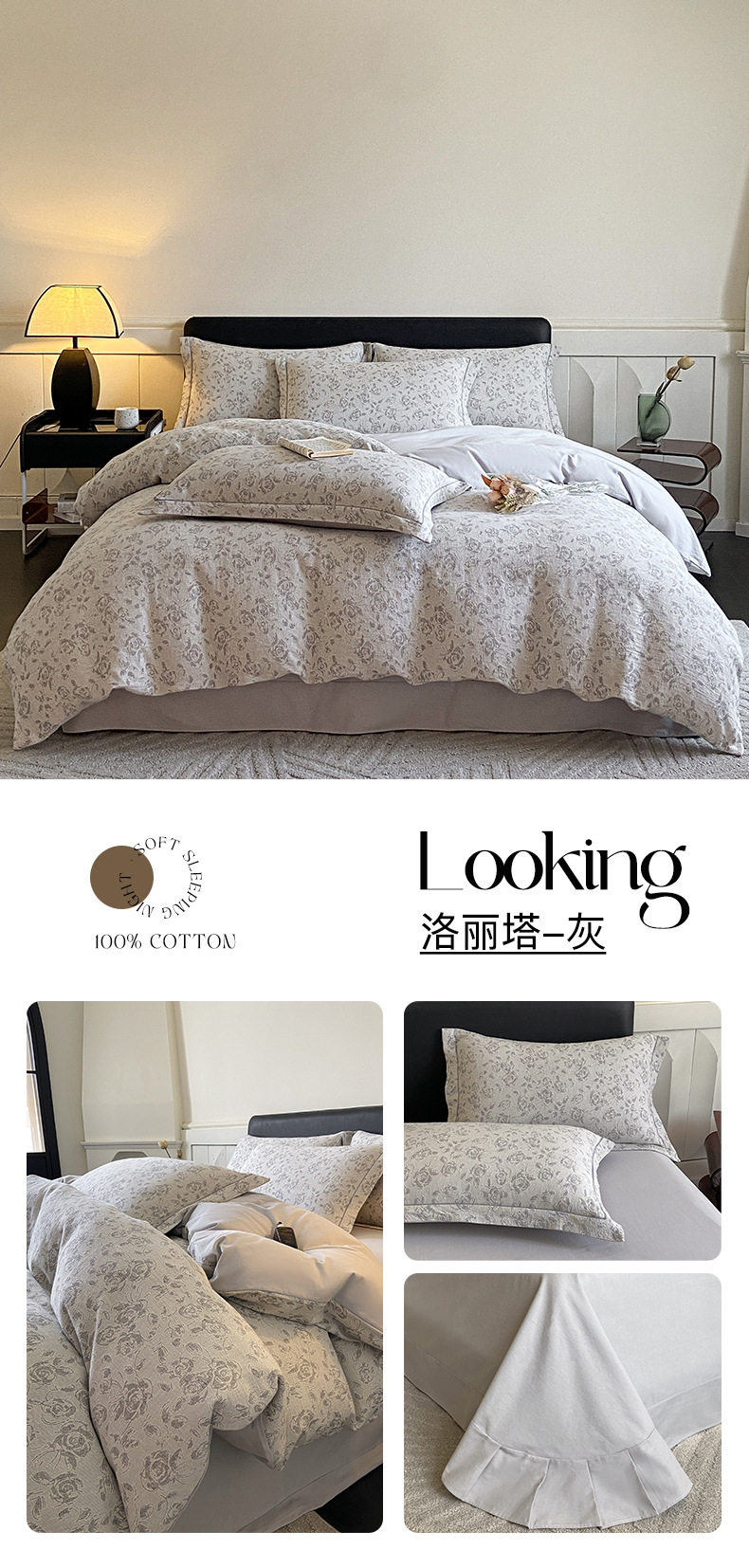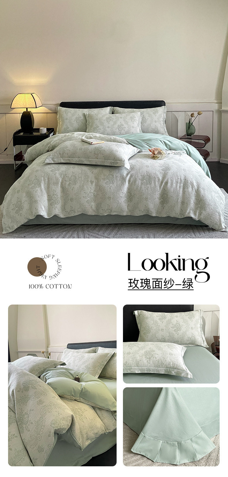 Light Luxury Class A High-grade Pure Cotton Three-layer Yarn Sanding Bed Four-piece Set Cotton Bed Sheet Quilt Cover Three-piece Set Bedding 4