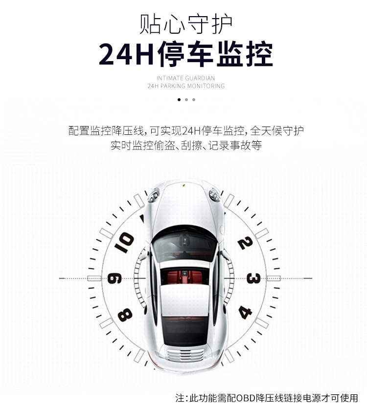 | Function | Reversing image,Loop recording,Parking monitoring,Night vision fill light,Night vision enhancement,Frame distortion correction,Front and rear recording |
