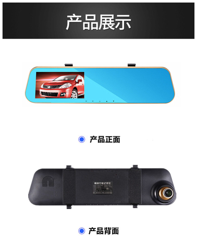 | Color classification | 4.3inch dual record without card,4.3inch dual recording + 16g high speed card,4.3inch dual recording + 32g high speed card |