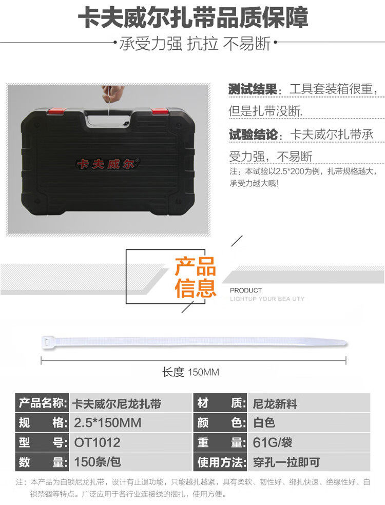 | Specification model | White [2.5x80mm] 100 pieces ot3121; default item,White [2.5x100mm] 100 pieces ot3057; default item,White [2.5x150mm] 100 pieces ot3059; default item,White [2.5x150mm] 150 pieces ot3059; default item,White [2.5*150mm] 150 pieces ot1012g; default item,White [2.5x200mm] 100 pieces ot2913; default item,White [2.5x300mm] 100 pieces ot3314; default item,White [2.7x250] 100 pieces ot3031g; default item,White [3.6x100mm] 100 pieces ot3061; default item,White [3.6x150mm] 100 pieces ot2999; default item,White [3.6x200mm] 100 pieces ot1018g; default item,White [3.6x250mm] 100 pieces ot2903; default item,White [3.6x300mm] 100 pieces ot1016g; default item,White [3.6x350mm] 100 pieces ot3316; default item,White [4.0x250] 200 pieces ot1014g; default item,White [4.8x200mm] 50 pieces ot3033g; default item,White [4.8x250mm] 50 pieces ot3035g; default item,White [4.8x300mm] 50 pieces ot3037g; default item,White [4.8x400mm] 50 pieces ot3123; default item,White [4.8x450mm] 50 pieces ot3039g; default item,White [4.8x500mm] 50 pieces ot3125; default item,White [4.8x550mm] 50 pieces ot3185; default item,White [5.0*350mm] 100 pieces ot1019g; default item,White [7.6x250mm] 50 pieces ot3041g; default item,White [7.6x300mm] 50 pieces ot3187; default item,White [7.6x350mm] 50-pack ot2798g; default item,White [7.6x400mm] 50 pieces ot3043g; default item,White [7.6x450mm] 50 pieces ot3318; default item,White [7.6x500mm] 50-pack ot2711g; default item,White [7.6x550mm] 50 pieces ot3320; default item,White [7.6x600mm] 50 pieces ot3189; default item,White [8.8x500mm] 50-pack ot2800g; default item,White [8.8x600mm] 50 pieces ot3191; default item,White [8.8x700mm] 30 pieces ot3322; default item,White [8.8x750mm] 30-pack ot2802g; default item,White [8.8x800mm] 30 pieces ot3324; default item,White [9x1000mm] 30-pack ot2788; default item,White [12.4x600mm] 30 pieces ot3045g; default item,White [12.4x800mm] 20 pieces ot3326; default item,White [12.4x1000mm] 20 pieces ot3328; default item,White [2.5*150mm] 500 pieces ot5159; default item,White [2.5*200mm] 500 pieces ot5160; default item,White [3.6*200mm] 500 pieces ot5161; default item,White [3.6*250mm] 500 pieces ot5162; default item,White [2.5*80mm] 500 pieces ot5309; default item,White [3.6*300mm] 500 pieces ot5312; default item,Cable tie retainer plate, white, 50-pack, ot3917; default option |