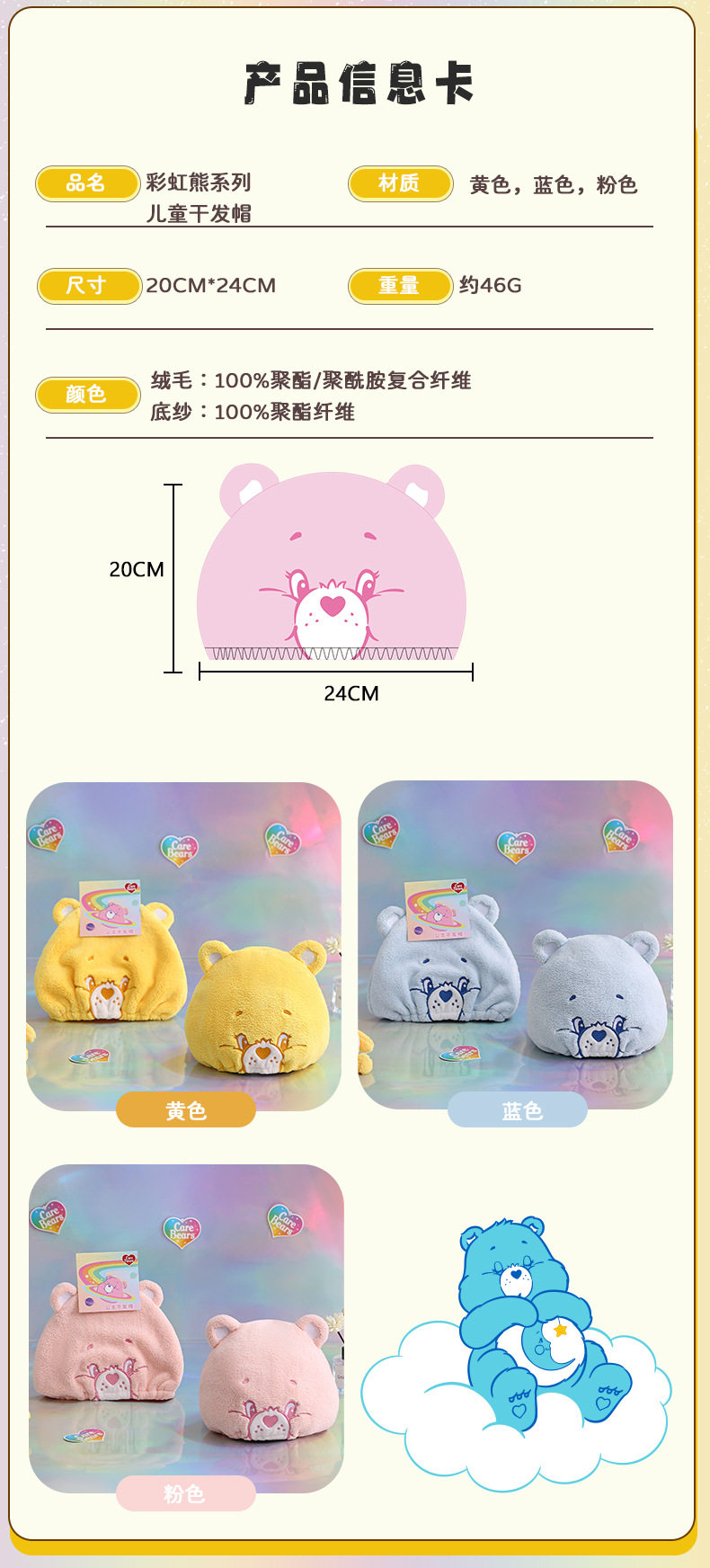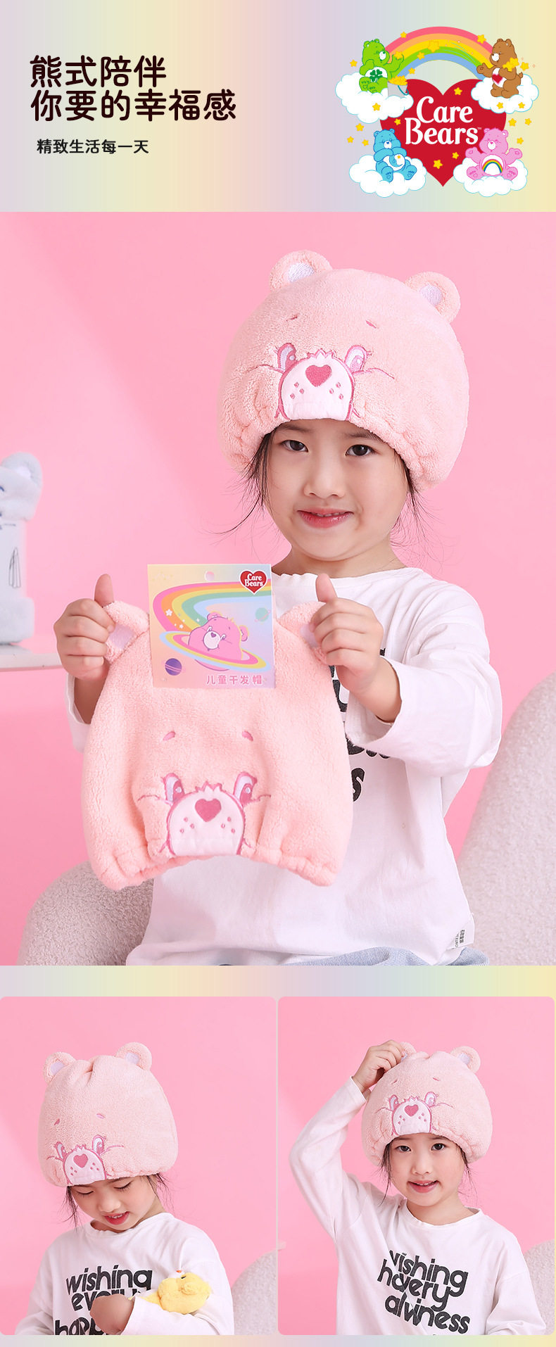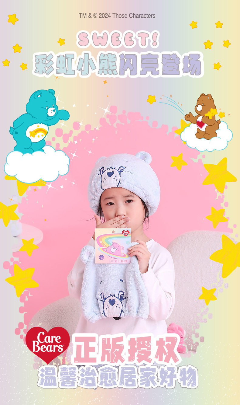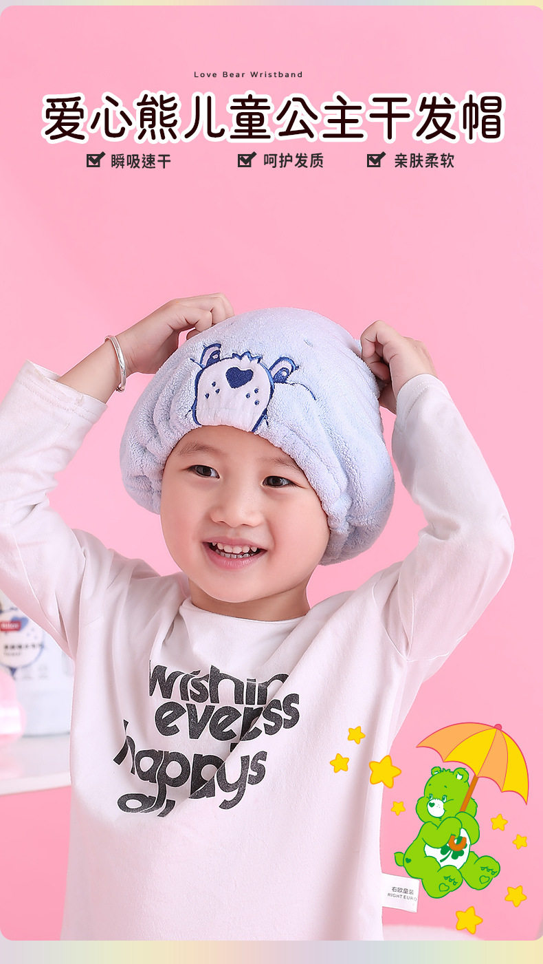CaerBears Love Bear Children's Dry Hair Cap Super Absorbent Quick-drying Cute Thickened Dry Hair Towel Hair Wipe Towel