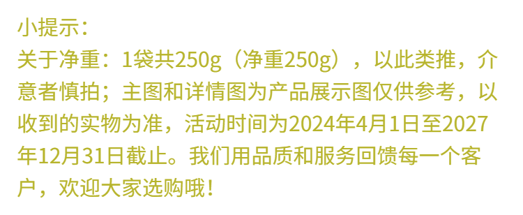 | Flavor | Miao killing: 2 bags of type a, totaling 500g net weight. (up after grabbing),Miaoguo: type a, 4 bags, totaling 1000g net weight. (cost-effective),[a. 7 types of combinations] 2 bags total 500g (net weight),[a. 7 types of combinations] 4 bags, a total of 1000g (net weight),"family a pack" net weight 250g*8 bags ( 2kg ),"great deal a" net weight 250g*10 bags ( 2.5kg ),[try] a. style 1 bag, total 250g net weight,100g small bag, not recommended.a |