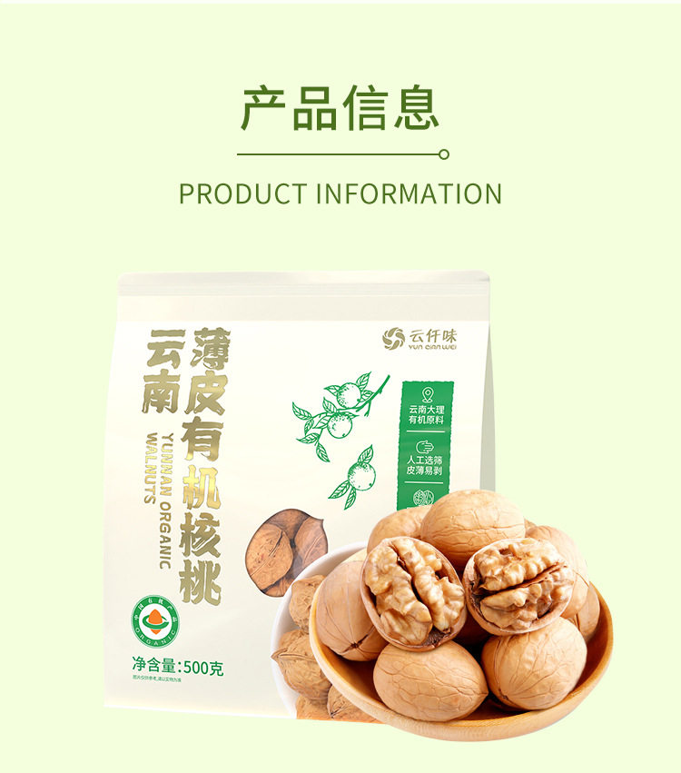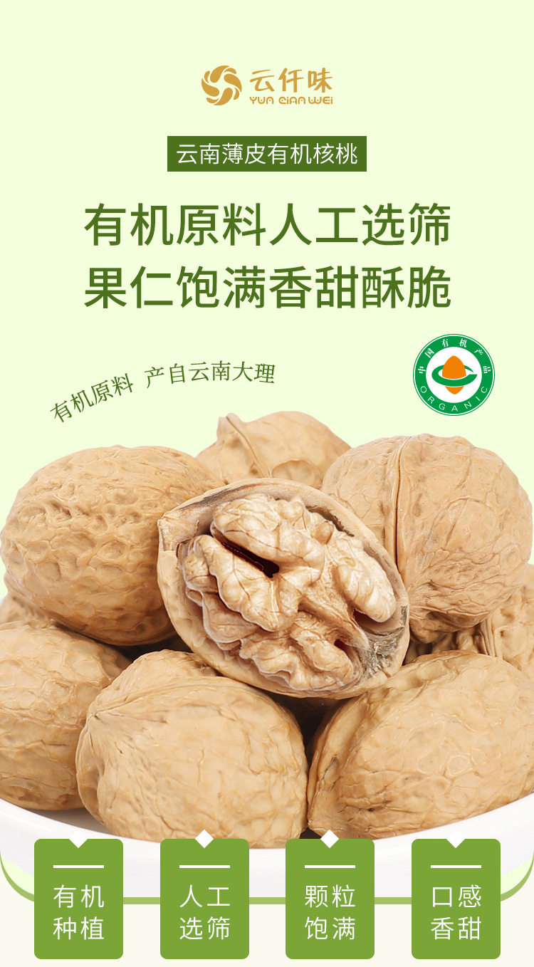 Yunqianwei Yunnan Organic Walnut Fruit 500g Thin-Skinned Pecans Ugly Walnuts Hotel Wholesale