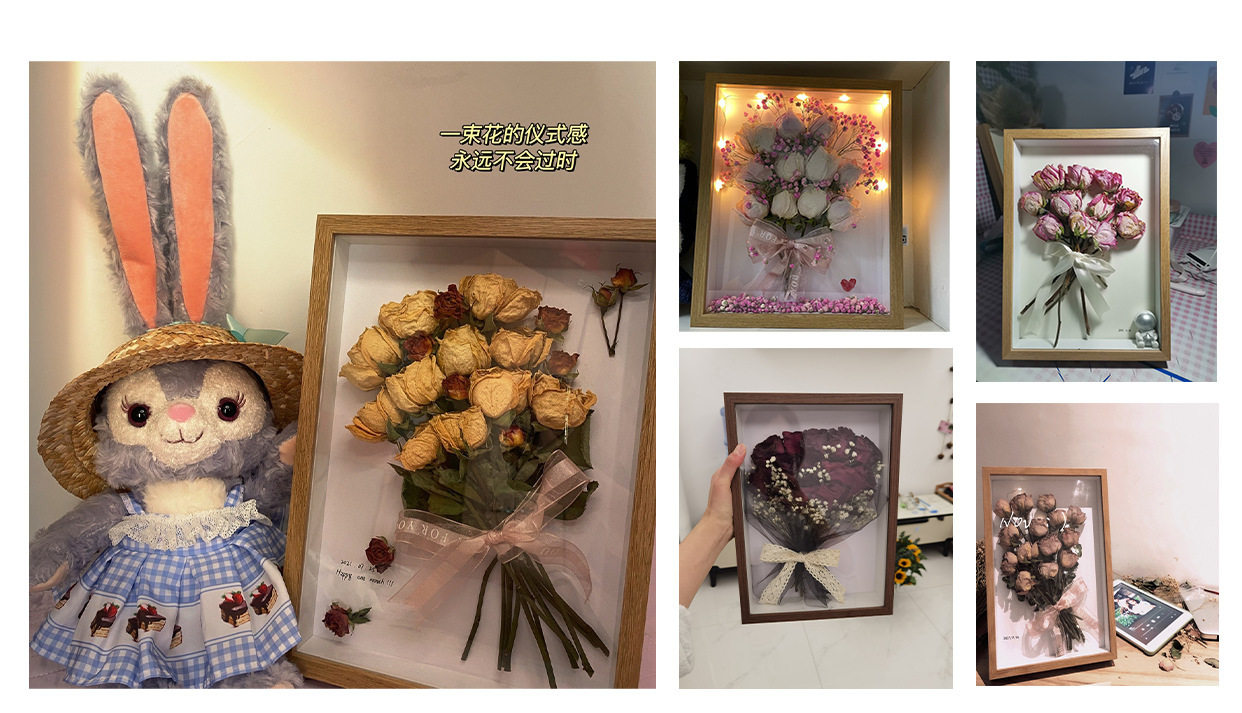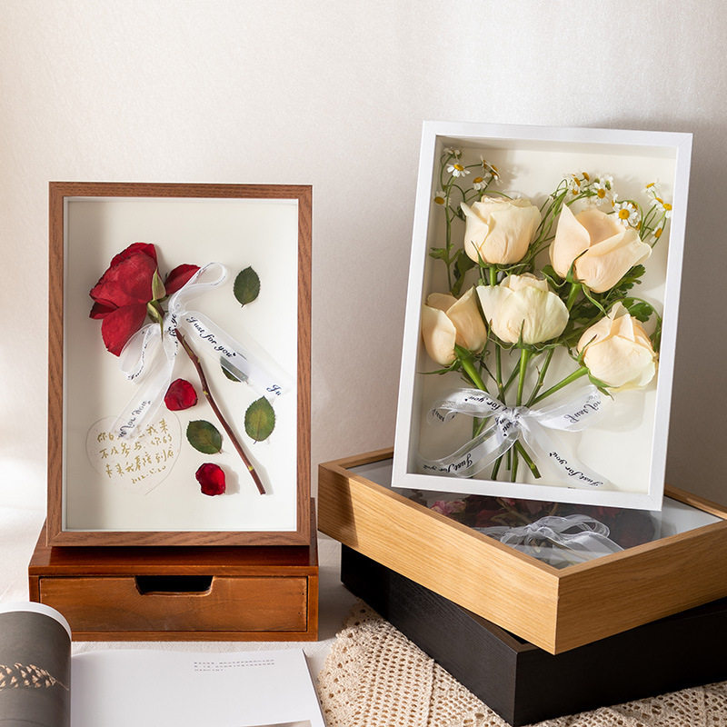 Stereo Hollow Dried Flower Photo Frame DIY Handmade Gift Photo Frame Table Dried Rose Eternal Flower Creative Specimen Frame