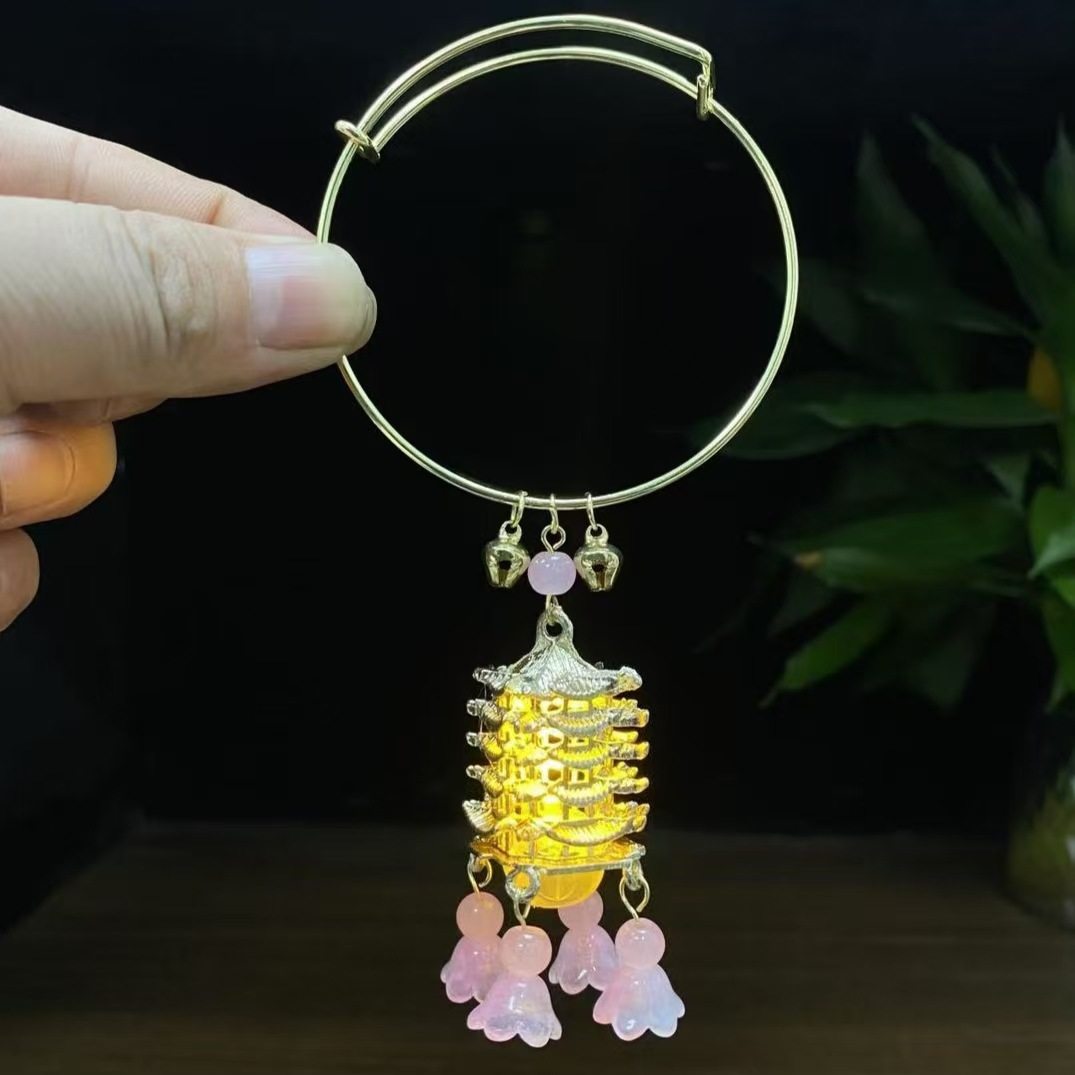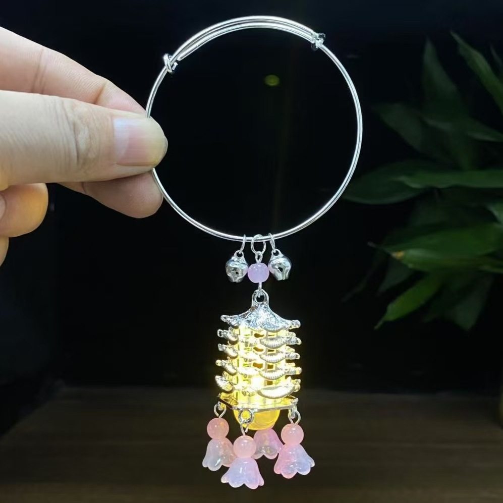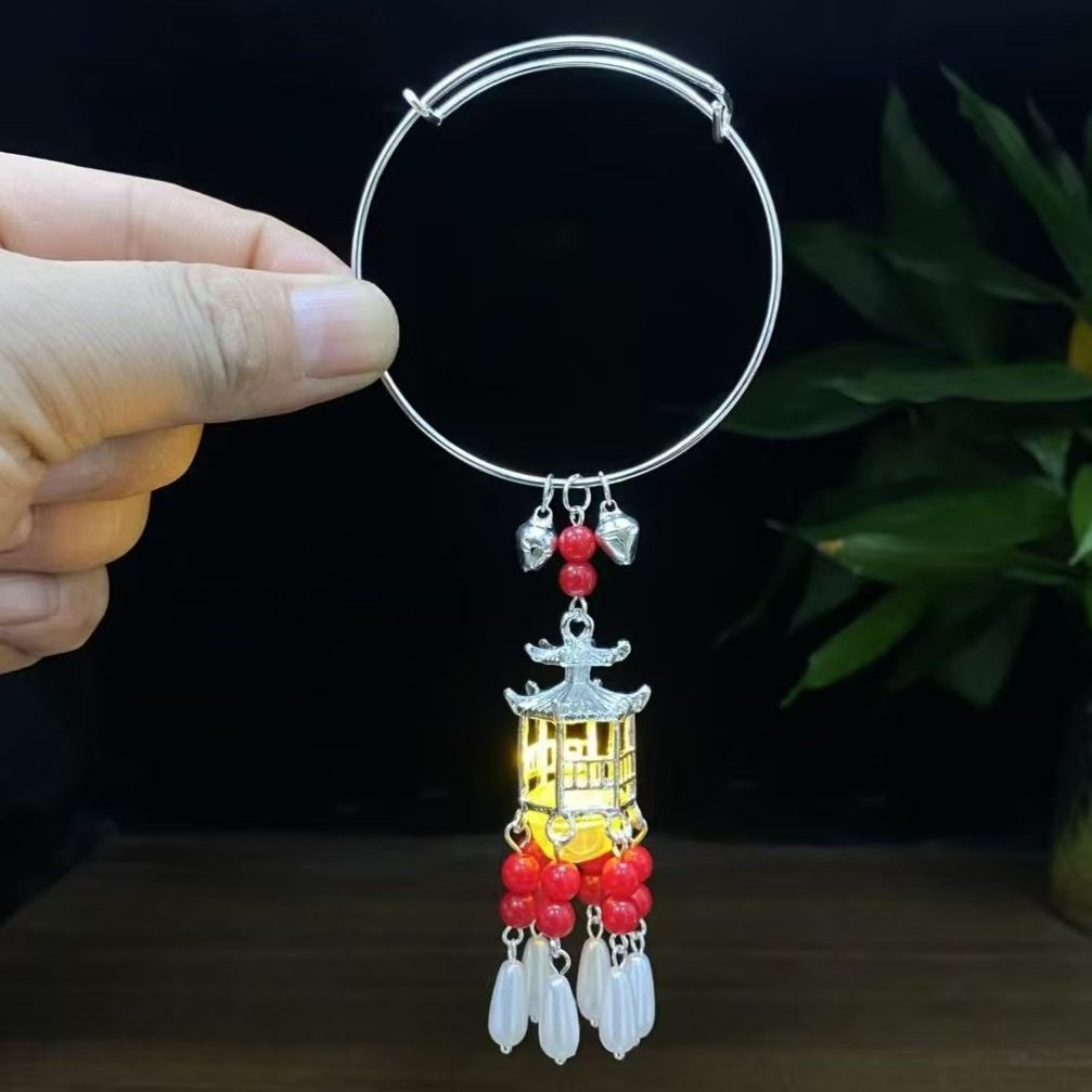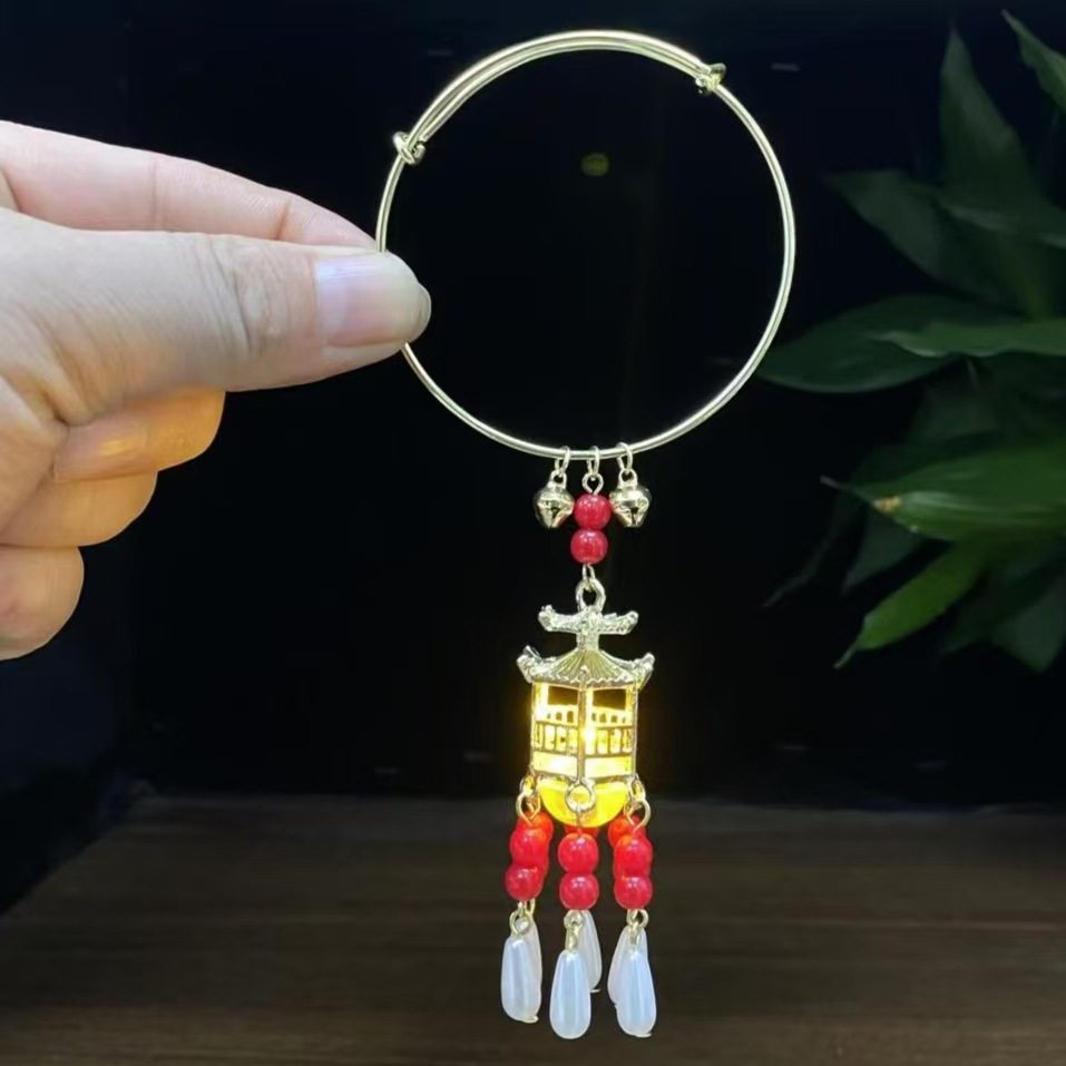 New Chinese Bell Luminous Bracelet with Lamp Antique Style Jewelry Bracelet Court Style Bracelet Daily Handstring Hanfu Accessories