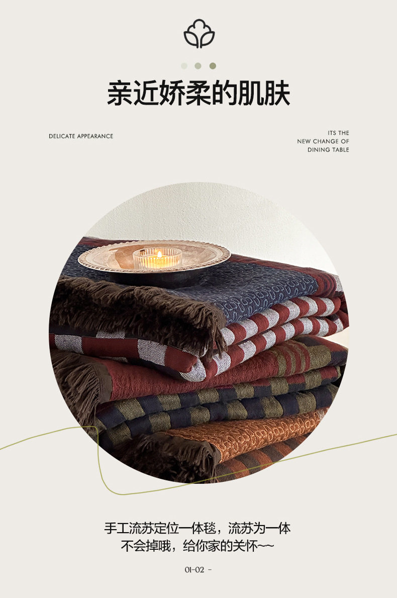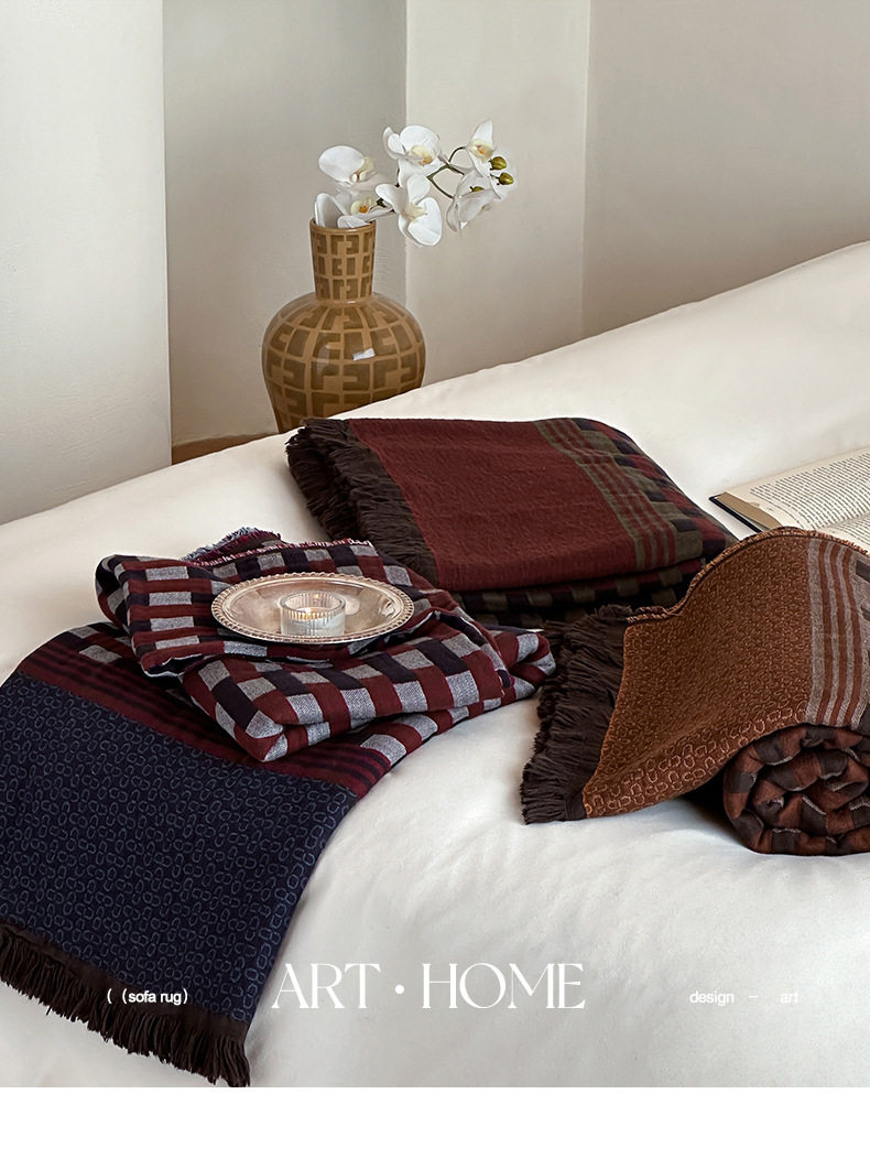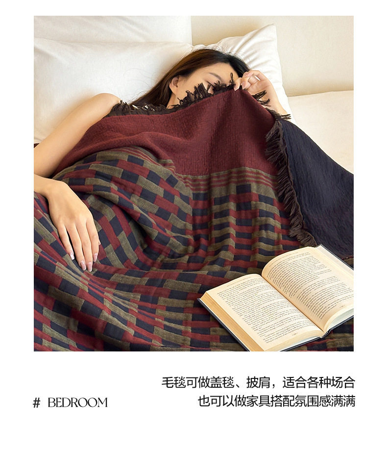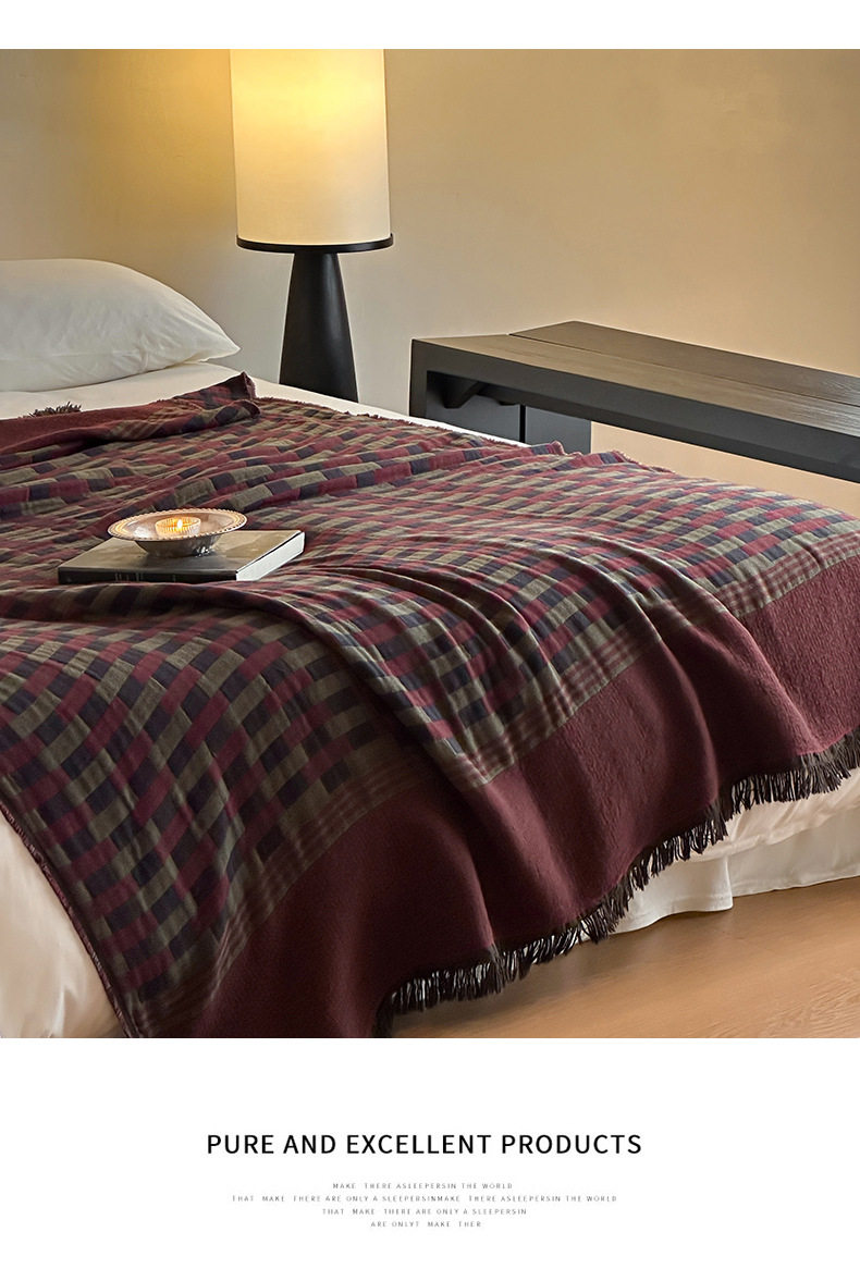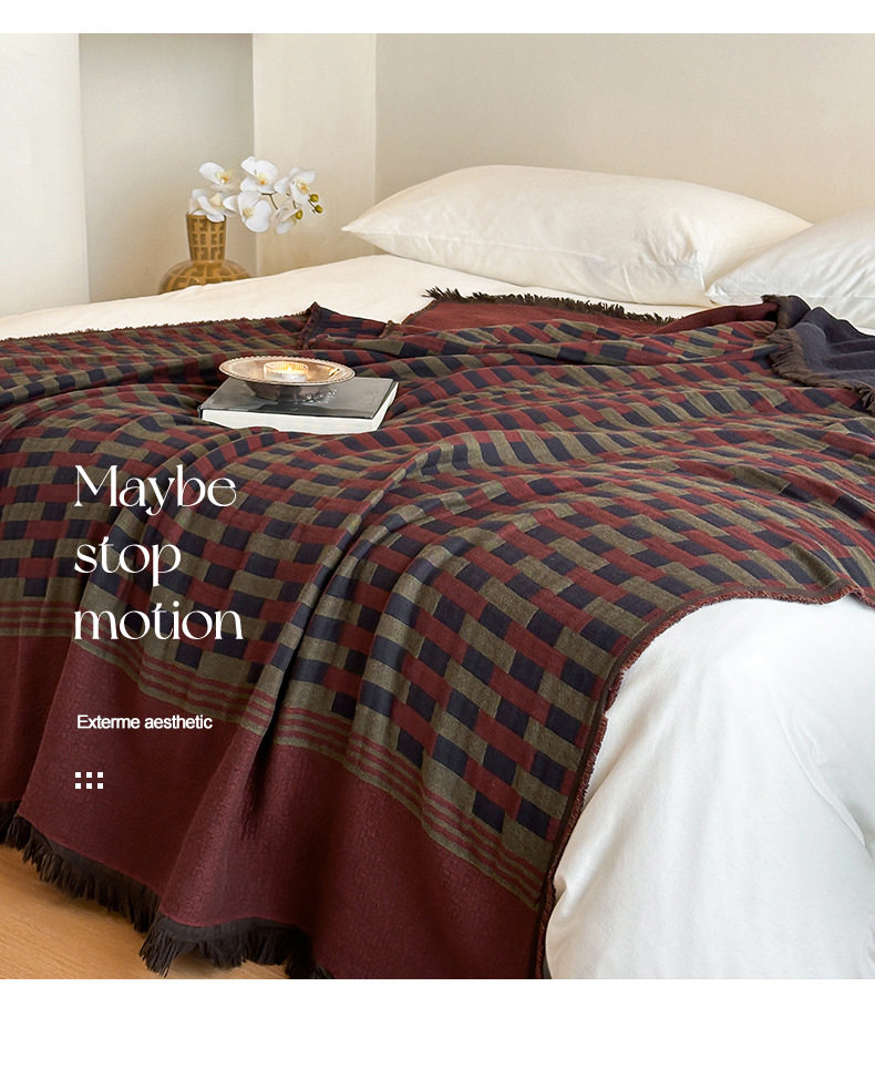 Middle Ages Qian Feng Pure Cotton Gauze Tassel Blanket Skin-Friendly Advanced Sense Sofa Nap Blanket Cotton Blanket Shawl Blanket