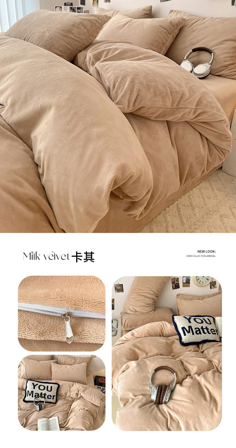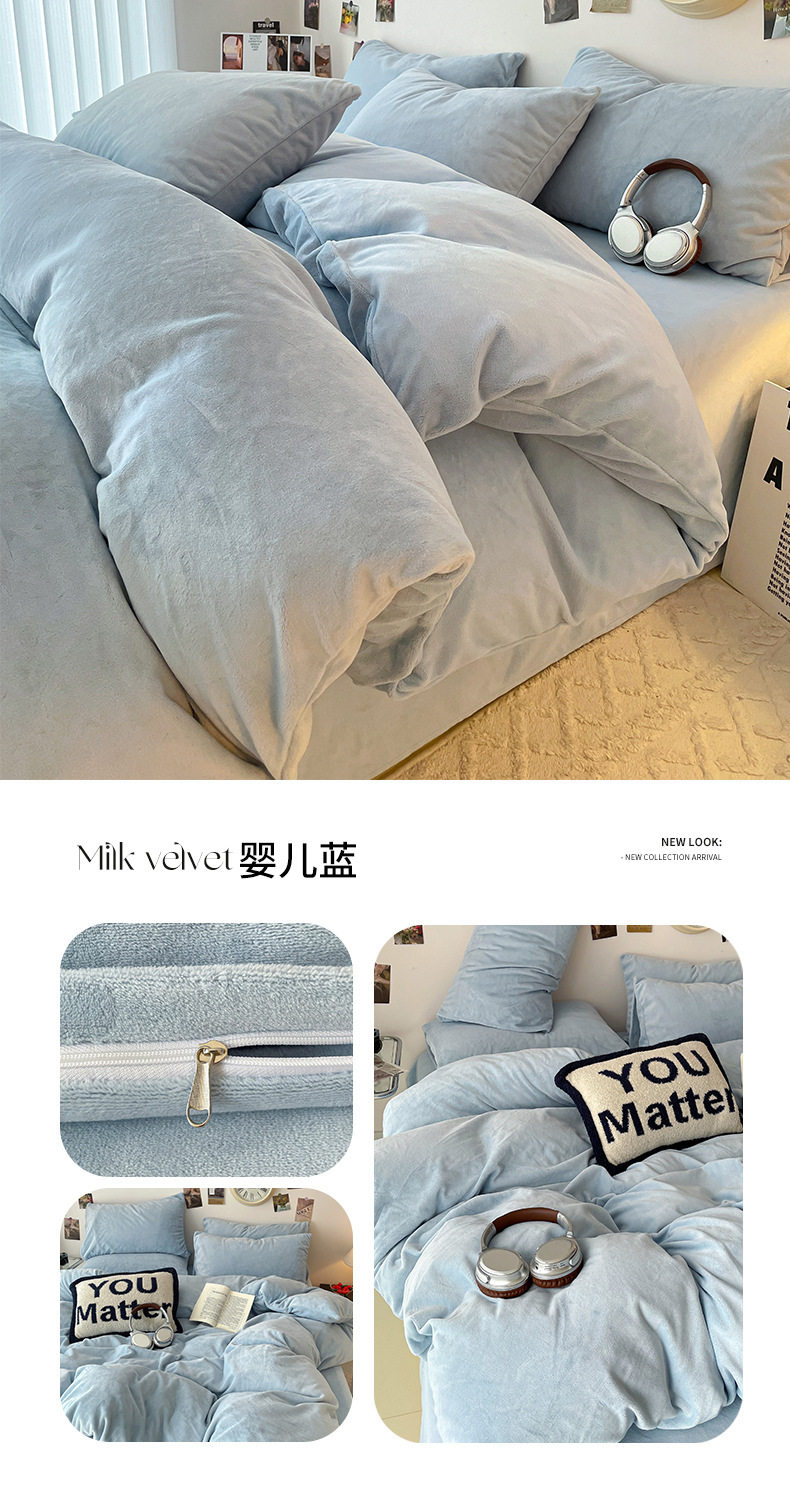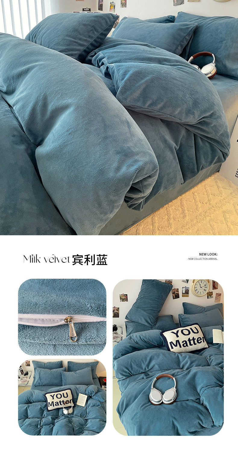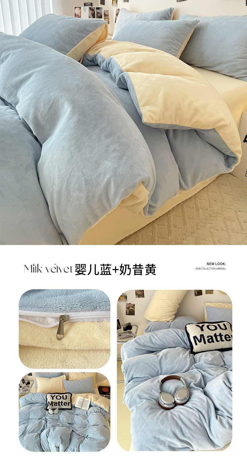 Ins Cream Style Winter Thickened fleece-lined Milk Velvet Four-piece Set Double-sided Coral Velvet Quilt Bed Single Three-piece Set 4