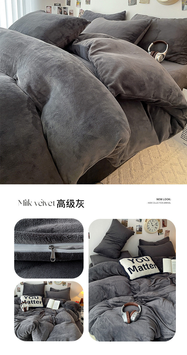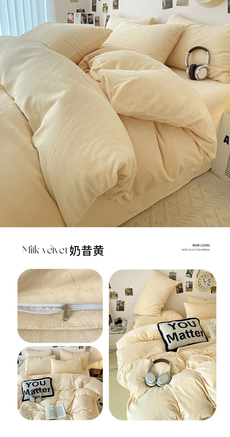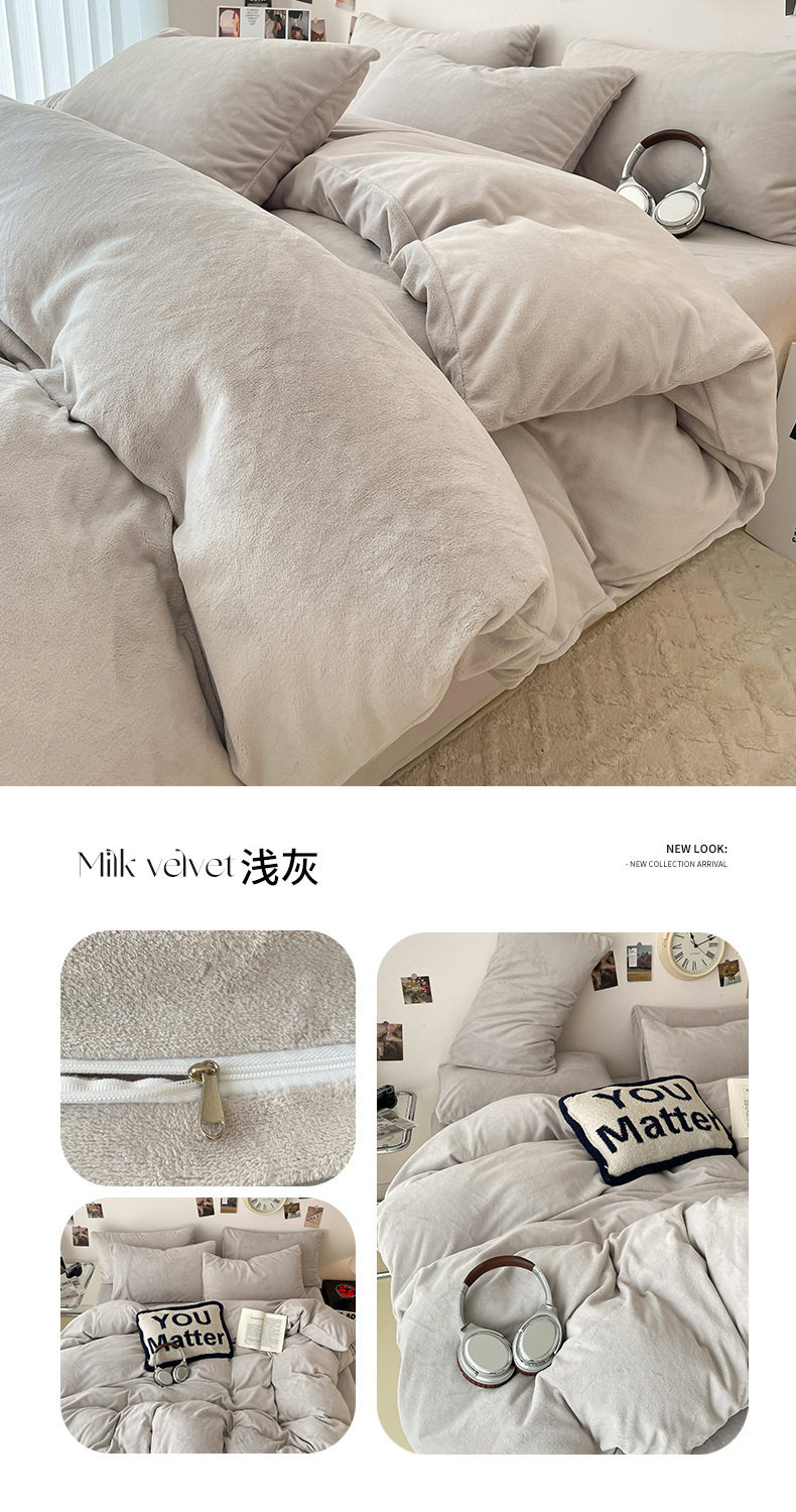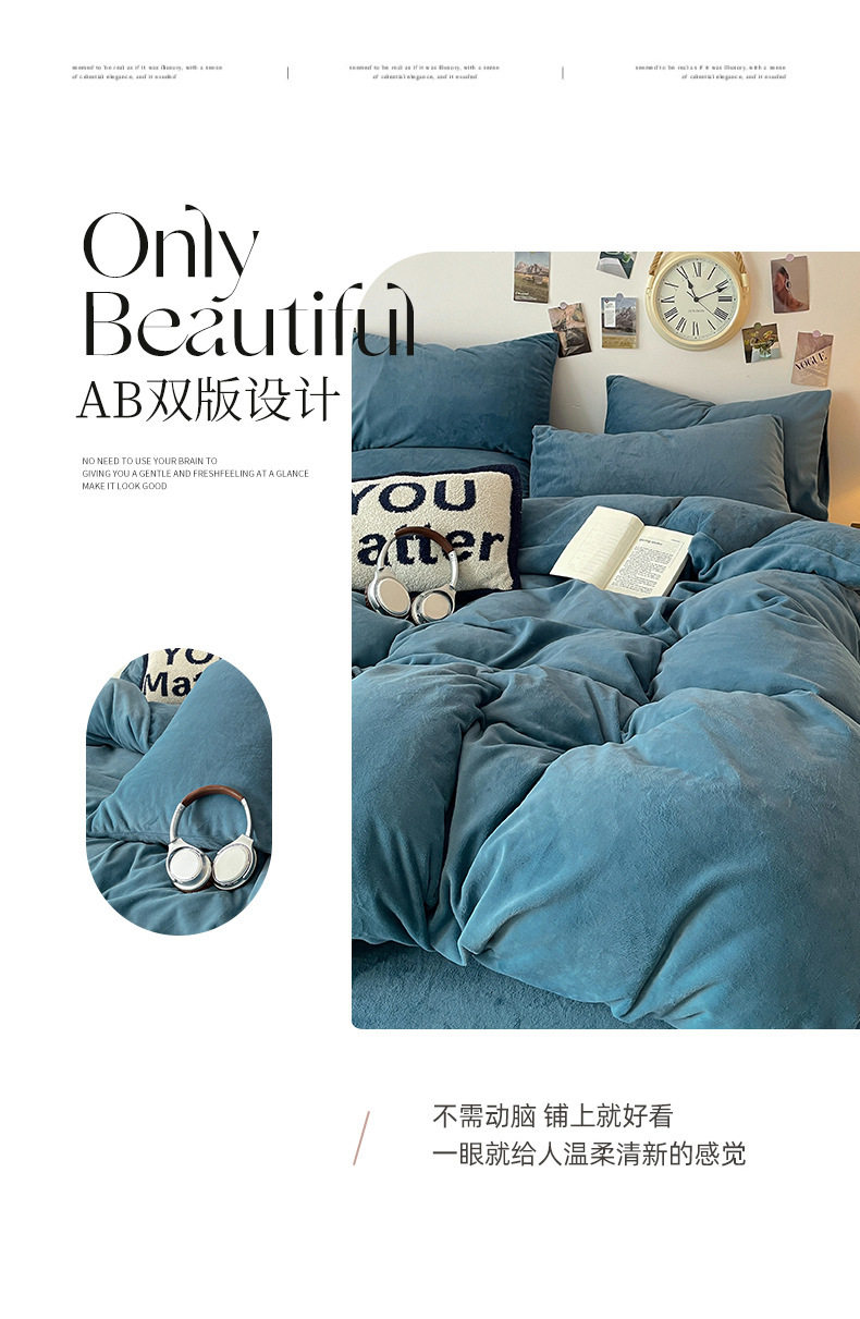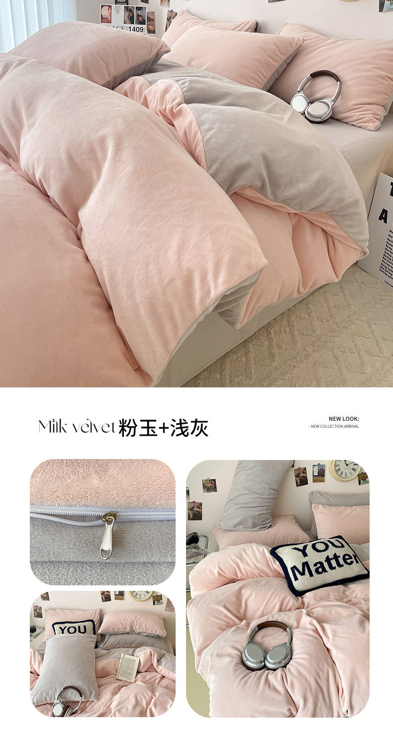 Ins Cream Style Winter Thickened fleece-lined Milk Velvet Four-piece Set Double-sided Coral Velvet Quilt Bed Single Three-piece Set 4