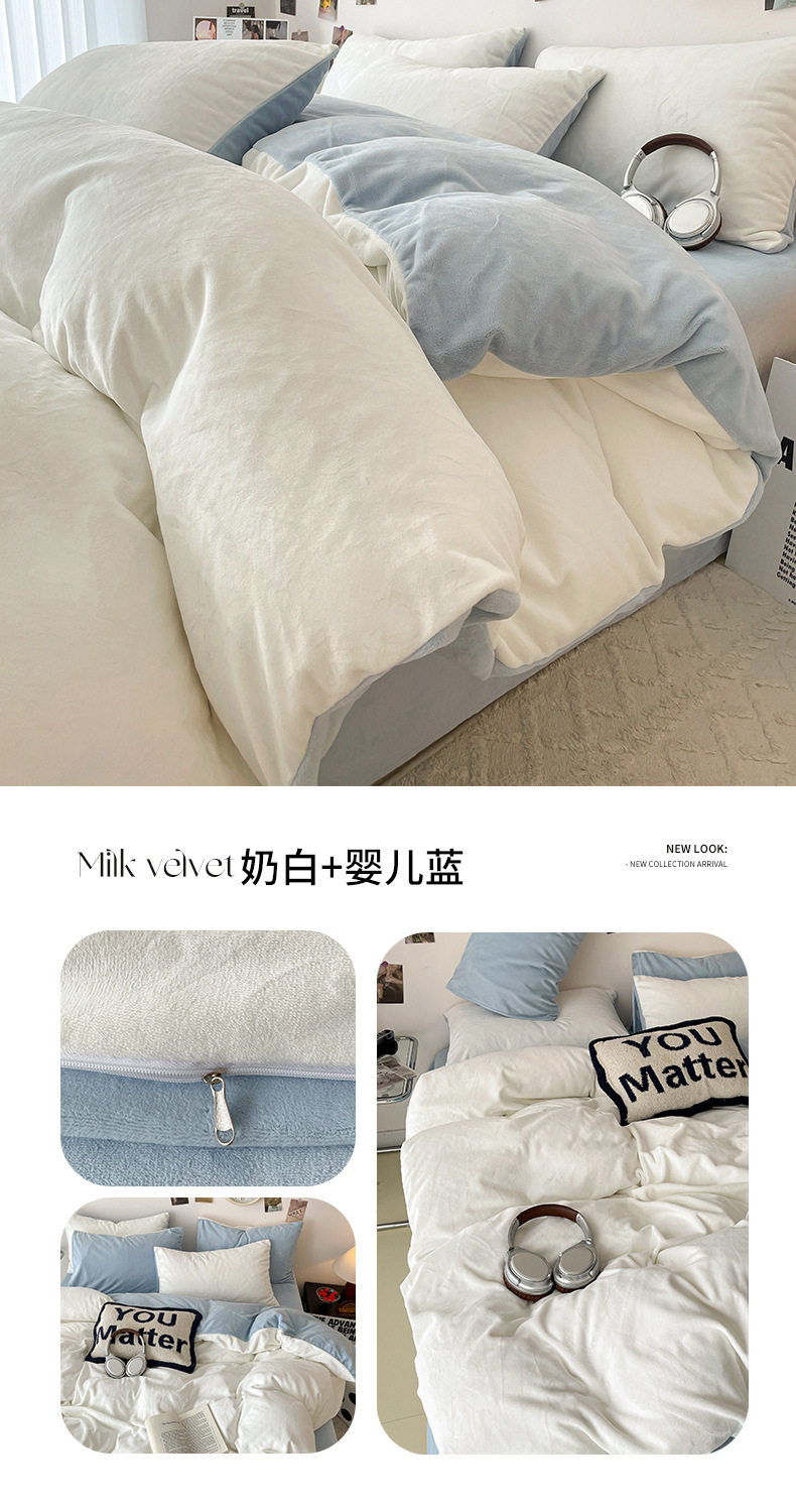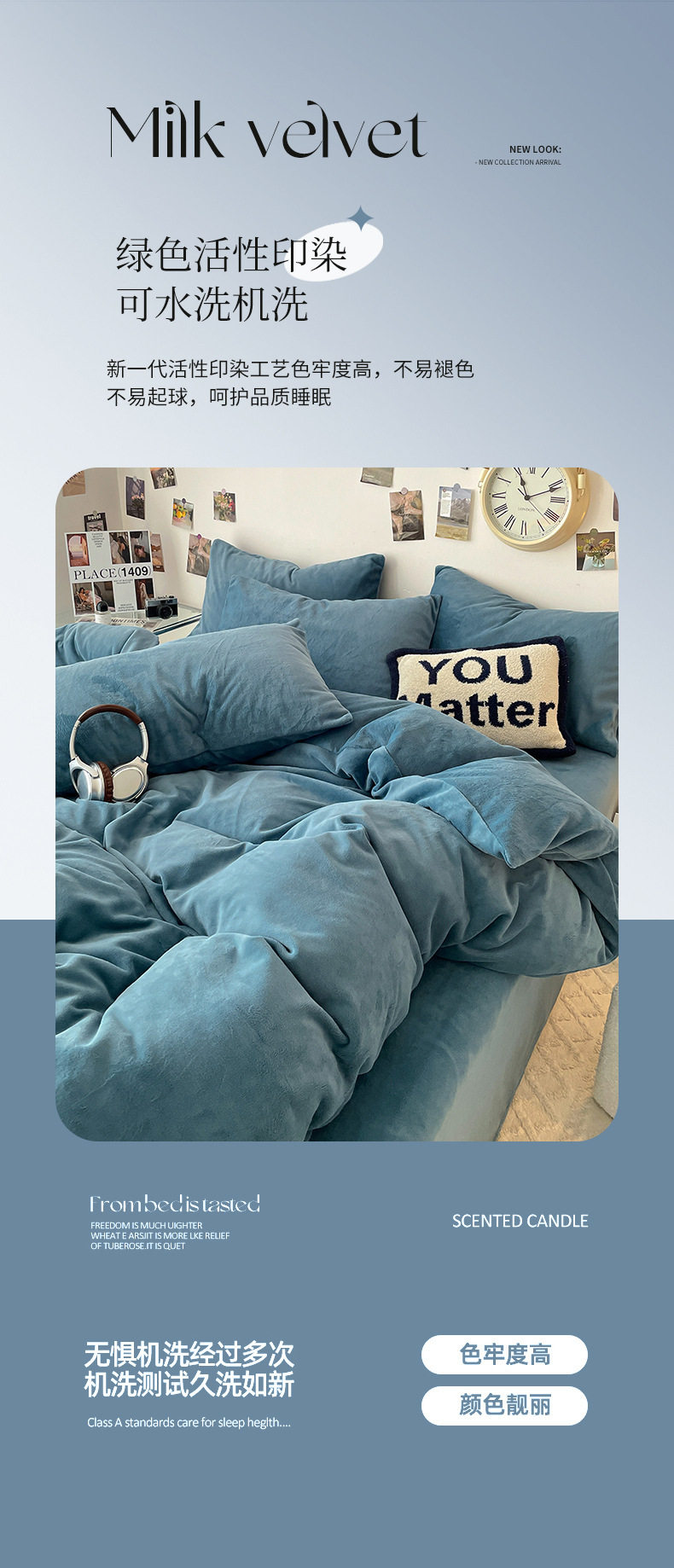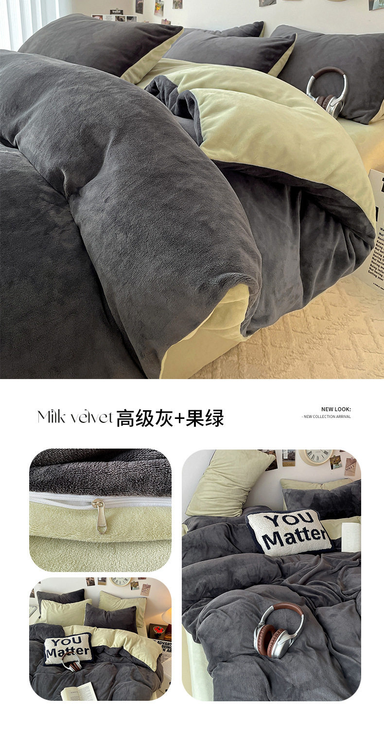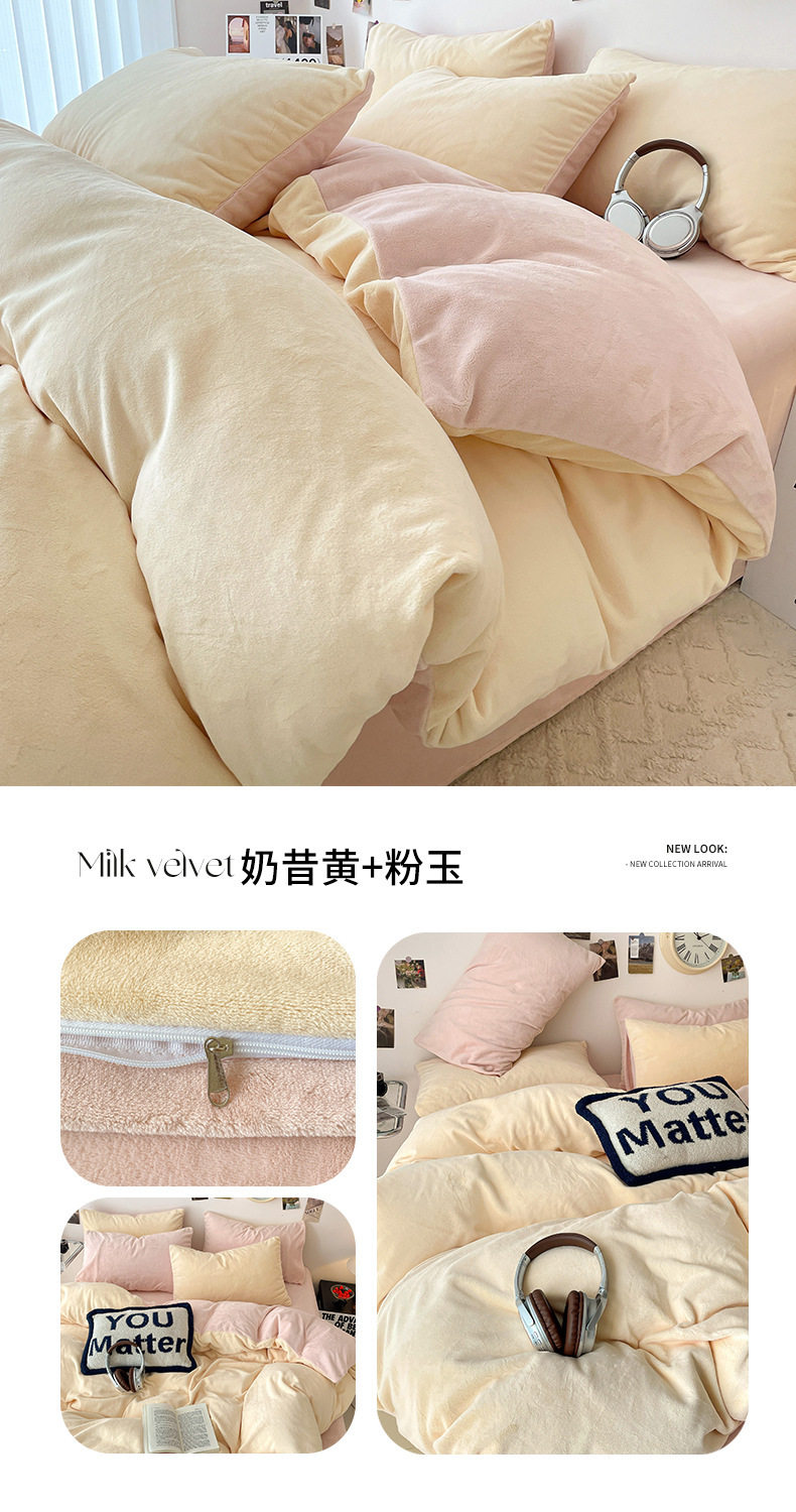 Ins Cream Style Winter Thickened fleece-lined Milk Velvet Four-piece Set Double-sided Coral Velvet Quilt Bed Single Three-piece Set 4