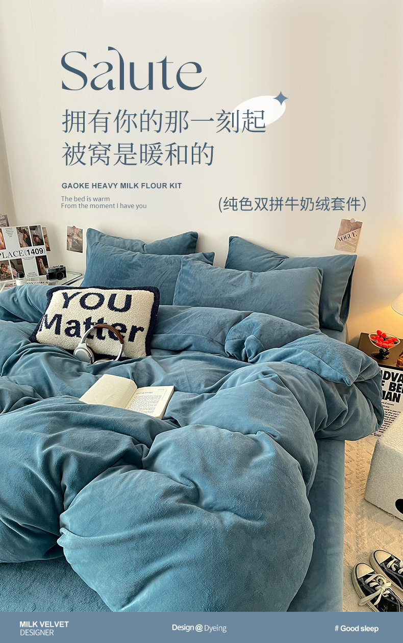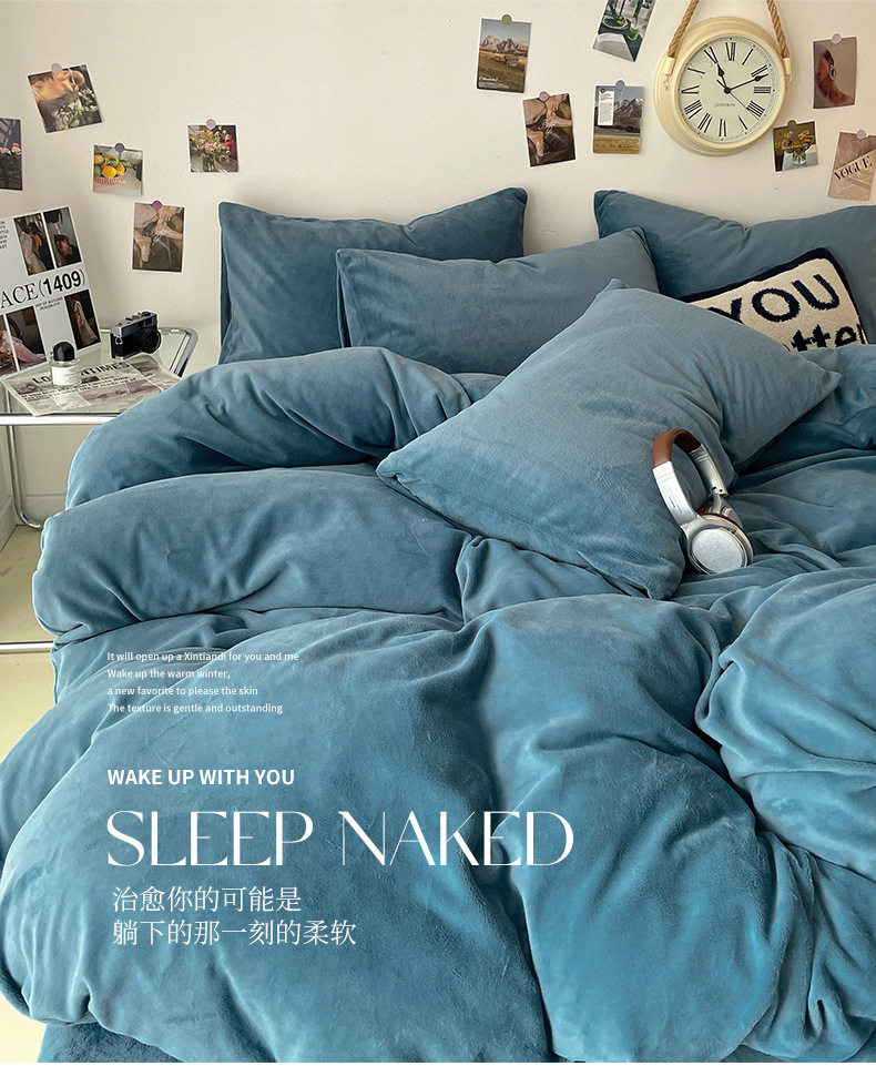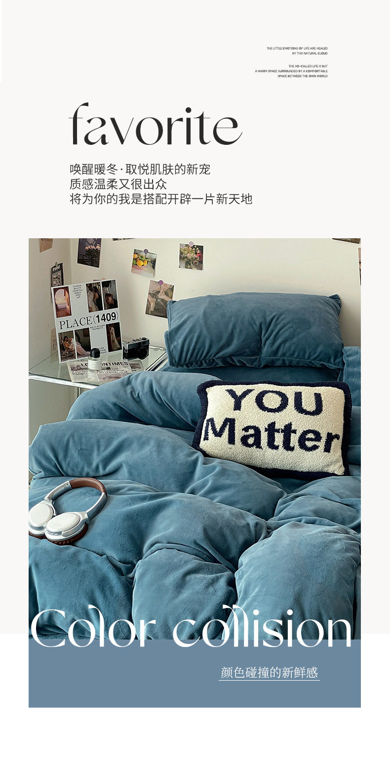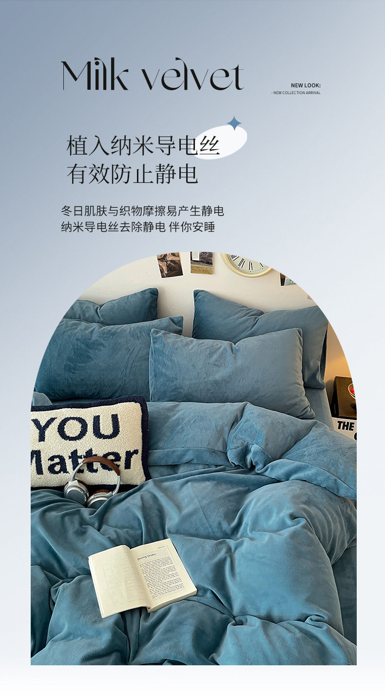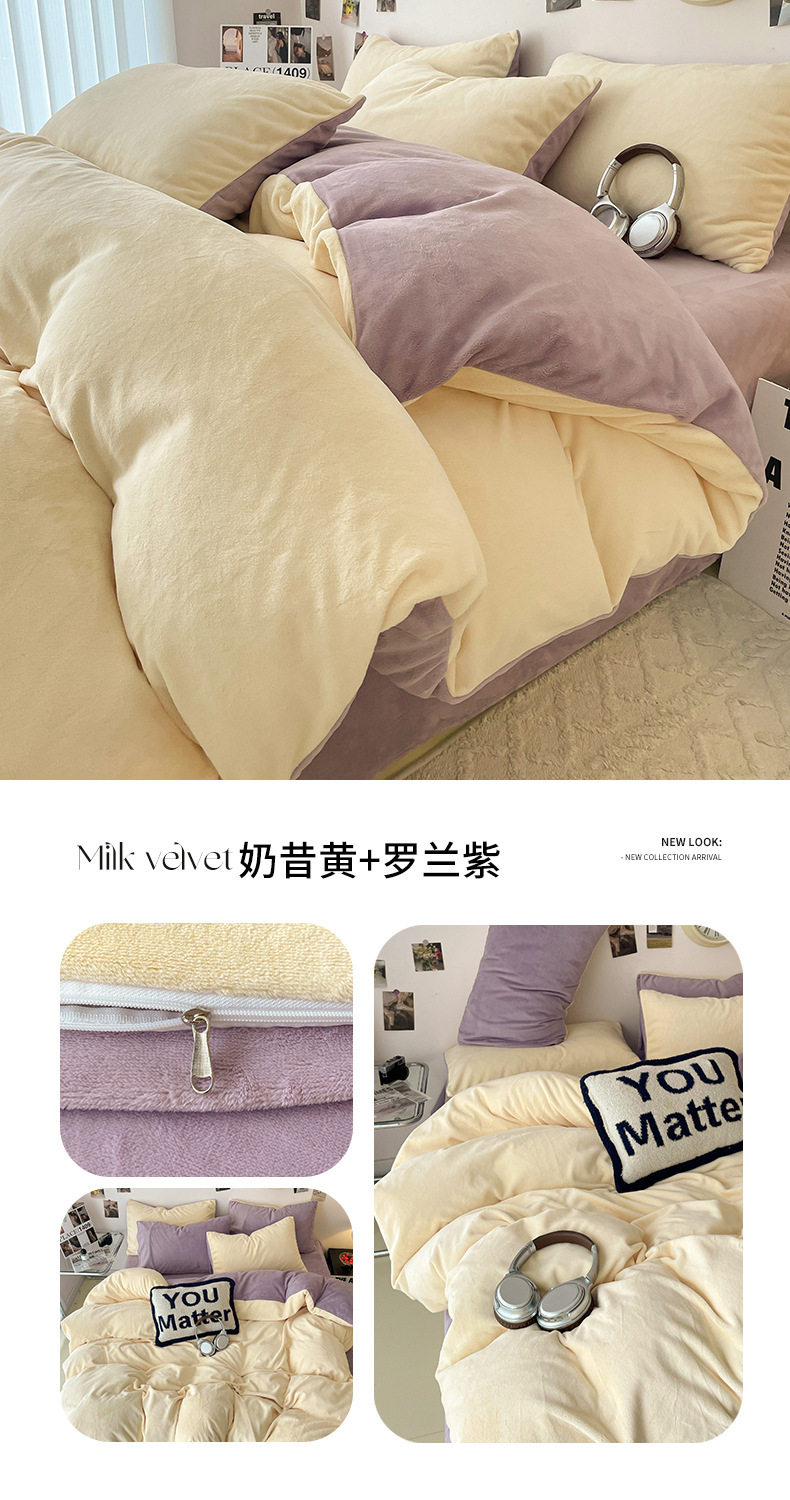 Ins Cream Style Winter Thickened fleece-lined Milk Velvet Four-piece Set Double-sided Coral Velvet Quilt Bed Single Three-piece Set 4