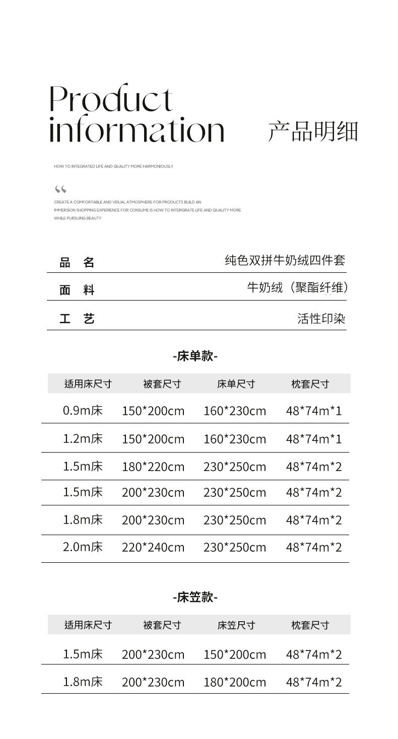 | Size specifications | 1.2m bed sheet three-piece set (150*200 quilt cover),1.5m bed sheet four-piece set (180*220 quilt cover),1.8m bed sheet four-piece set (200*230 quilt cover),2.0m bed sheet four-piece set (220*240 quilt cover),1.5m fitted sheet set of four (200*230 quilt cover),1.8m fitted sheet set of four (200*230 quilt cover),150*200cm single quilt cover,180*220cm single quilt cover,200*230cm single quilt cover,220*240cm single quilt cover |
