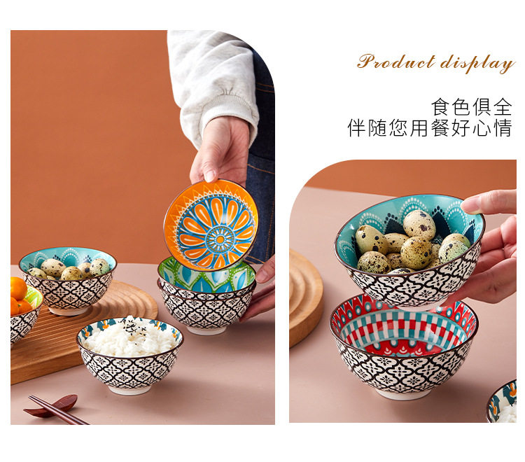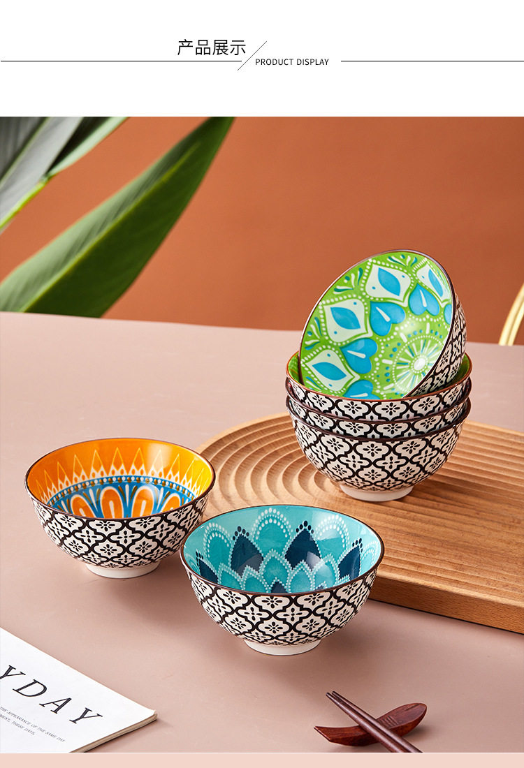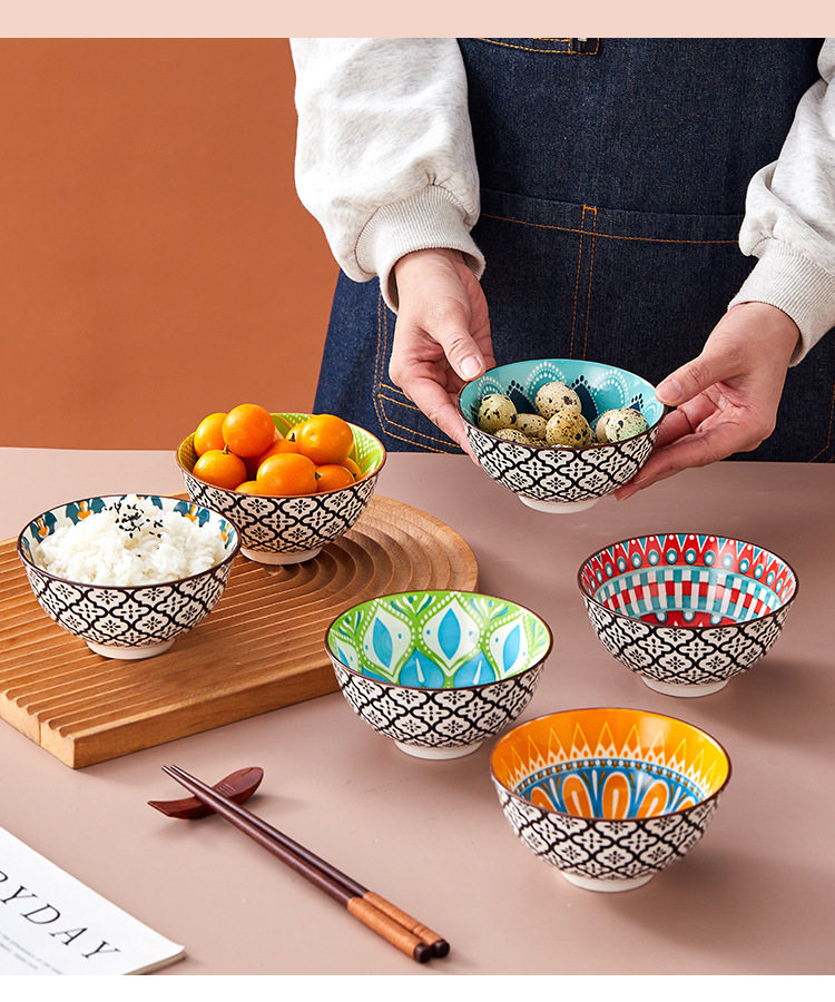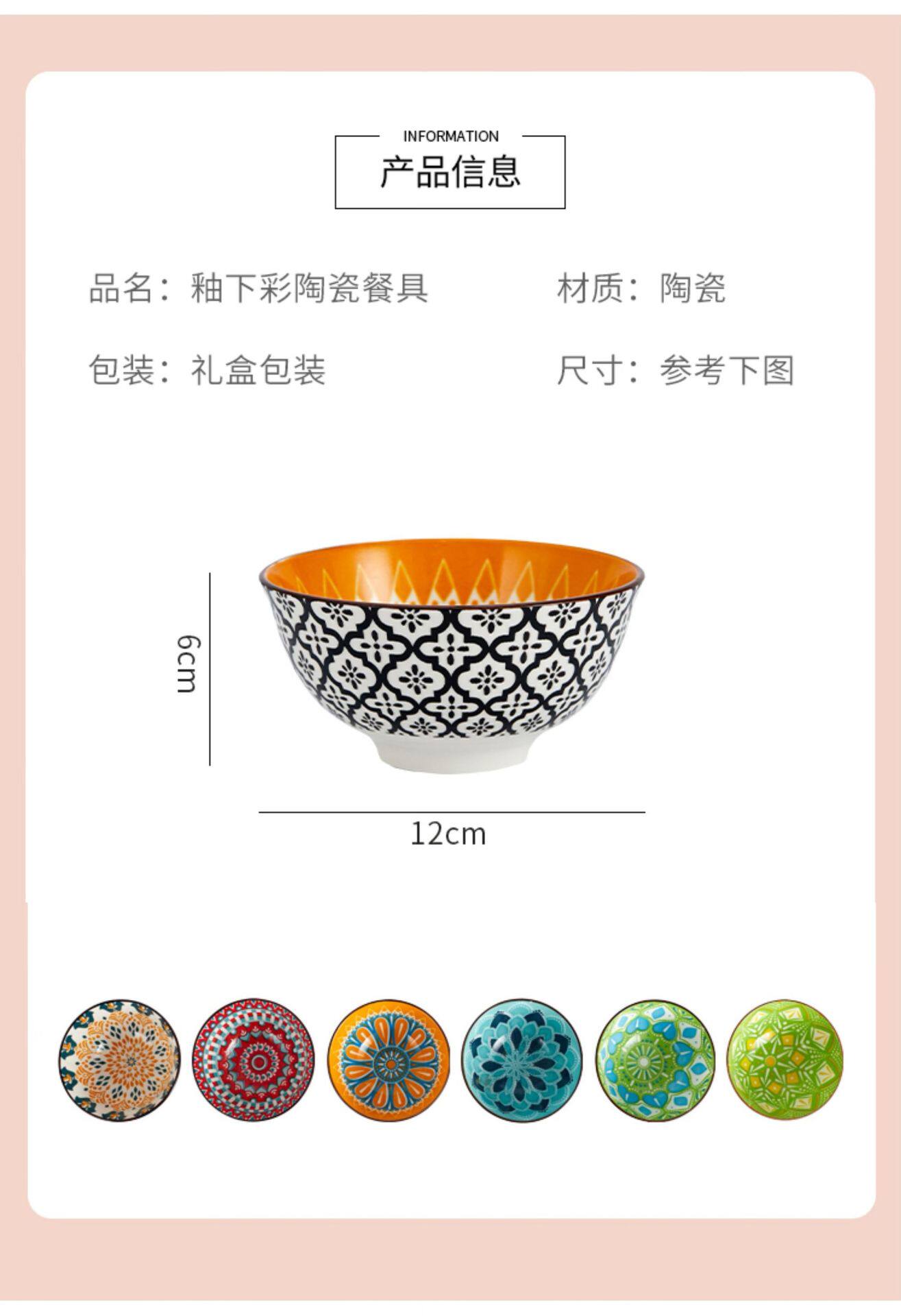 Cross-Border Bohemian Ceramic Bowl Japanese Tableware Rice Bowl Salad Bowl Set Amazon Temu Bowl and Chopsticks Gift Set