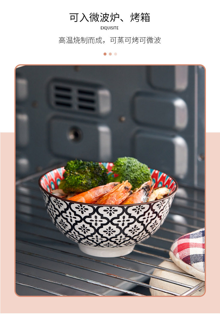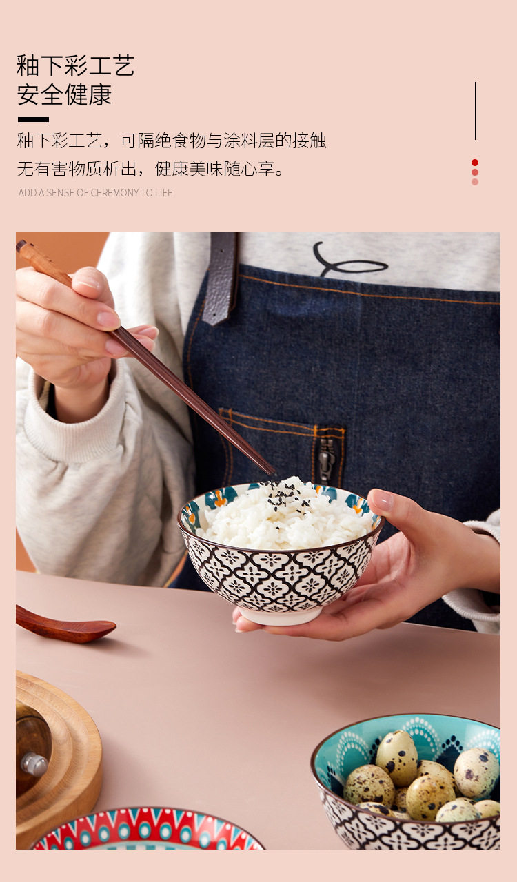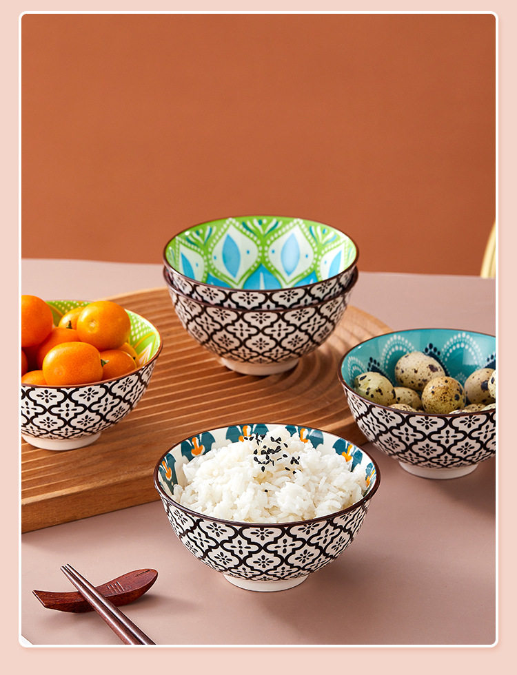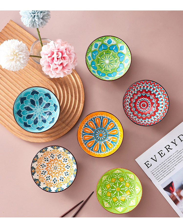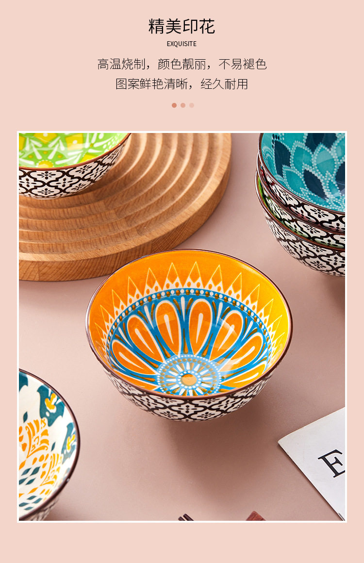 Cross-Border Bohemian Ceramic Bowl Japanese Tableware Rice Bowl Salad Bowl Set Amazon Temu Bowl and Chopsticks Gift Set