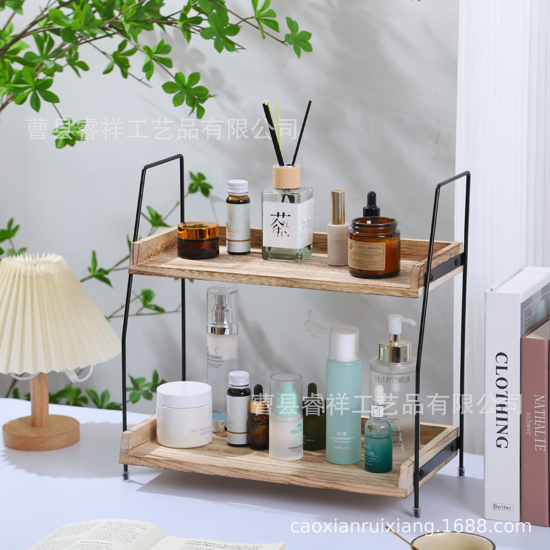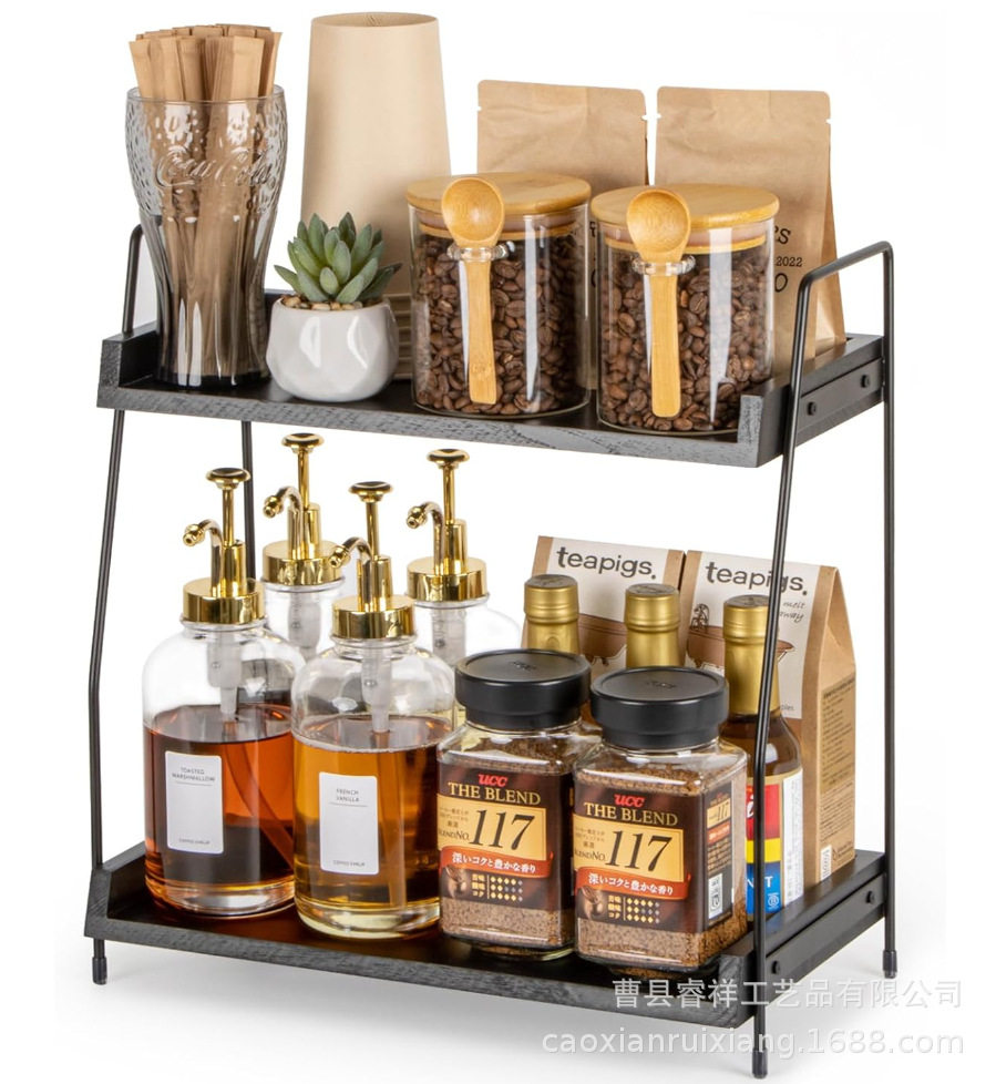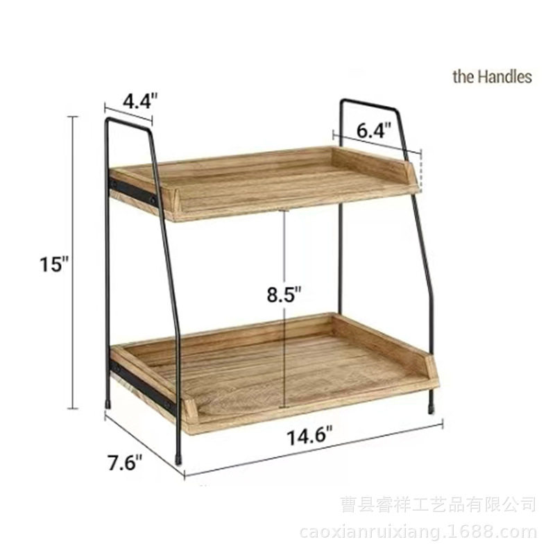 in stock Double-layer Wooden Storage Rack for Kitchen Seasoning Supplies Household Desktop Toiletries Storage Rack