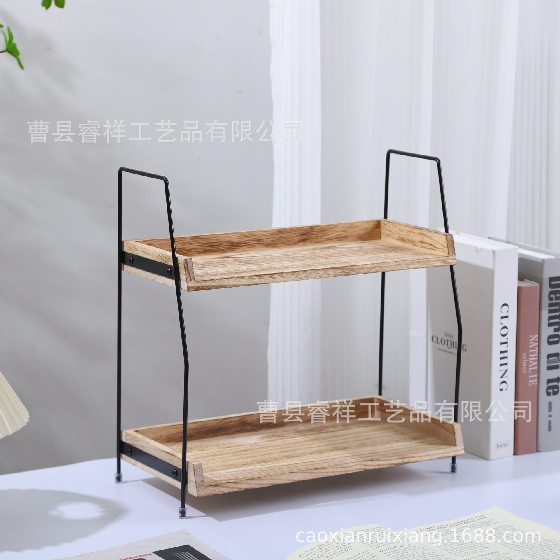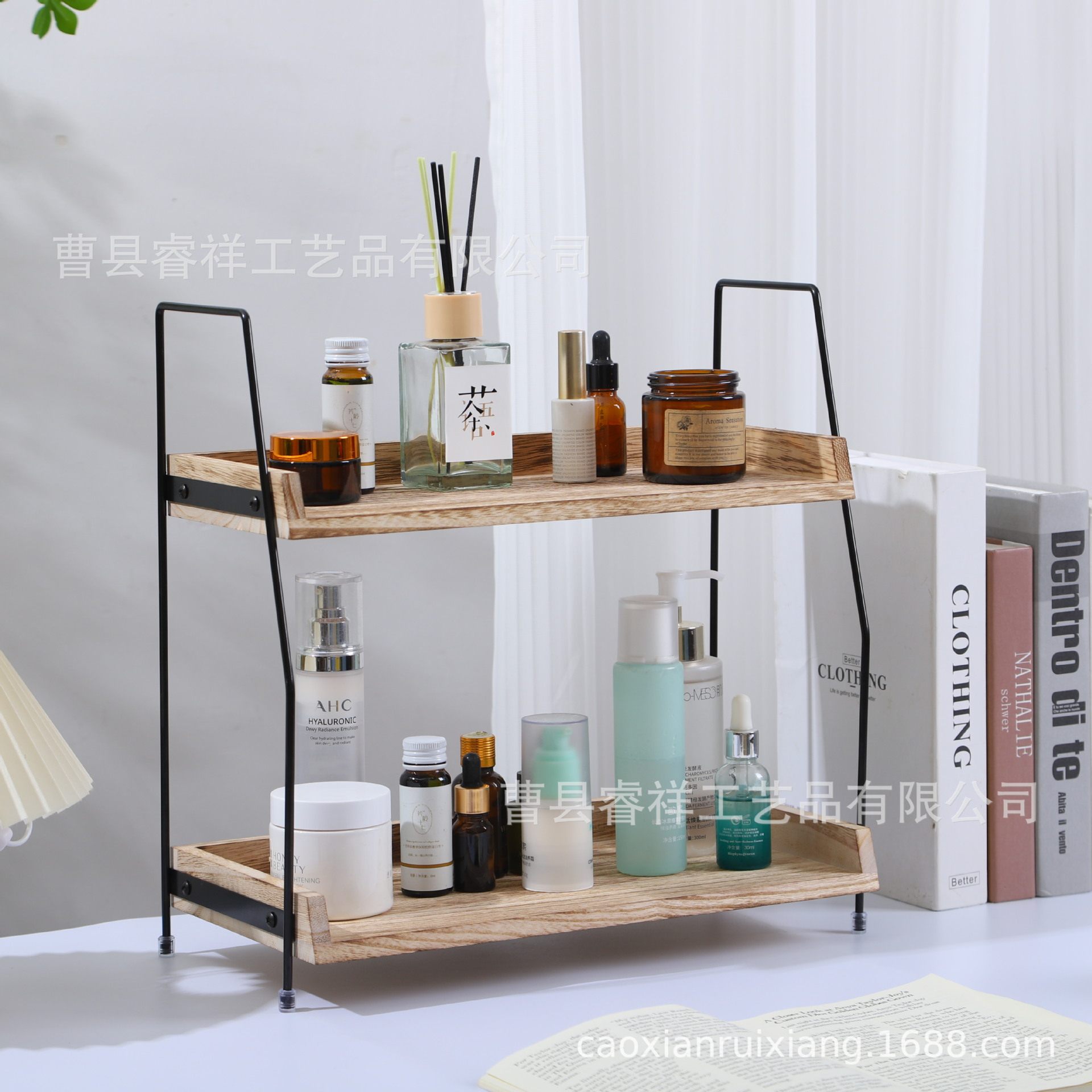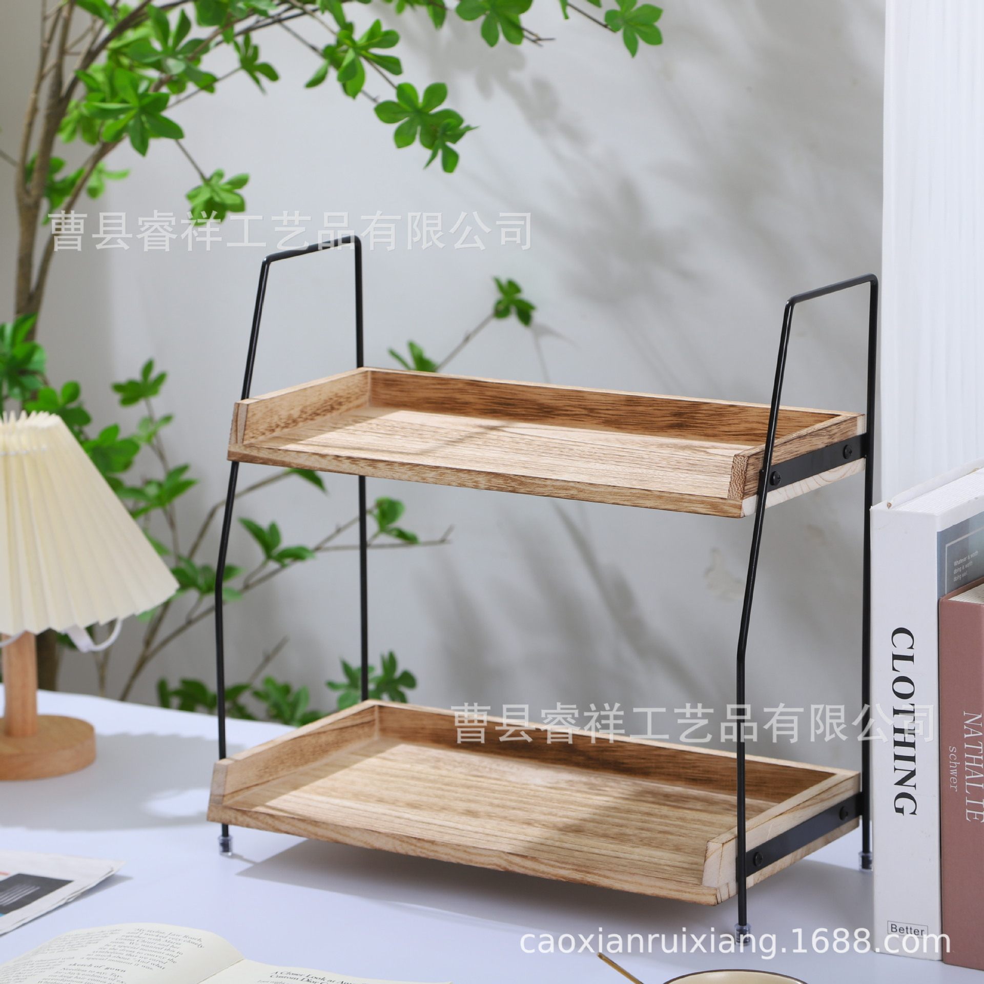 in stock Double-layer Wooden Storage Rack for Kitchen Seasoning Supplies Household Desktop Toiletries Storage Rack