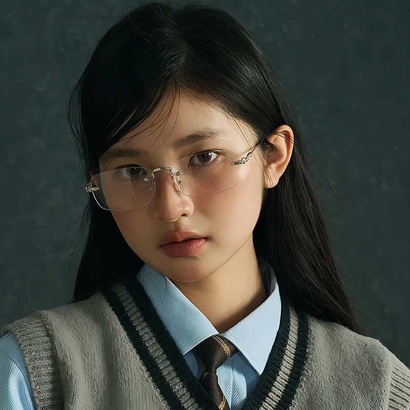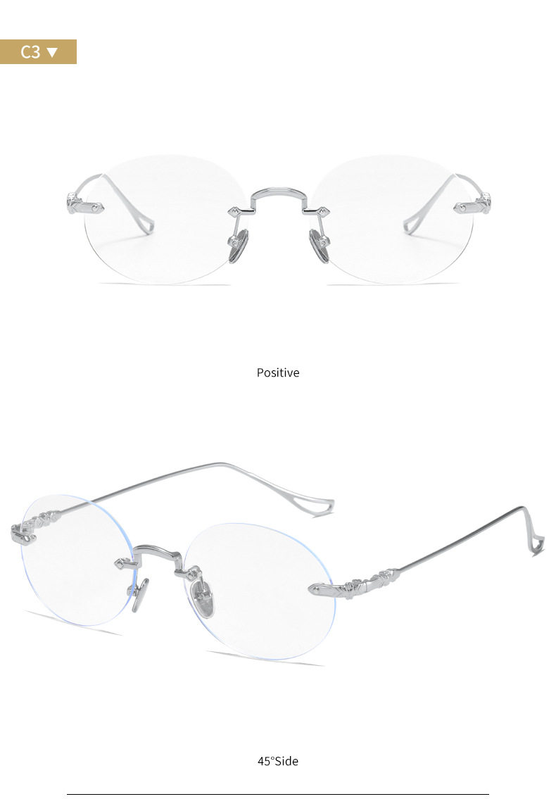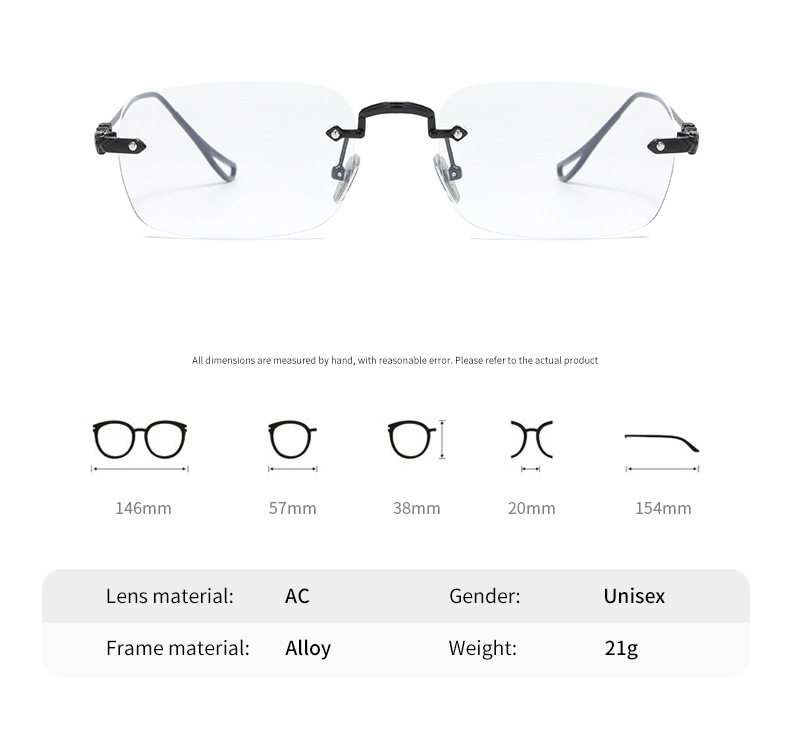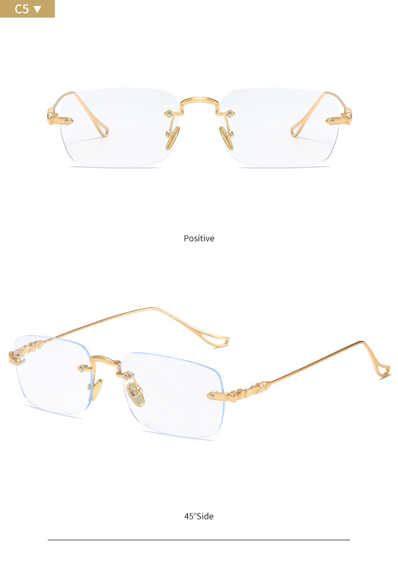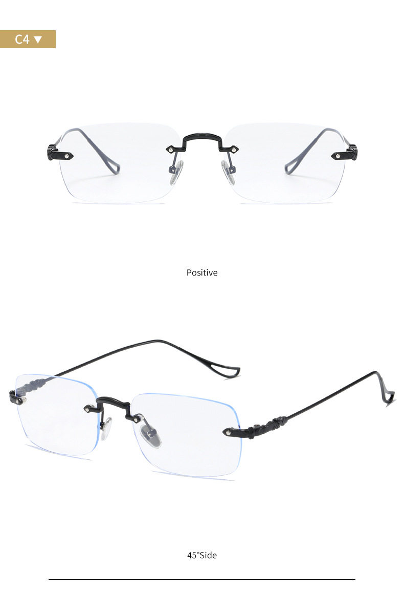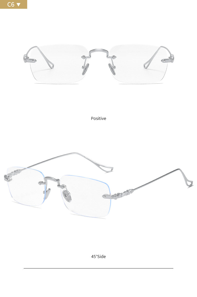 silver Frameless Square Anti-Blue Light Flat Mirror Spice Girls Y2K Sven Glasses Frame Can be Equiped with Myopic Glasses Frame for Men and Women