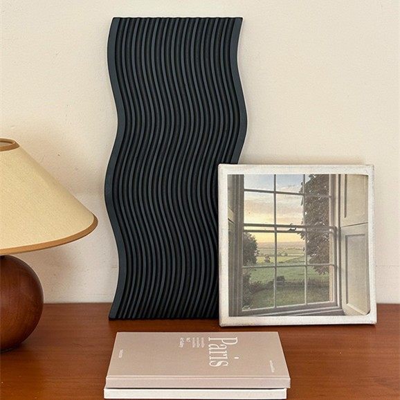 Water Ripple Black Solid Wood Tray for Home Use, Bread Board, Beech Wood Aromatherapy Storage Tray, Afternoon Tea Coffee Tray