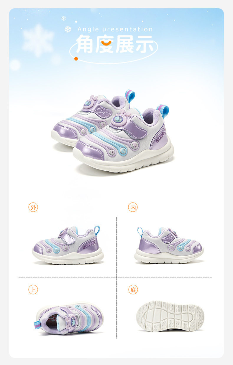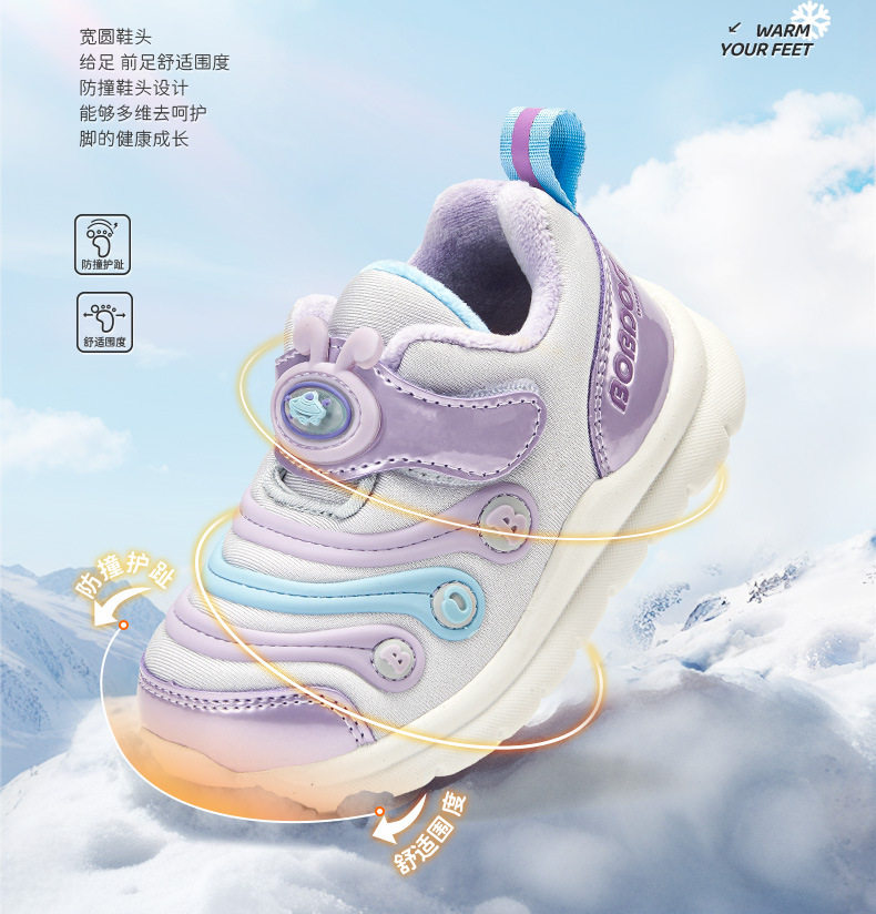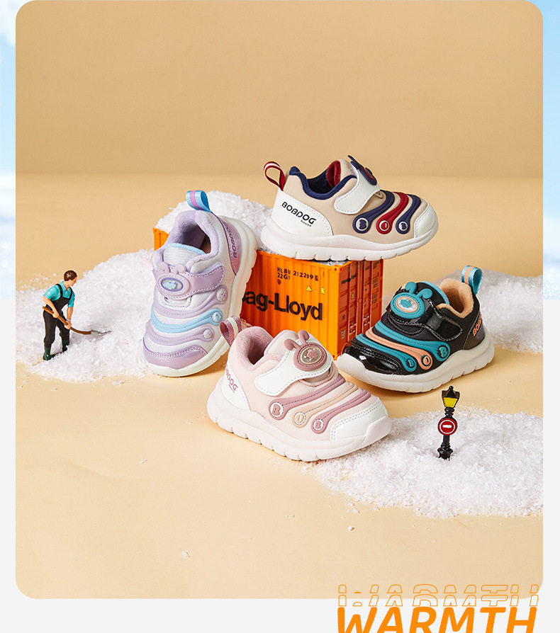 Babudou Toddler Shoes for Girls, 2025 Winter New Model, Boys' Caterpillar Shoes with Plush Lining, Infant and Baby Sneakers