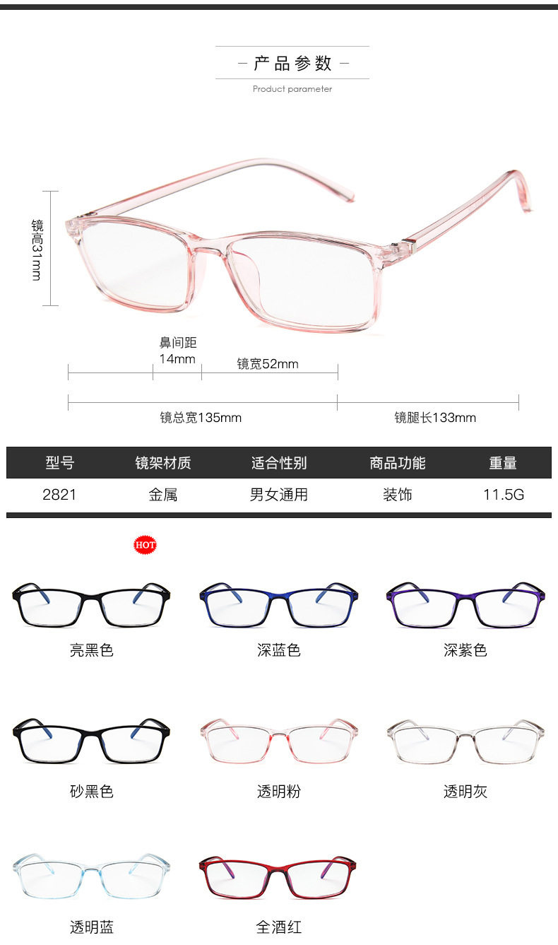 | Frame color | Glossy black,Dark blue,Deep purple,Transparent powder,Transparent gray,Wine red,Transparent blue,Sand black |
