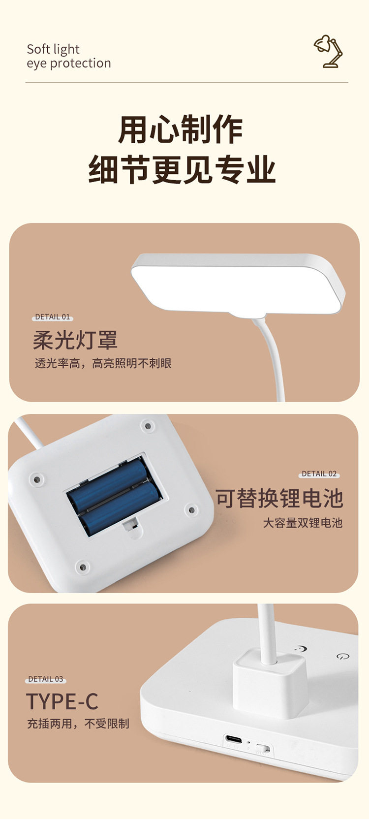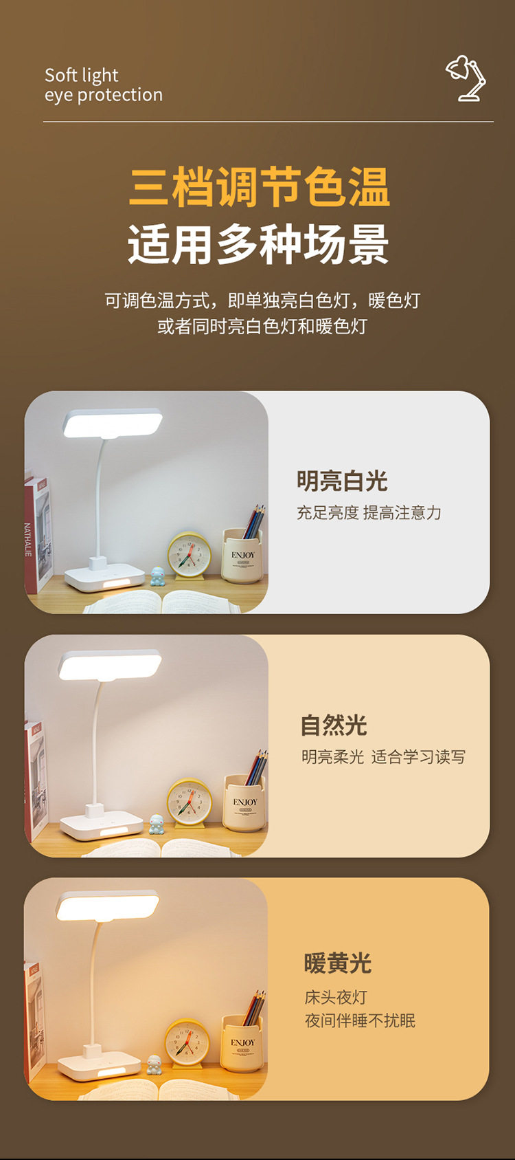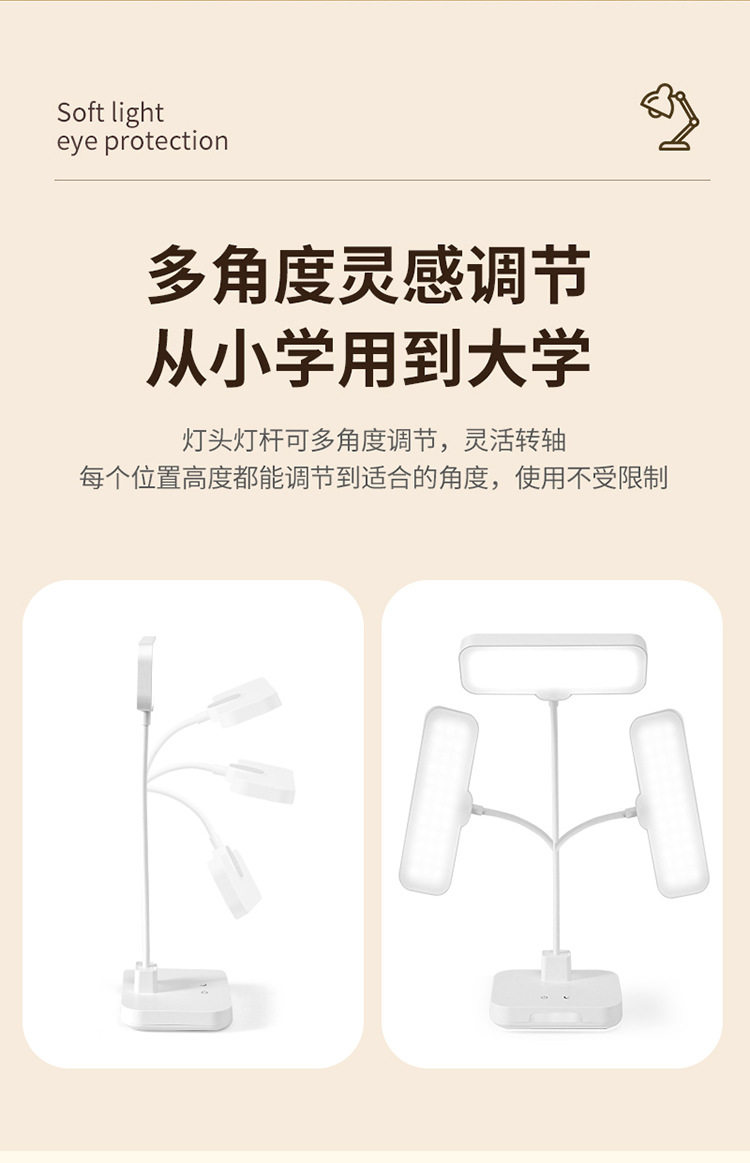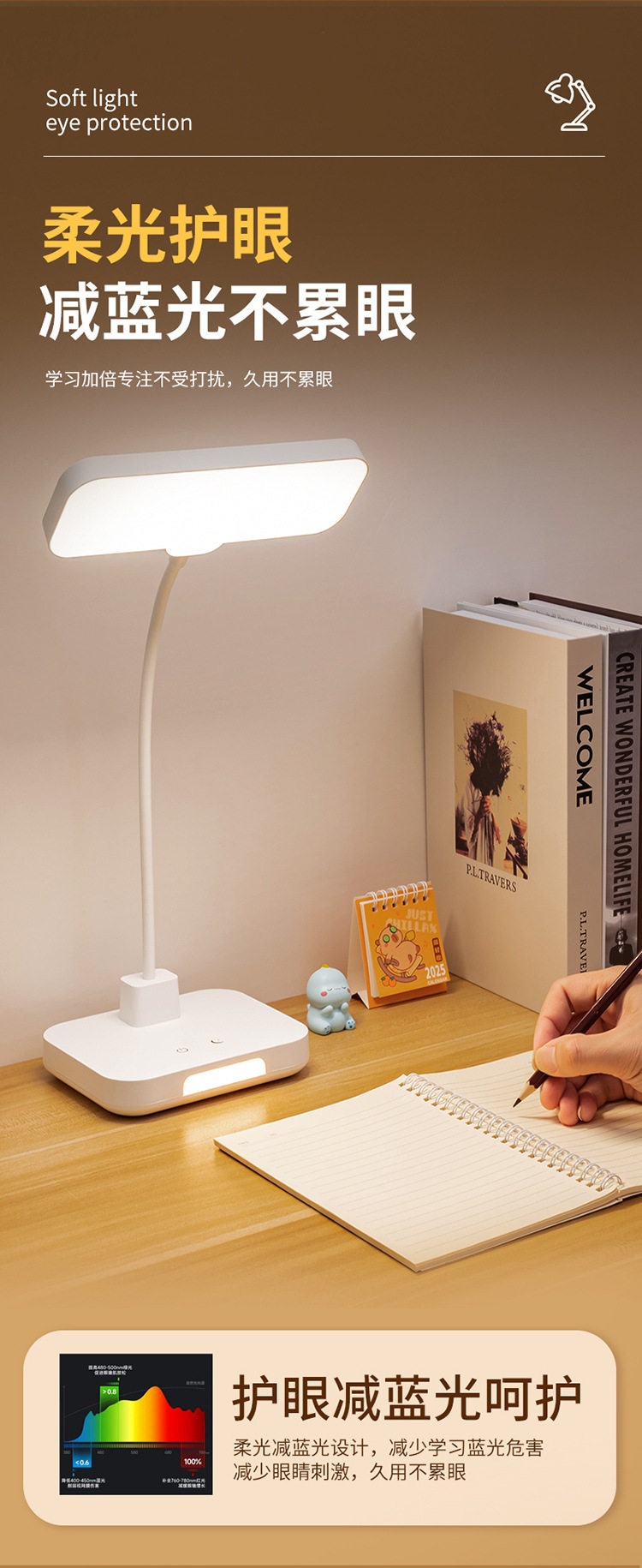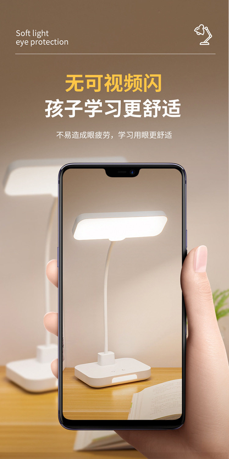 LED eye protection desk lamp USB rechargeable touch light three-speed adjustable desktop panel lamp desk study desk lamp batch