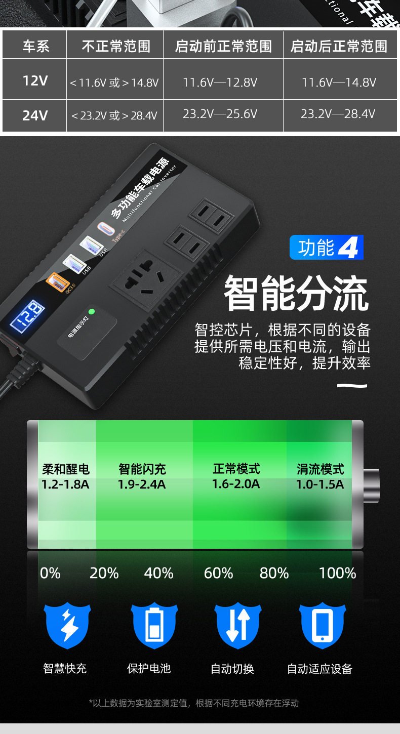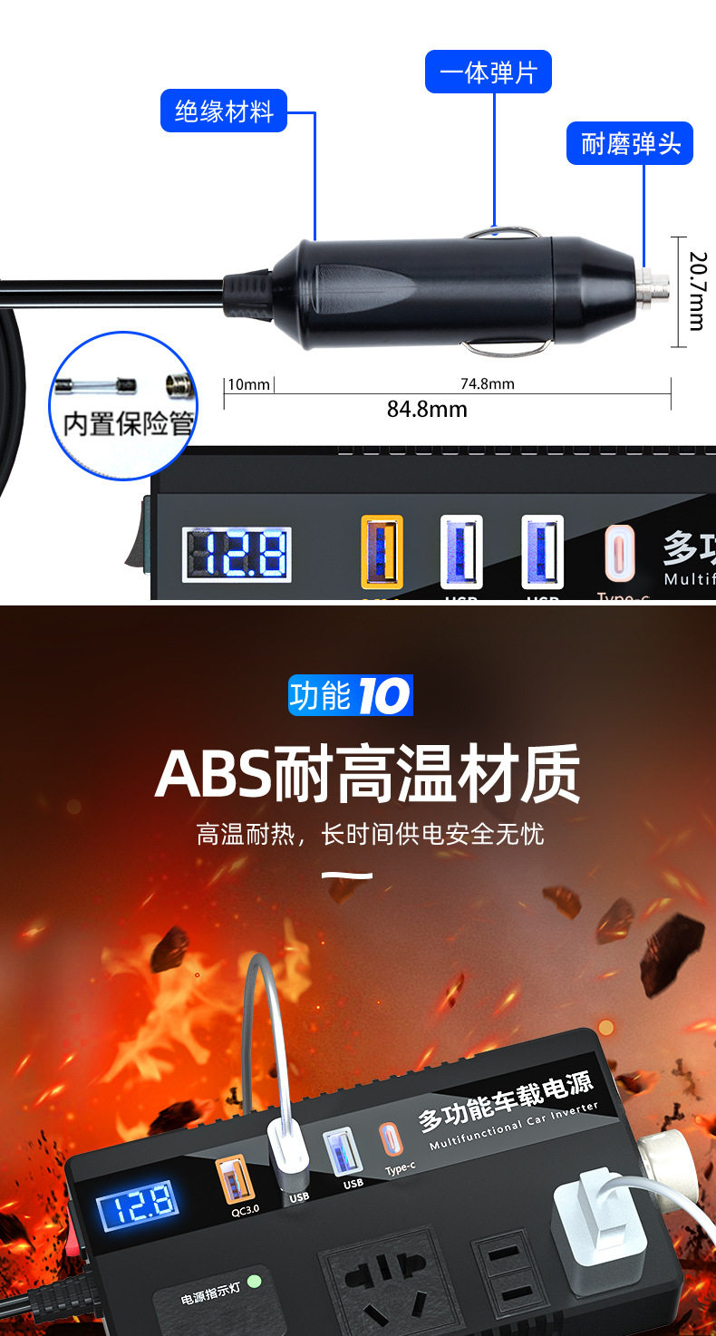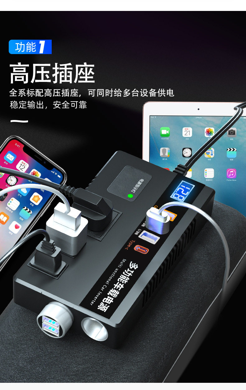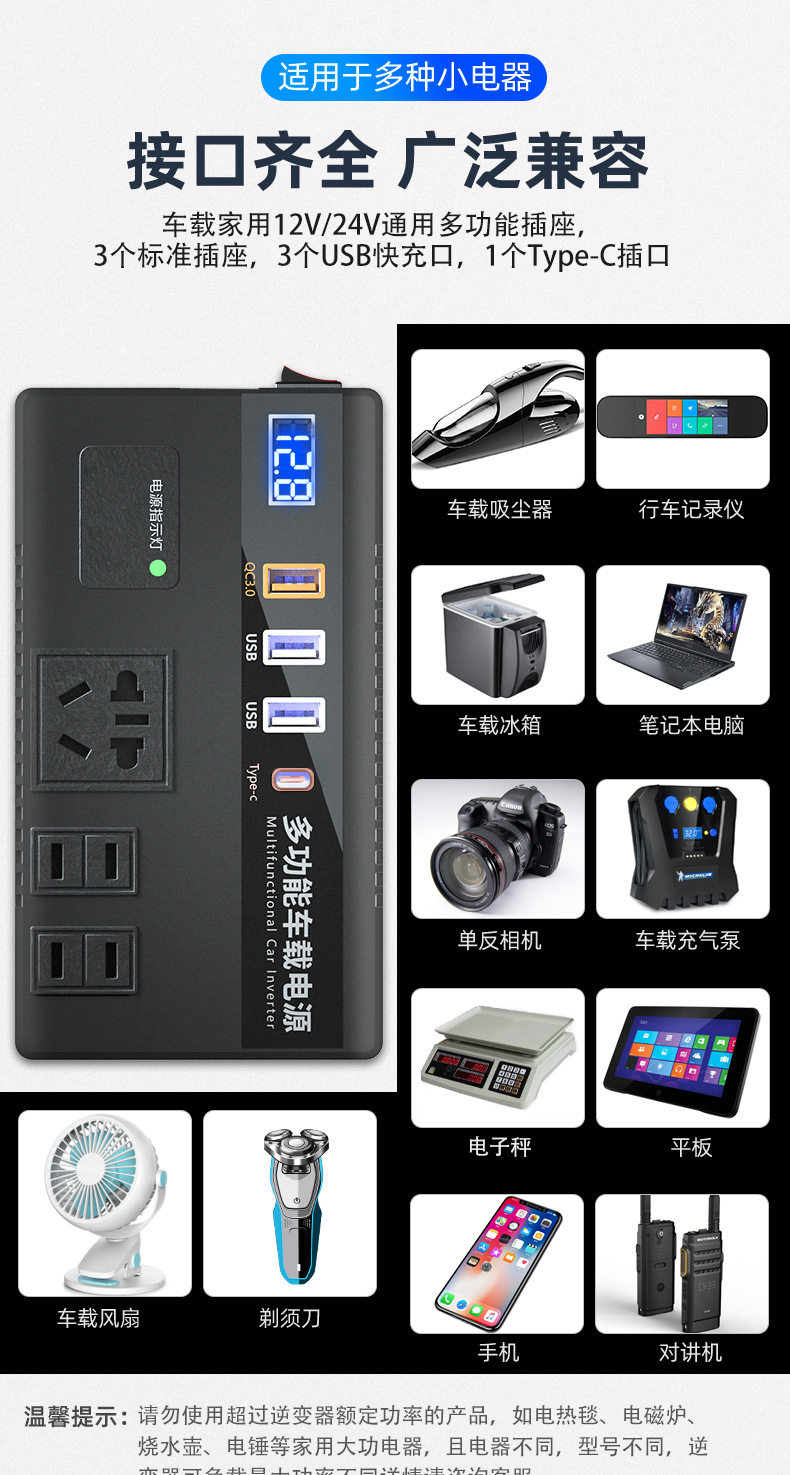 Car truck 12V/24V to 220V multifunctional car inverter converter mobile phone socket charger