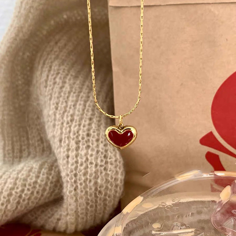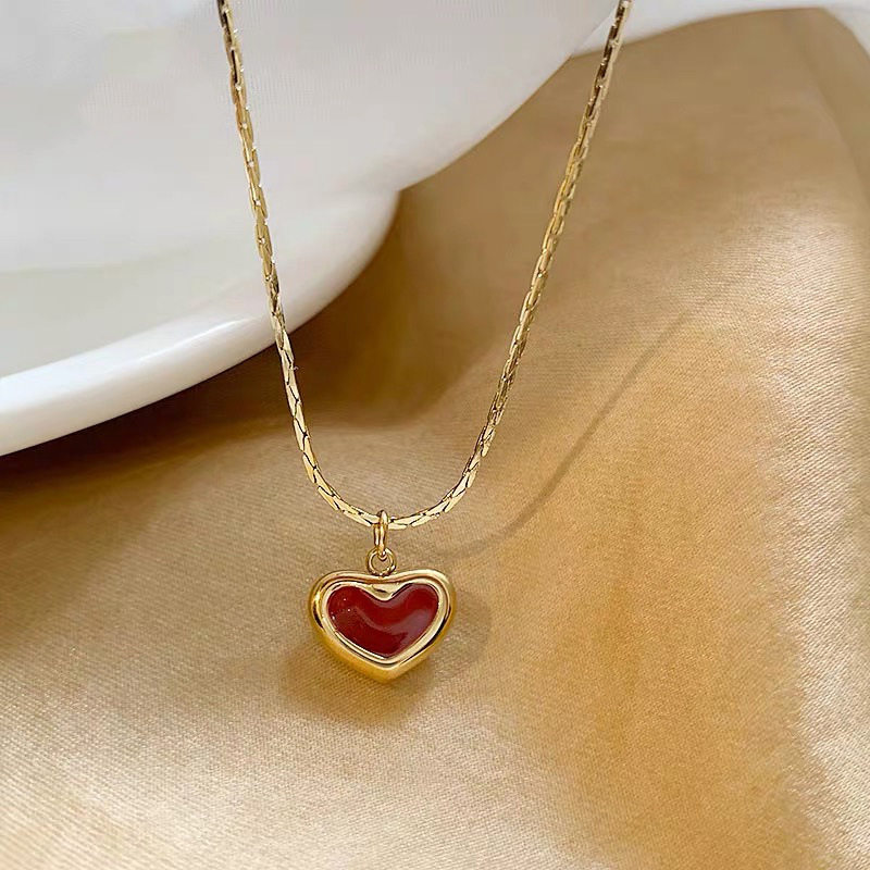 Niche high-end red love pendant necklace women's light luxury fashion unique all-match neck chain clavicle chain