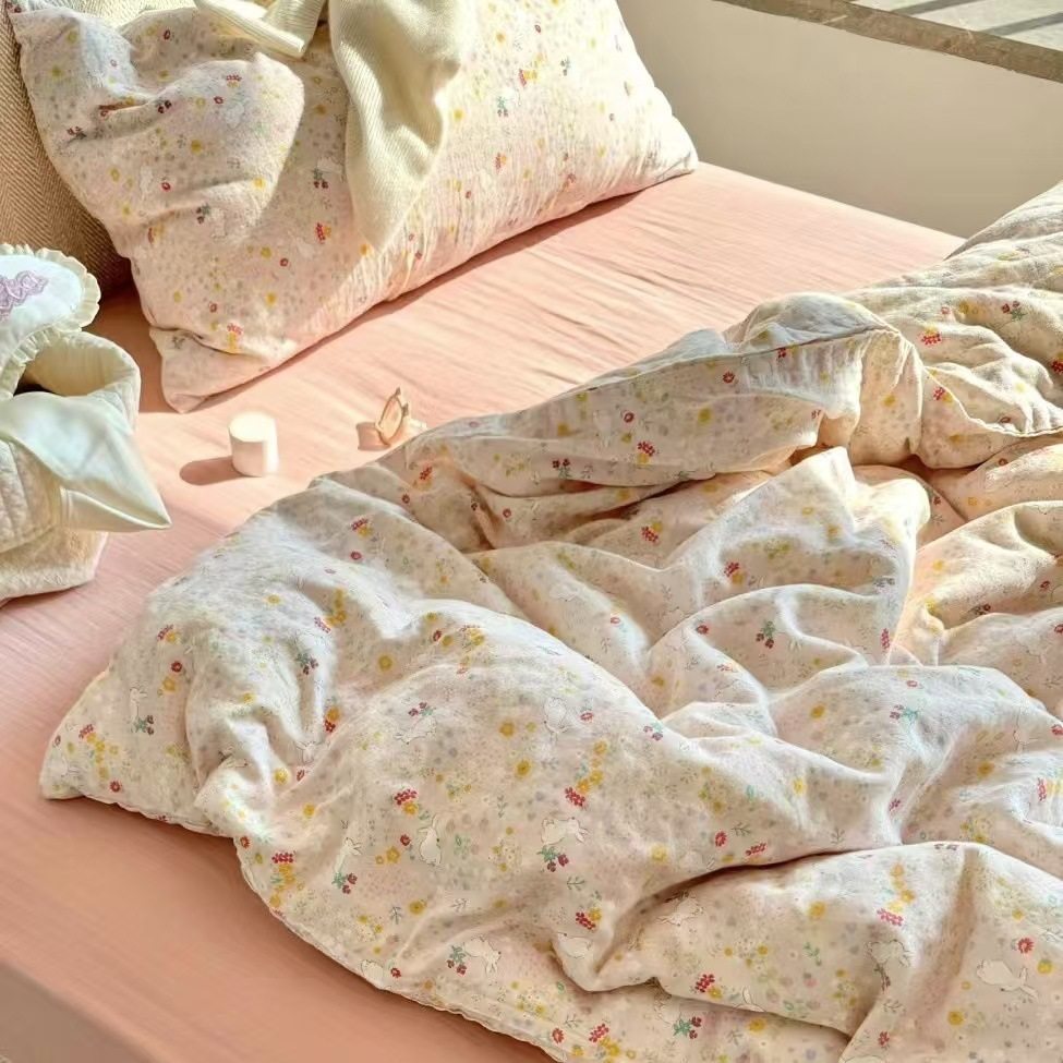 Korean Class A Cotton Aerobic Double-layer Yarn Student Dormitory Three-piece Set Maternal and Infant Class Baby Cotton Gauze Four-piece Set