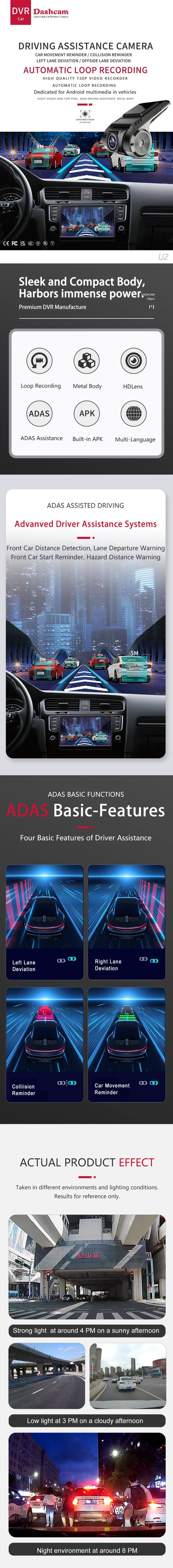 | Function | Loop recording,Night vision fill light,Lane change assist,Car ahead starting reminder,Orbital deviation warning,Pedestrian collision warning |