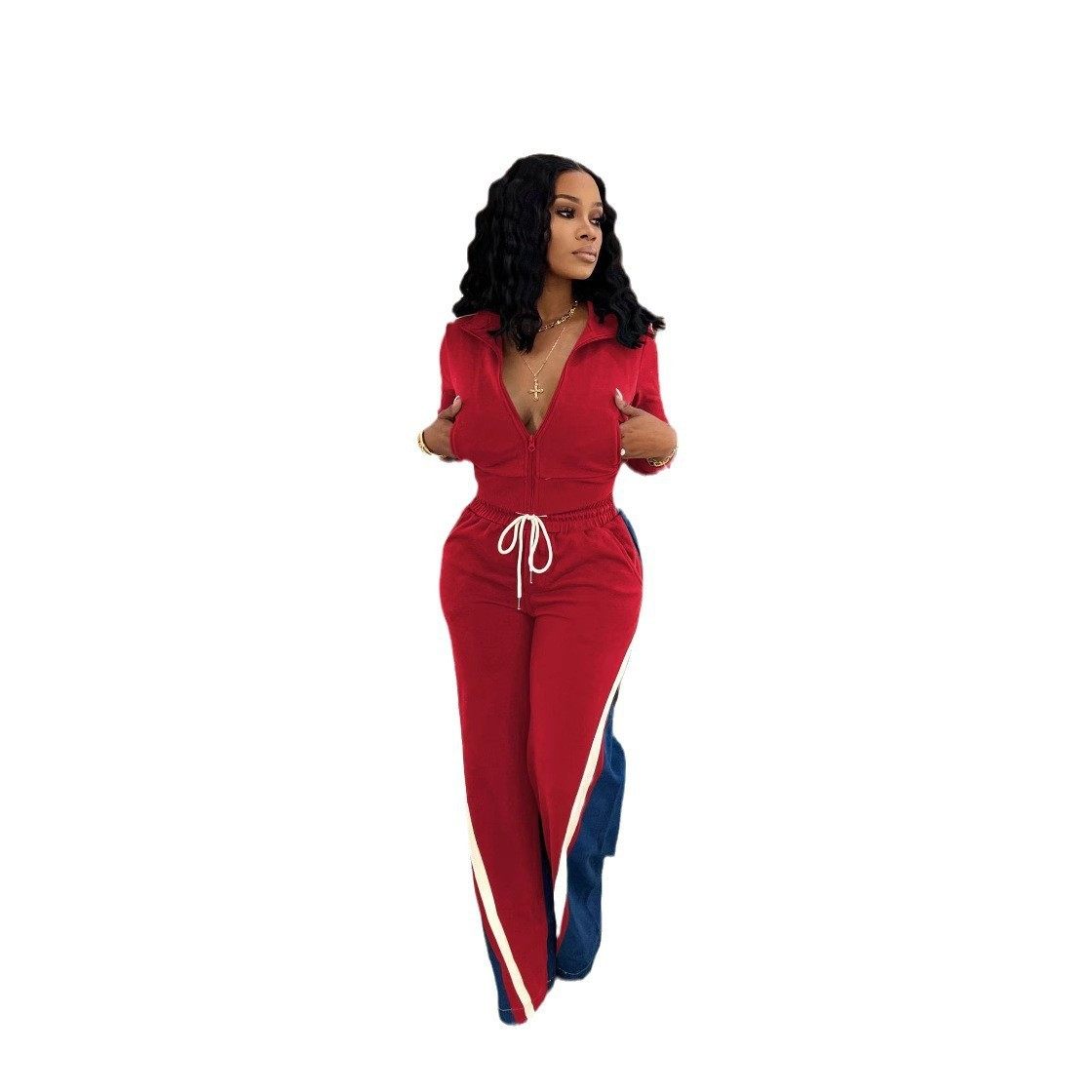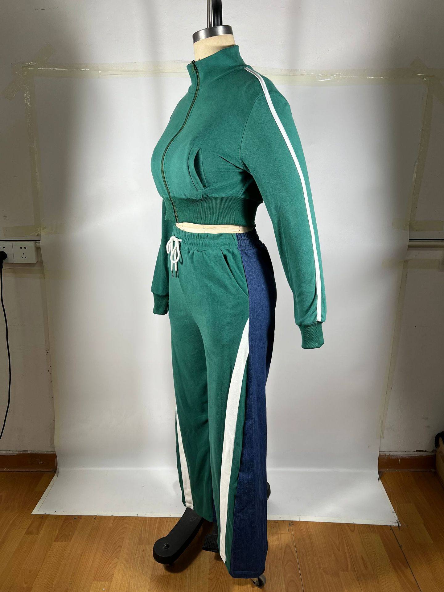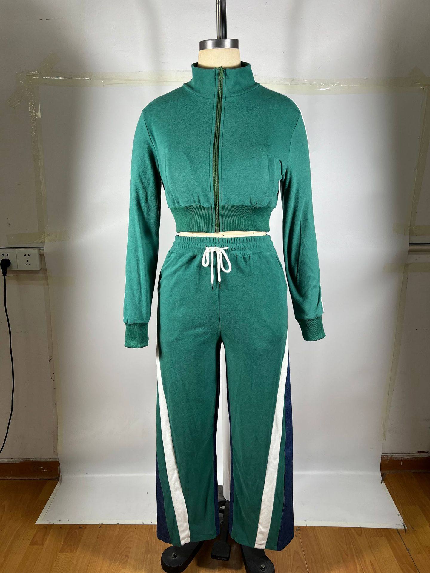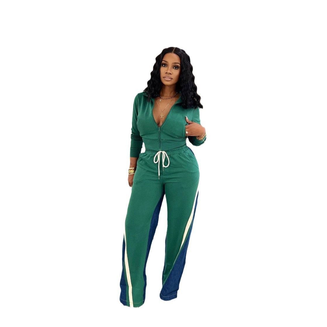 4725 cross-border European and American women's clothing German velvet Denim thread stitching sports pants suit two-piece set of 4 pockets
