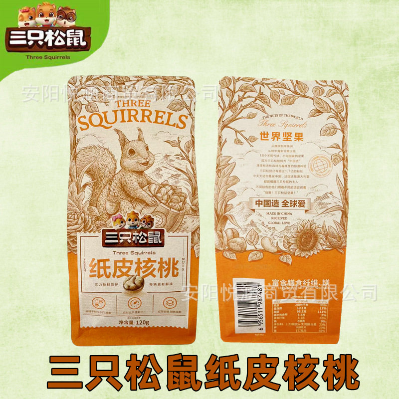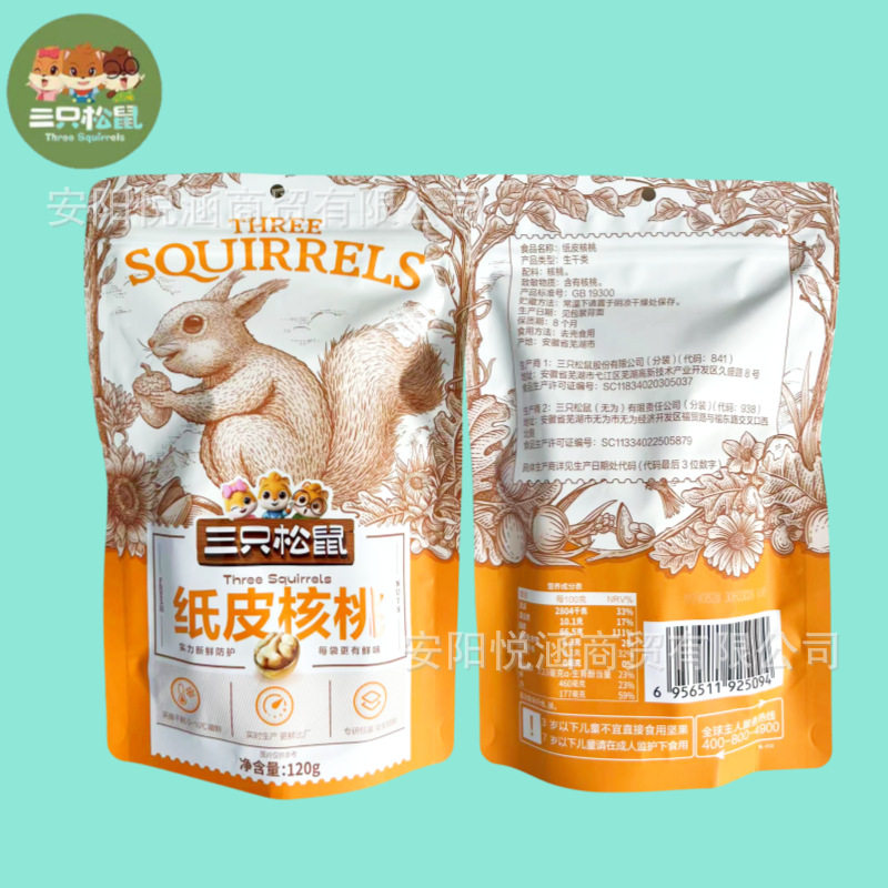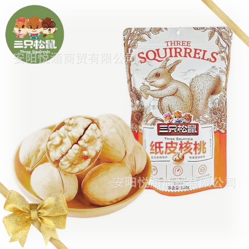 Three Squirrels Original Paper-Wrapped Walnuts 120G/Bag Thin-Skinned Nuts Snack Dried Fruit Snack