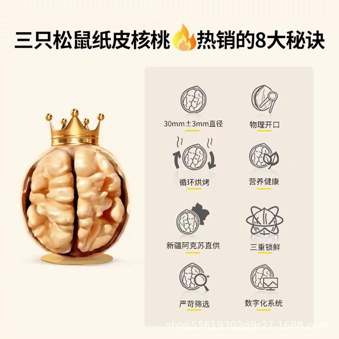 | Packaging specifications | Paper walnuts 120g x 1 bag,Paper walnuts 120g x 2 bags,Paper walnuts 120g x 3 bags,Paper walnuts 120g x 5 bags,Paper walnuts 120g x 10 bags |