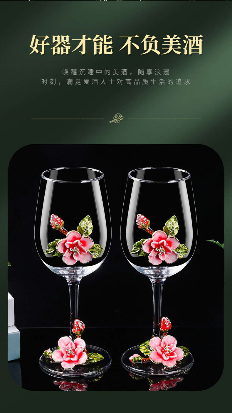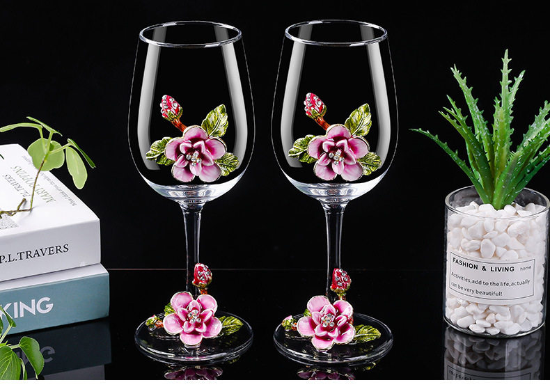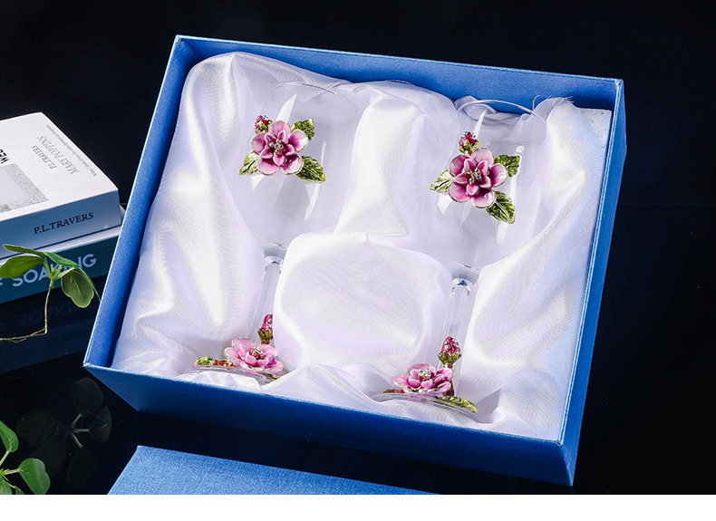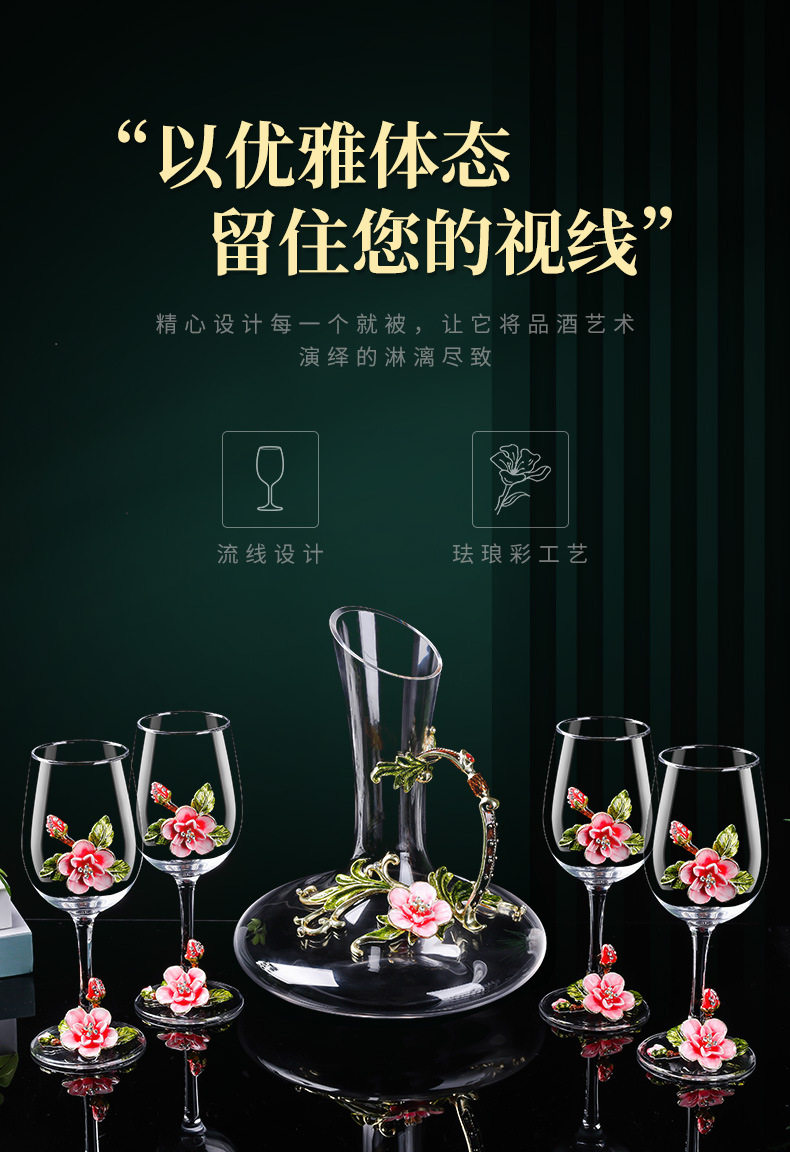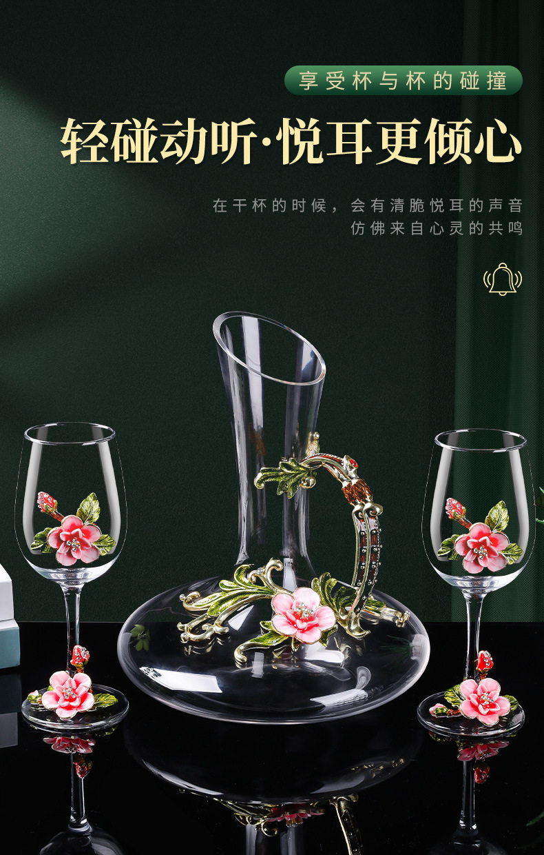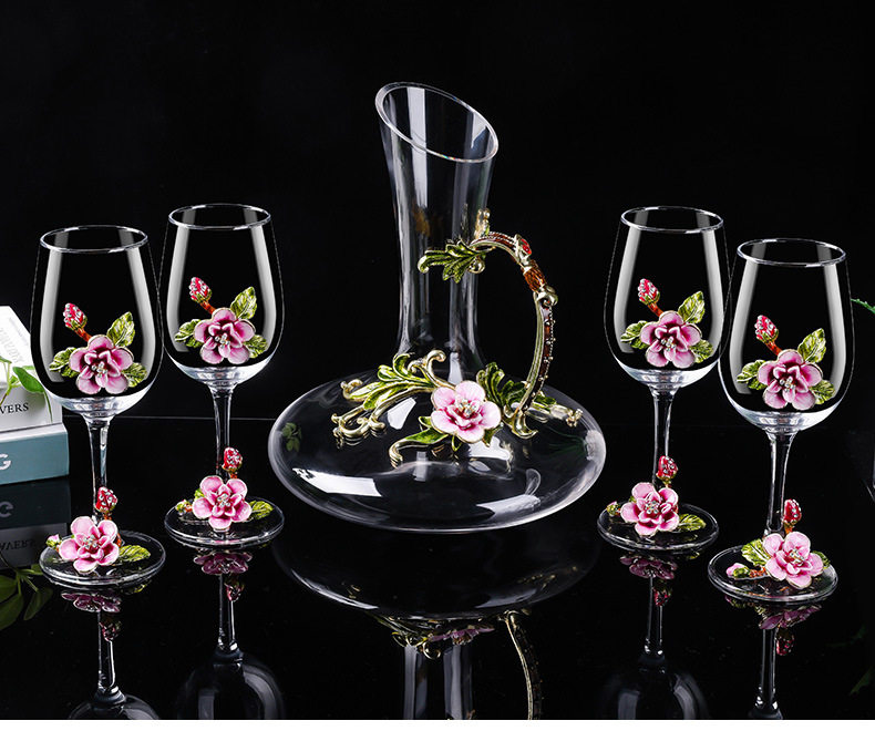 European Enamel Cherry Blossom High-End Red Wine Glass Set Tall Glass Red Wine Glass Wine Glass Decanter