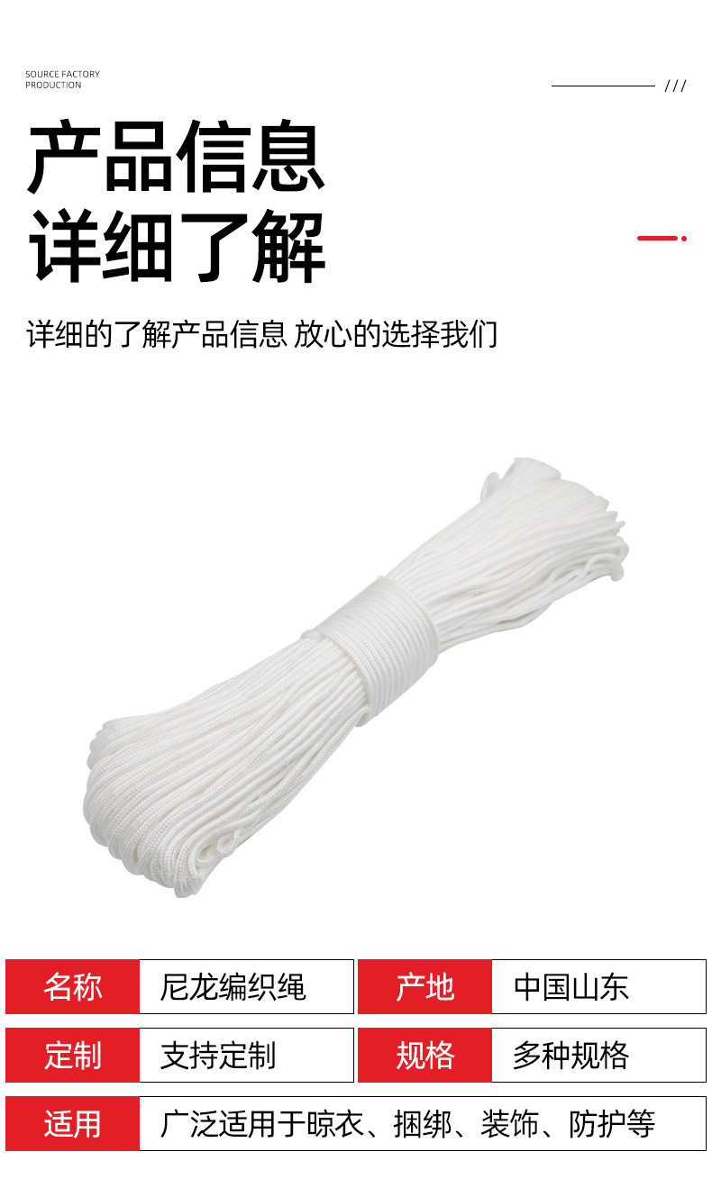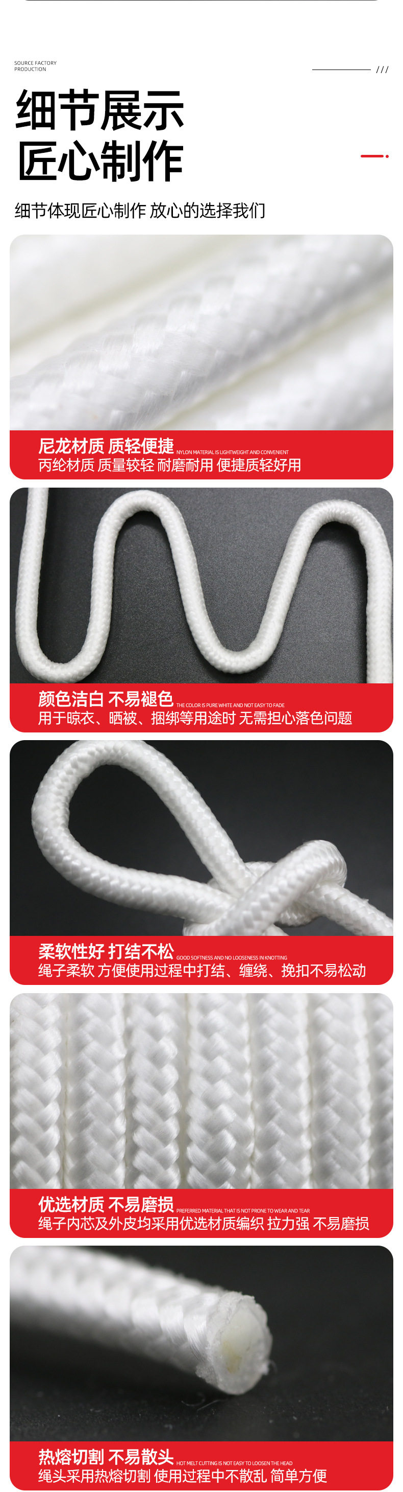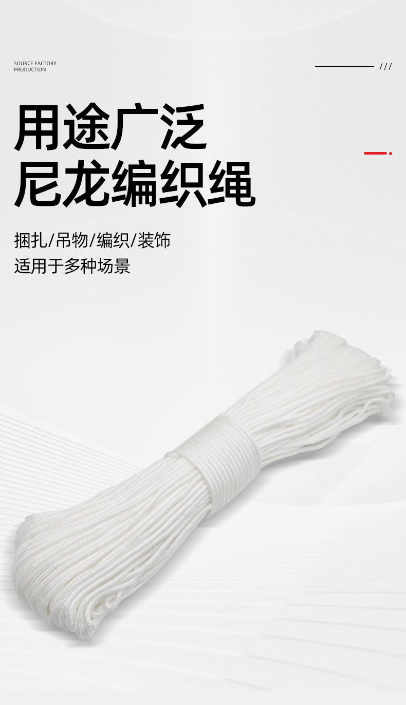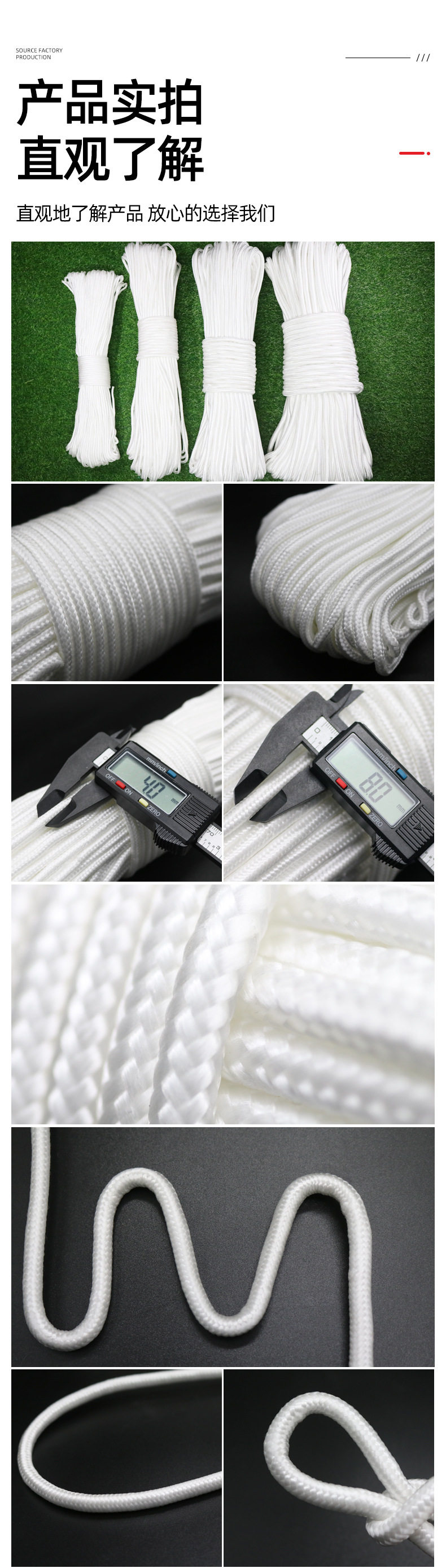 Wholesale white wear-resistant clothes drying quilting rope strong and durable truck binding protective decorative nylon woven rope