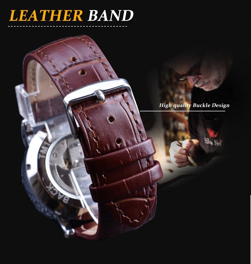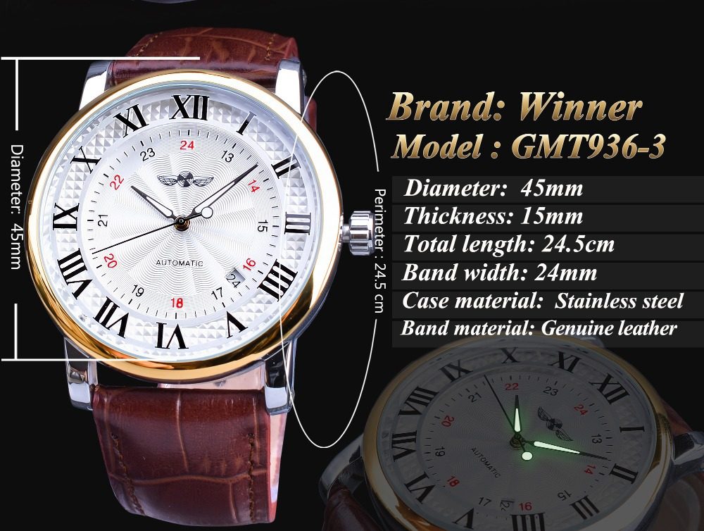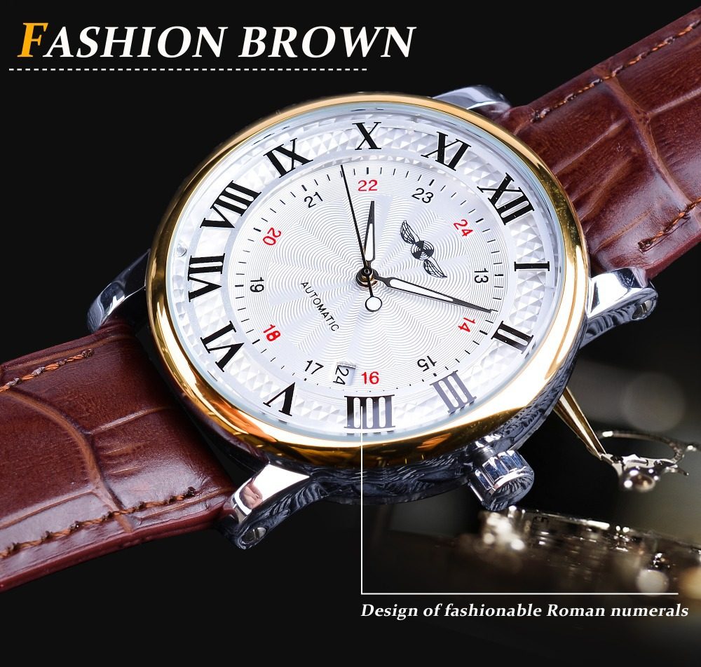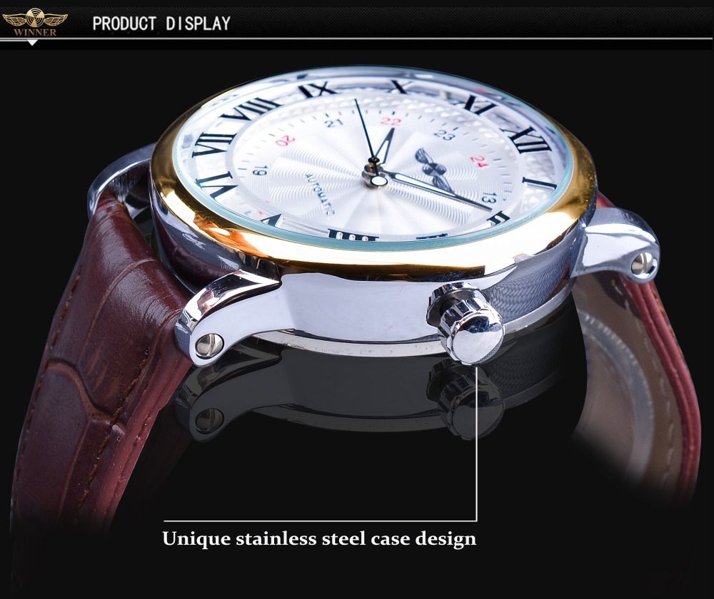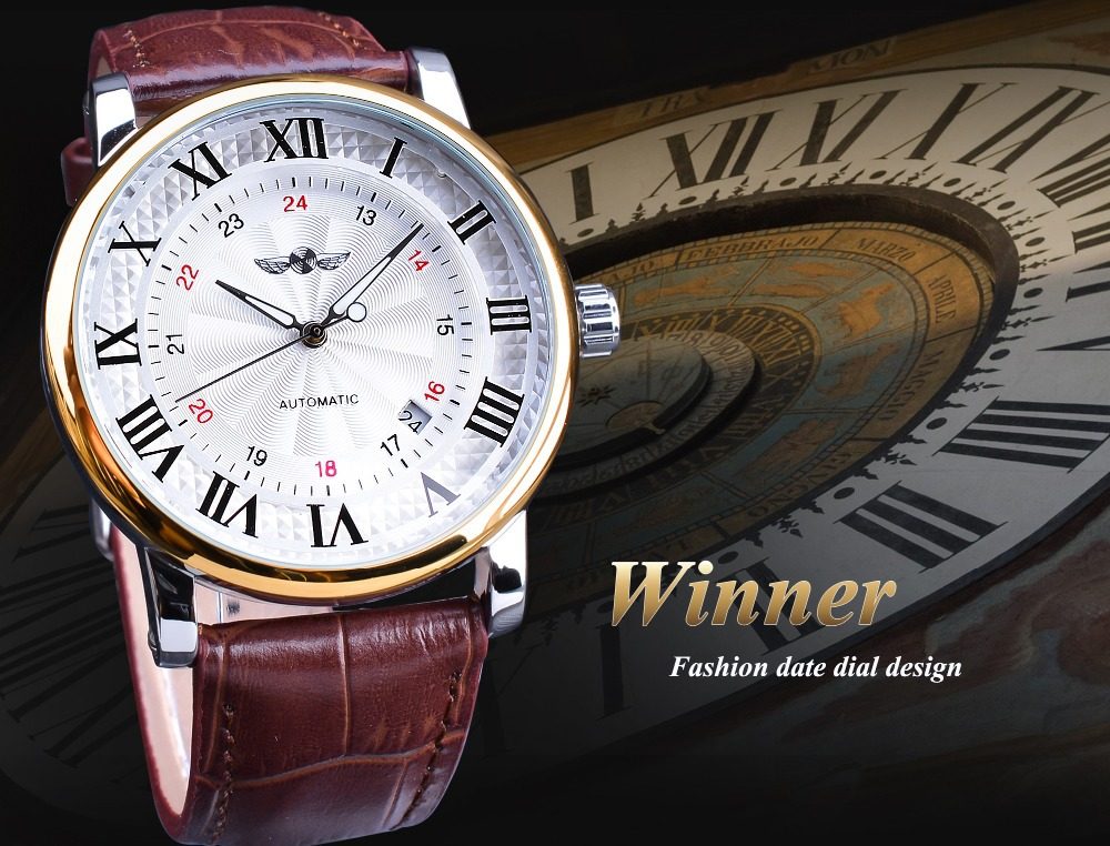 Winner Simple Fashion Men's Watch Automatic Mechanical Watch Roman Numerals Dial Business Belt Watch