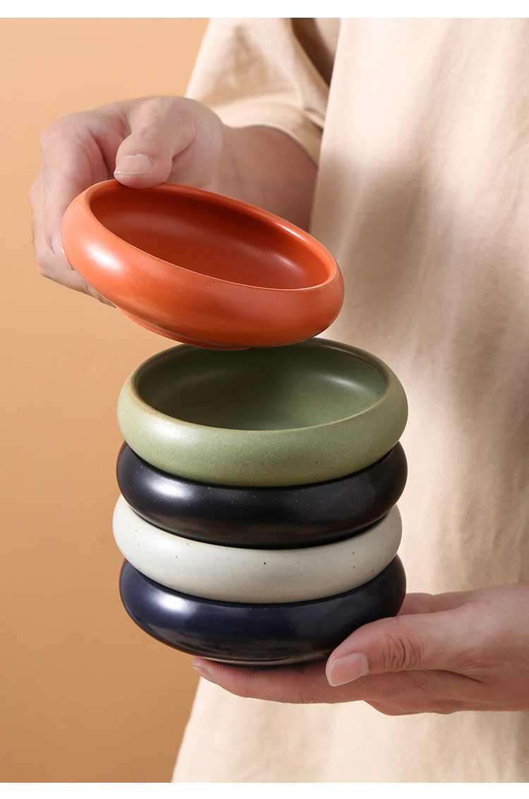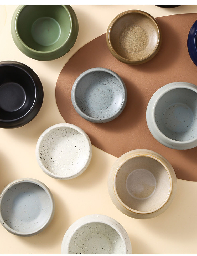 Vintage Japanese Style Dishes Household Rice Bowl Sauce Dish Restaurant Salad Dessert Bowl Small Dishes Flavor Dish Solid Color Crude Ceramic