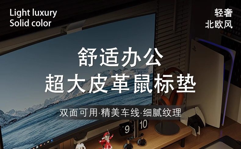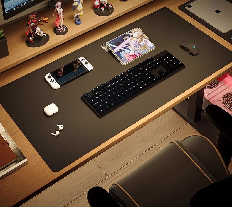 Mouse Pad Oversized Dirty-Resistant Office Waterproof Eye Protection Advanced Computer Pad Desk Pad PU Leather Solid Color Pattern Logo