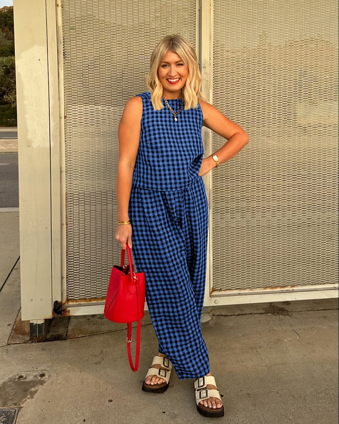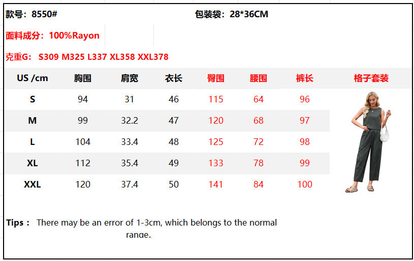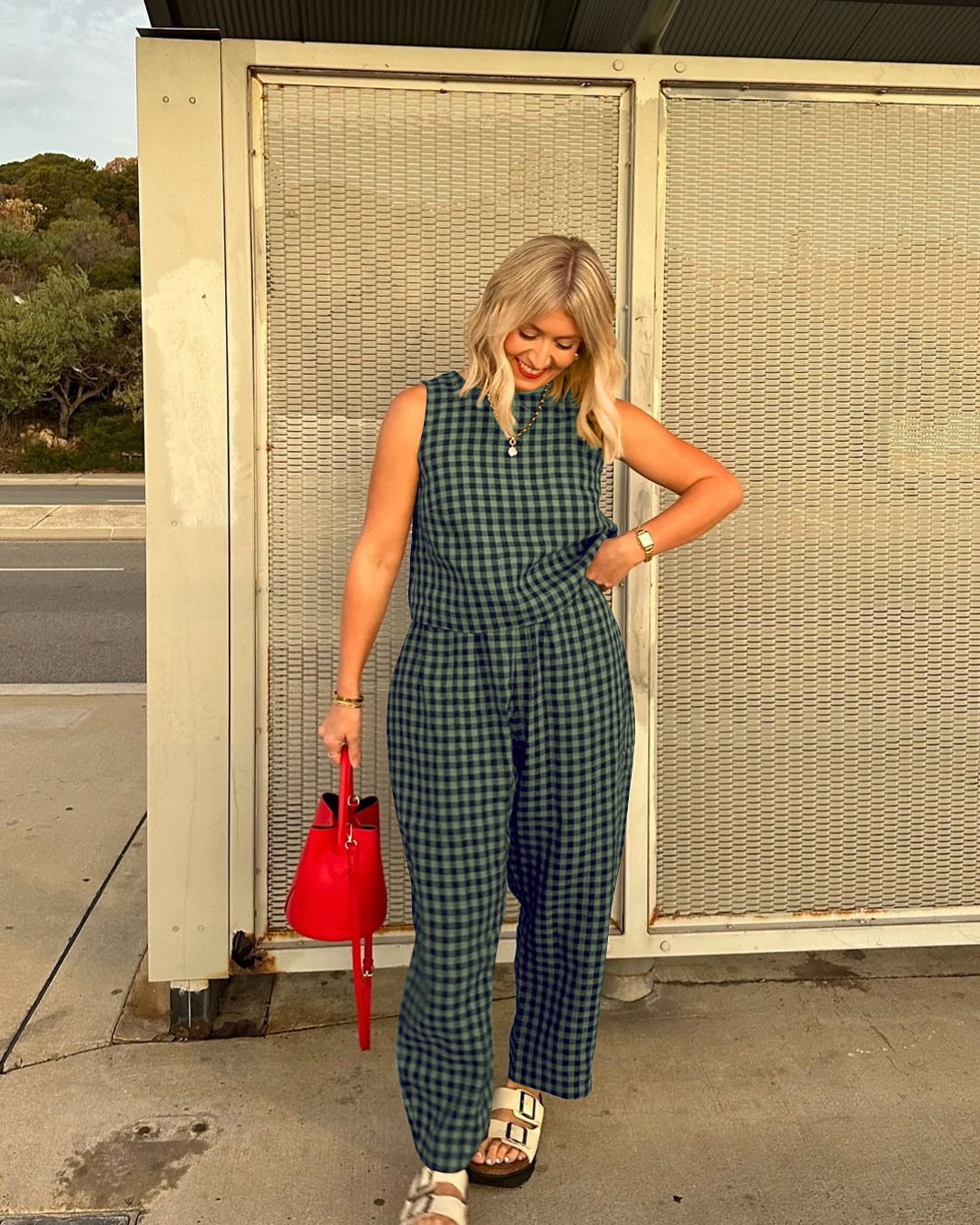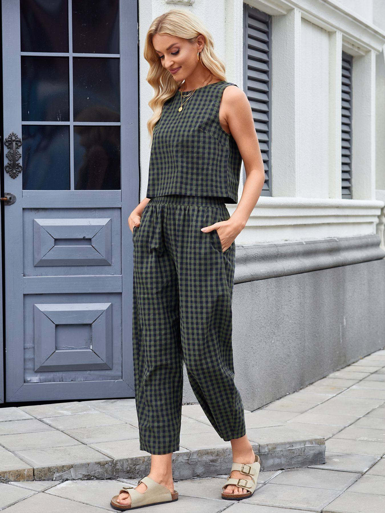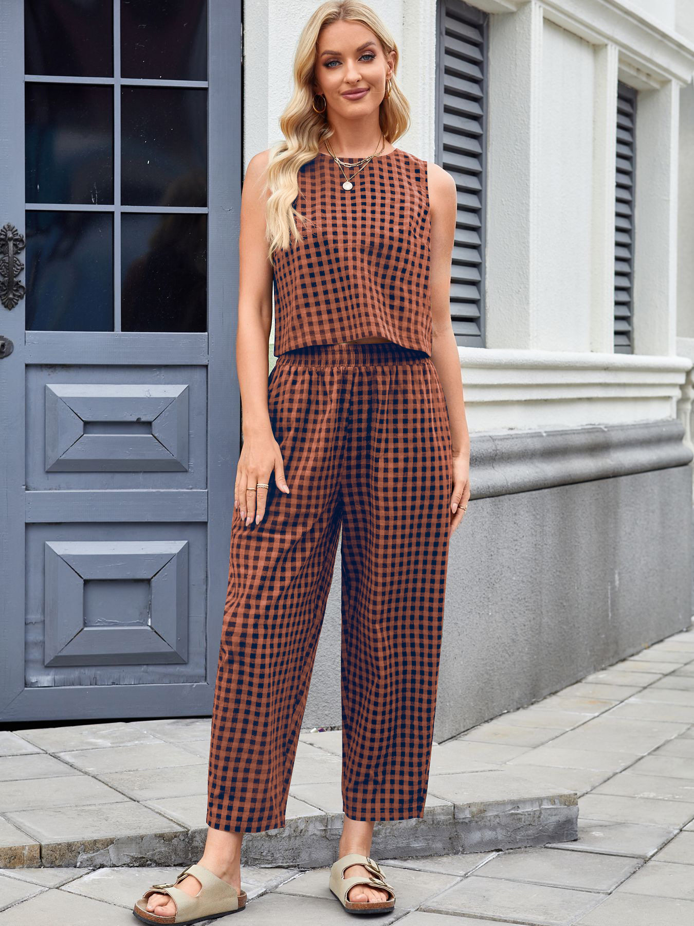 Cross-border European and American Women's 2025 Amazon TK New Printed Plaid Loose Casual Sleeveless Vest Pants suit