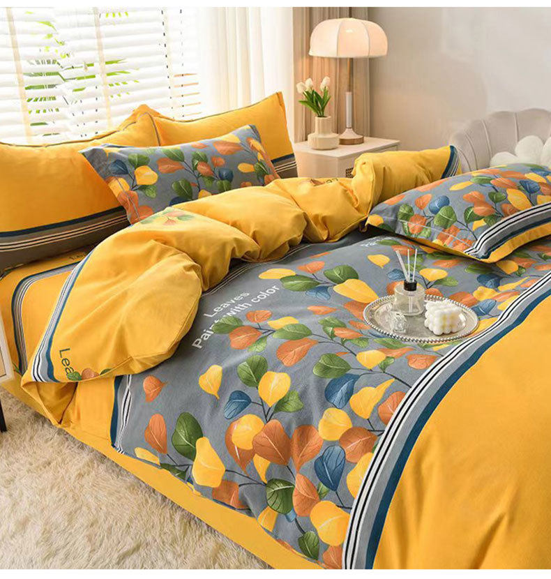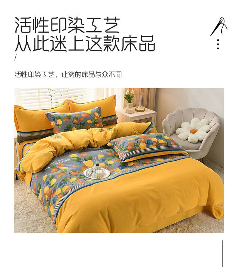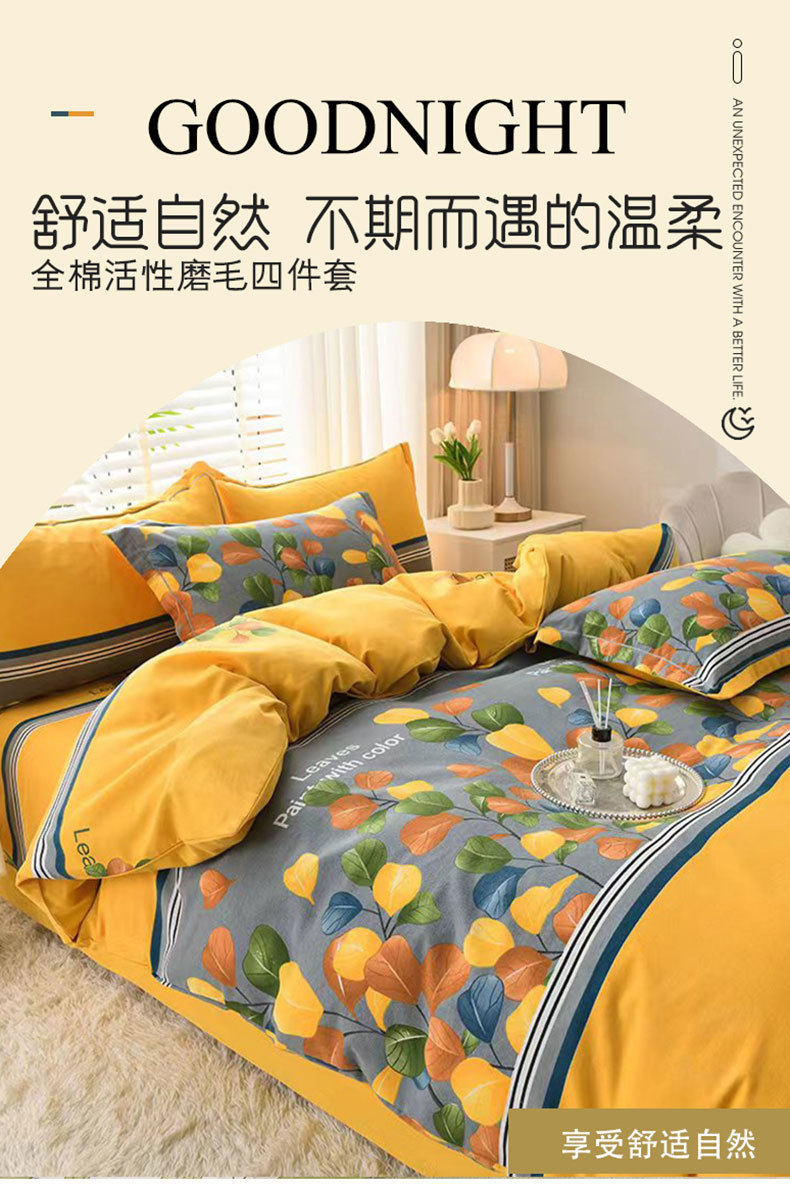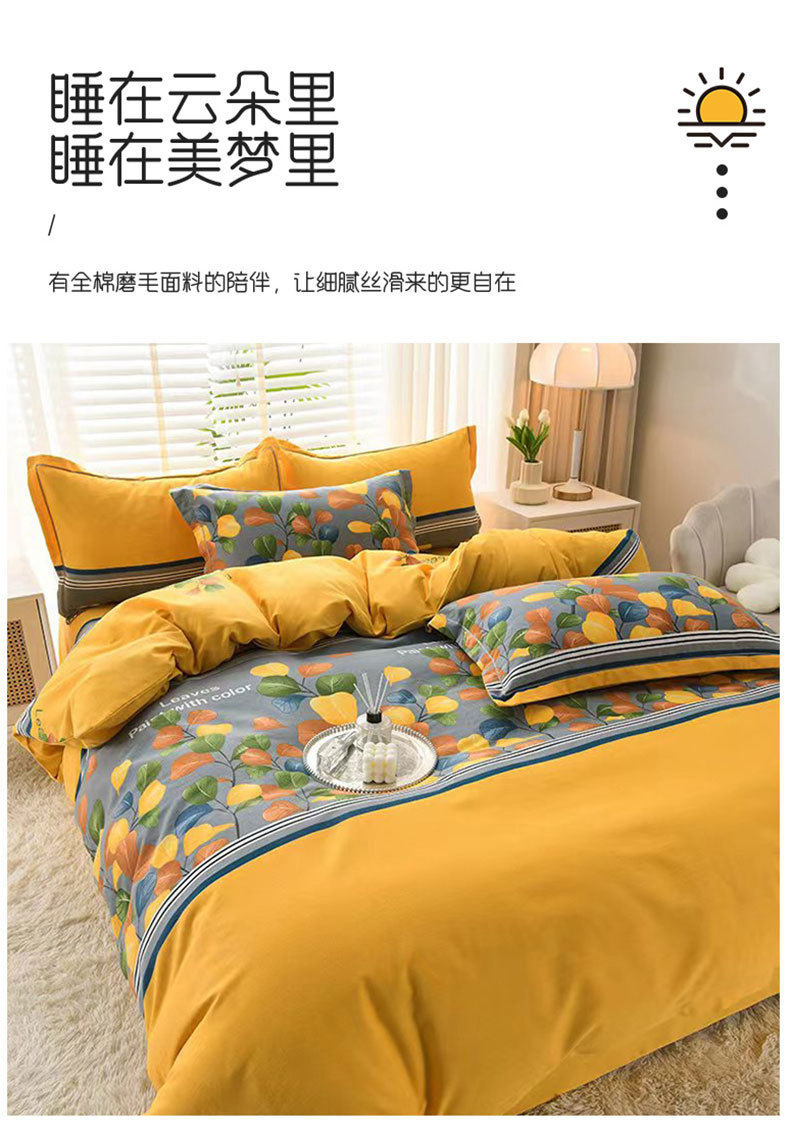 High-grade thickened 100 cotton four-piece set cotton class a sanding quilt cover bed sheet bedding four seasons general class a